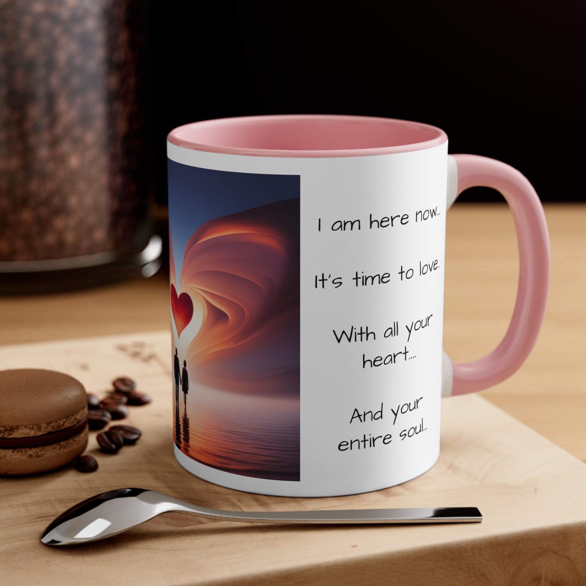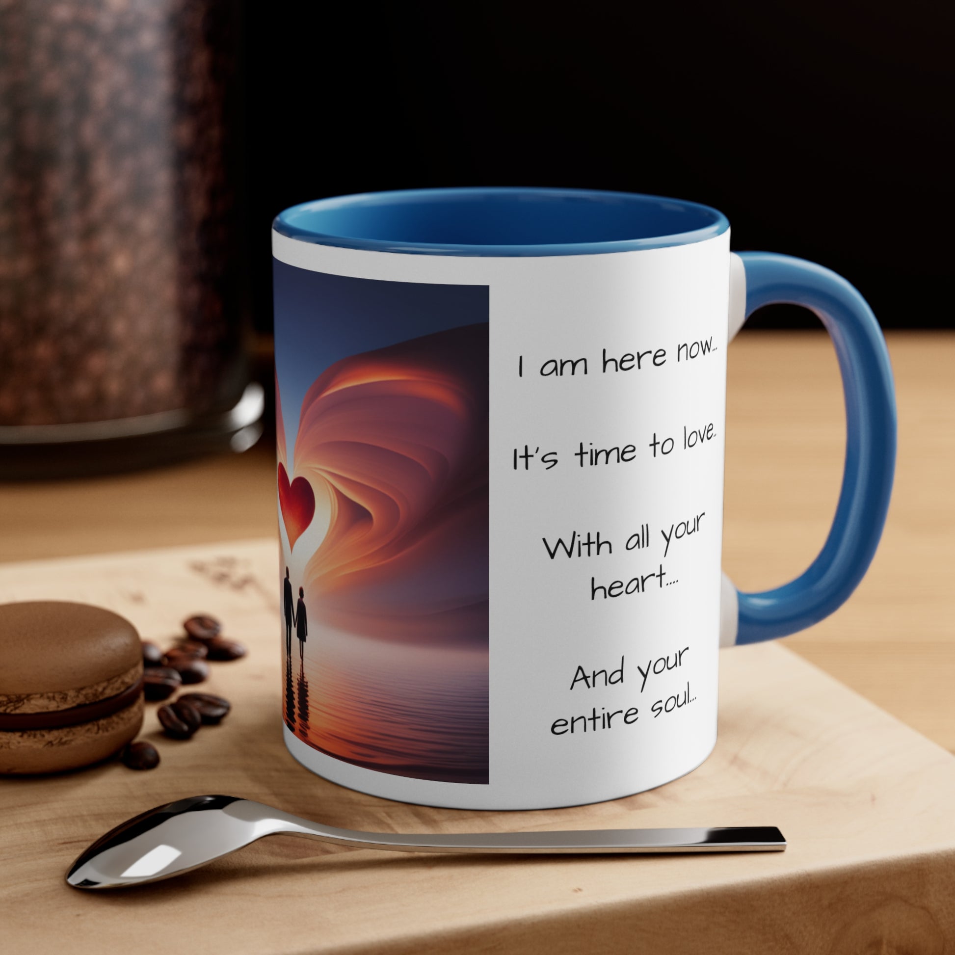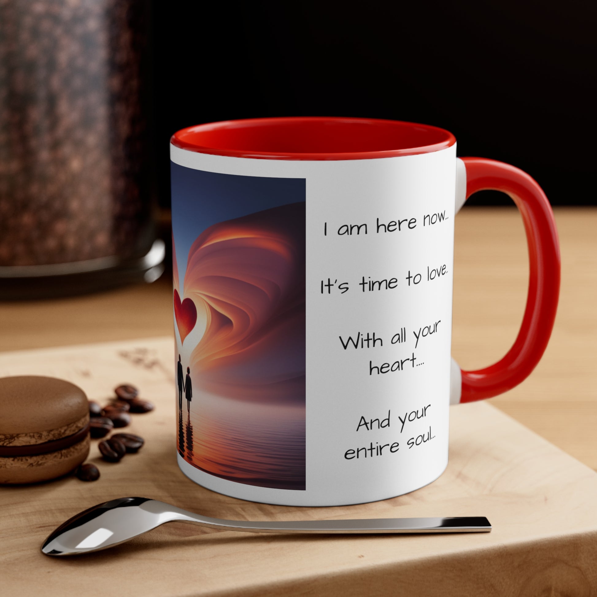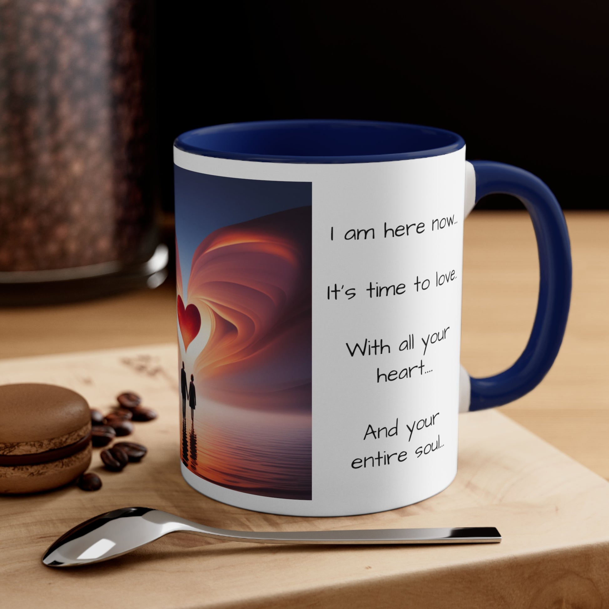 Accent Coffee Mug, 11oz, message to lover, gift for him, gift for her, my love, my muse, my inspiration, I'm here now, its time to love with all your heart and your entire soul