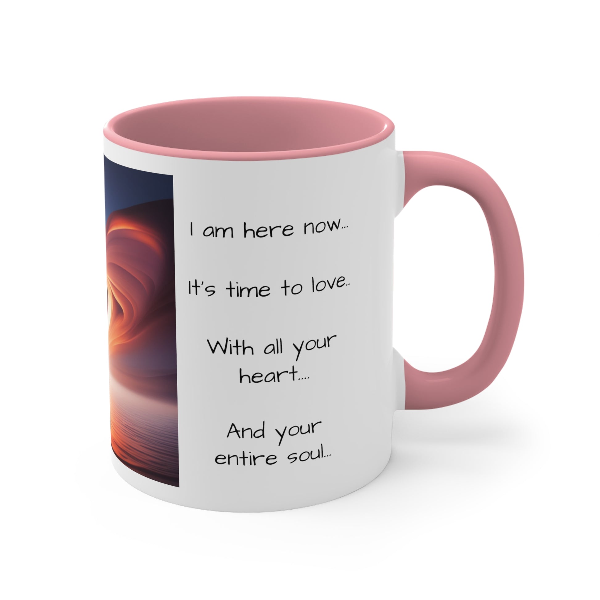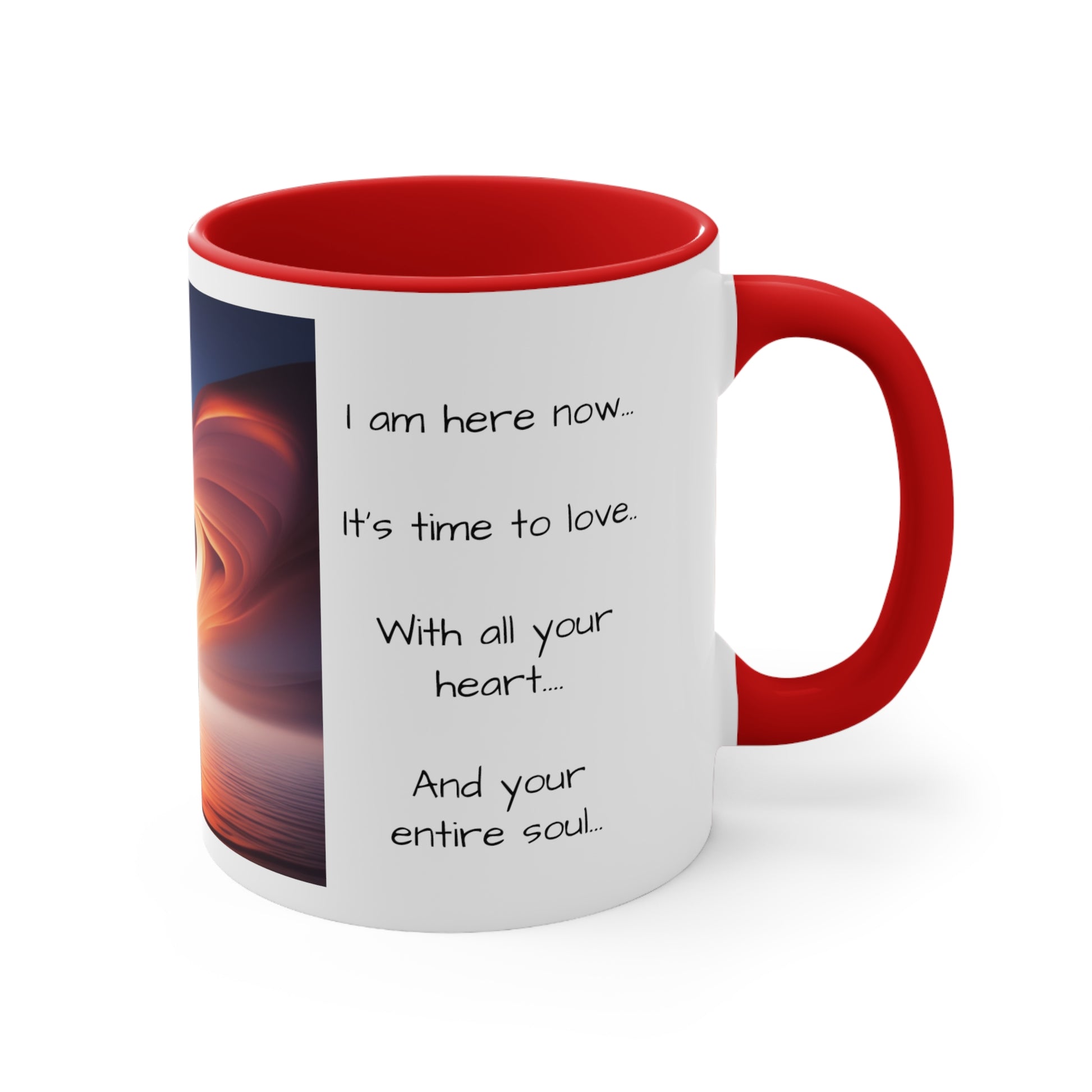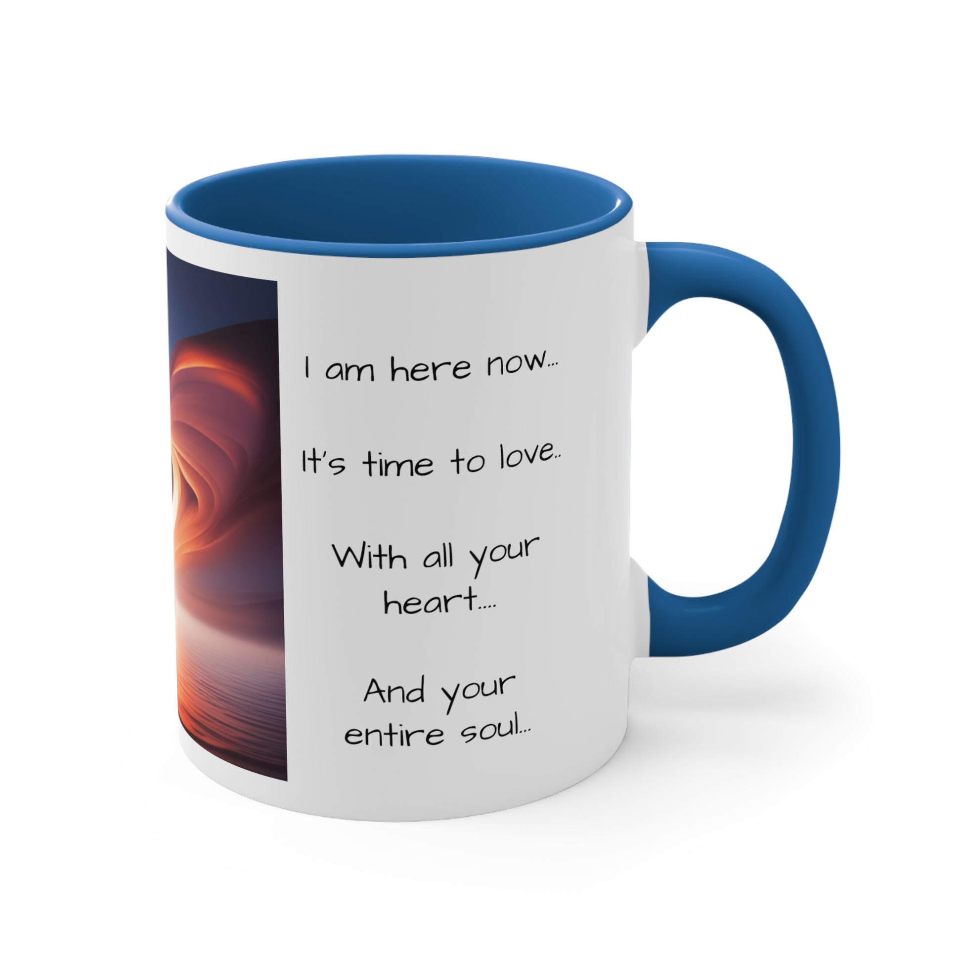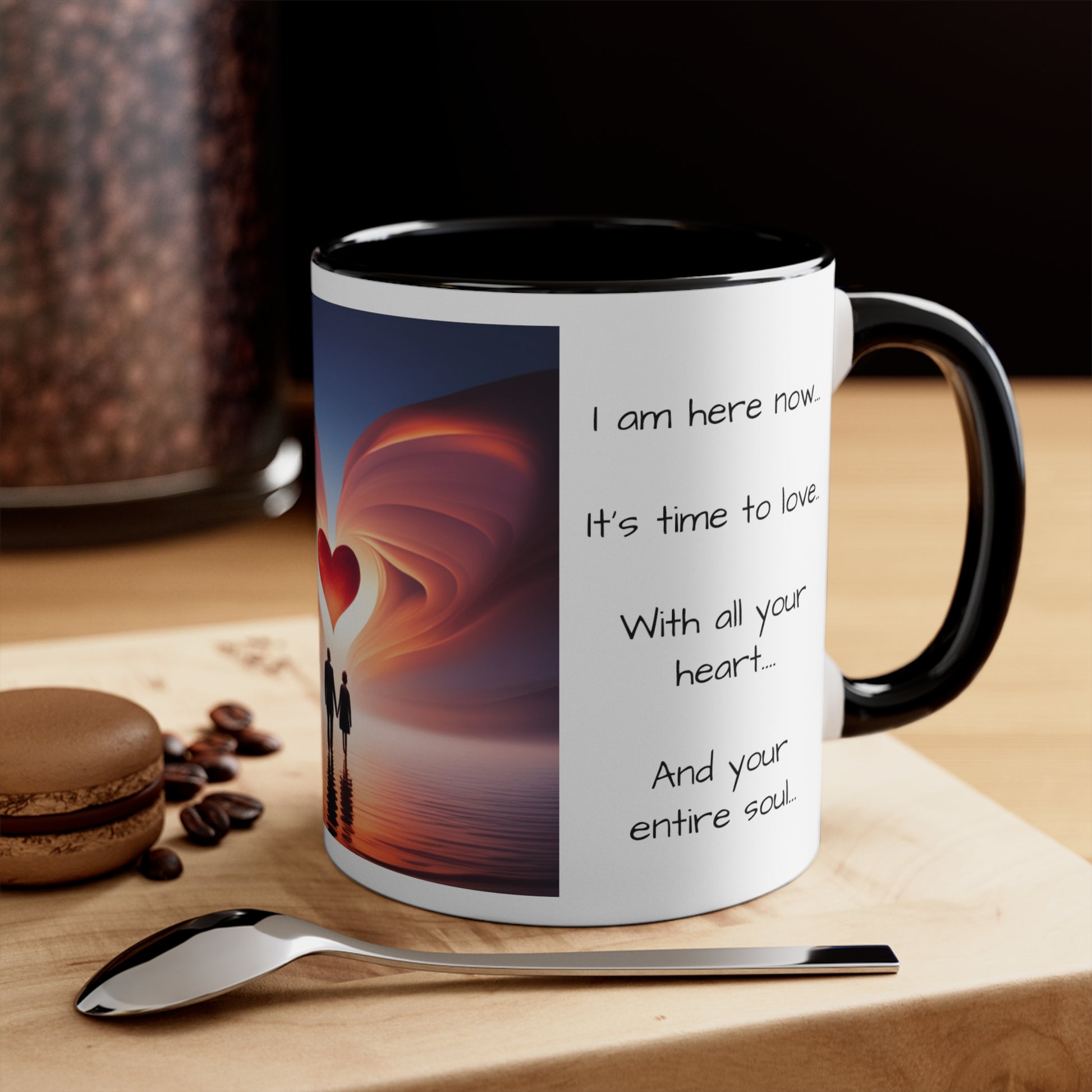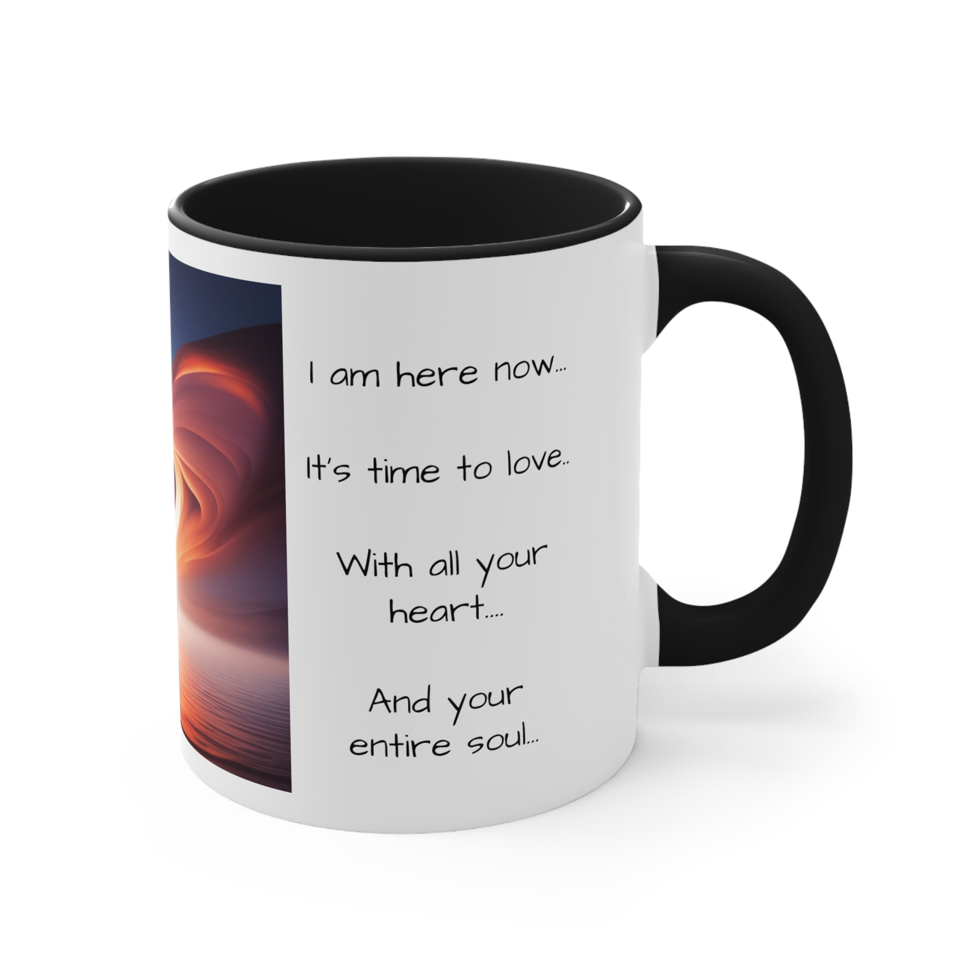 Accent Coffee Mug, 11oz, message to lover, gift for him, gift for her, my love, my muse, my inspiration, I'm here now, its time to love with all your heart and your entire soul