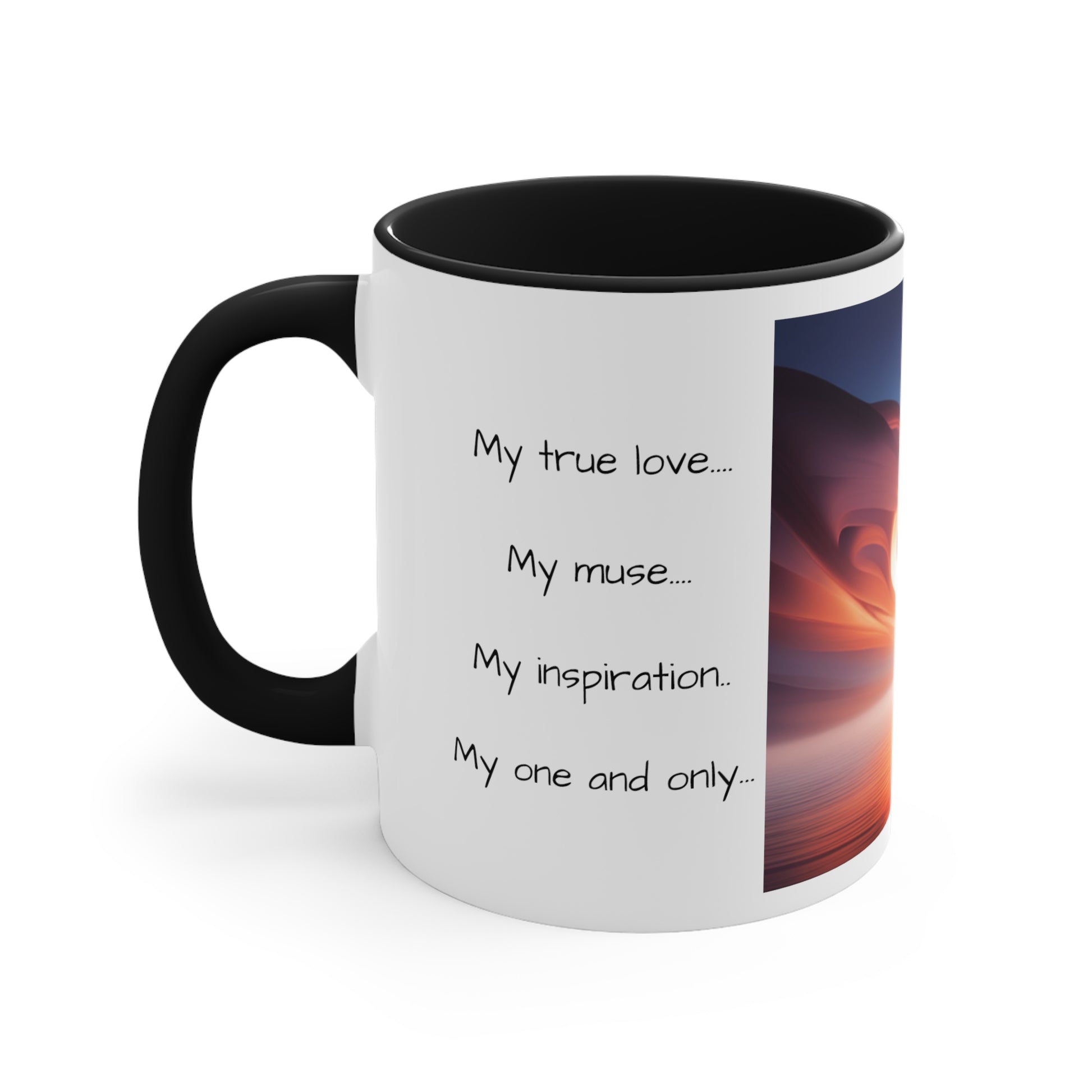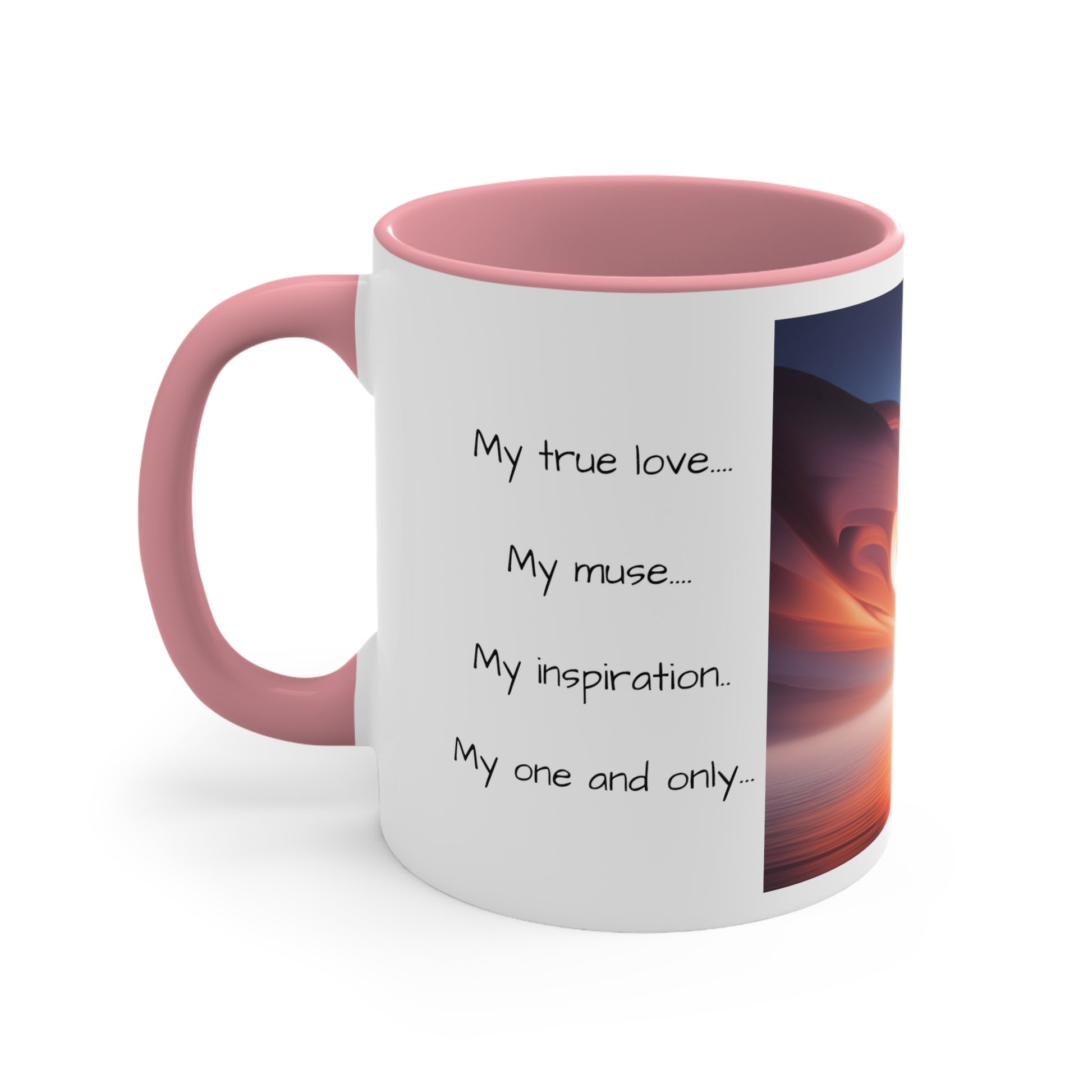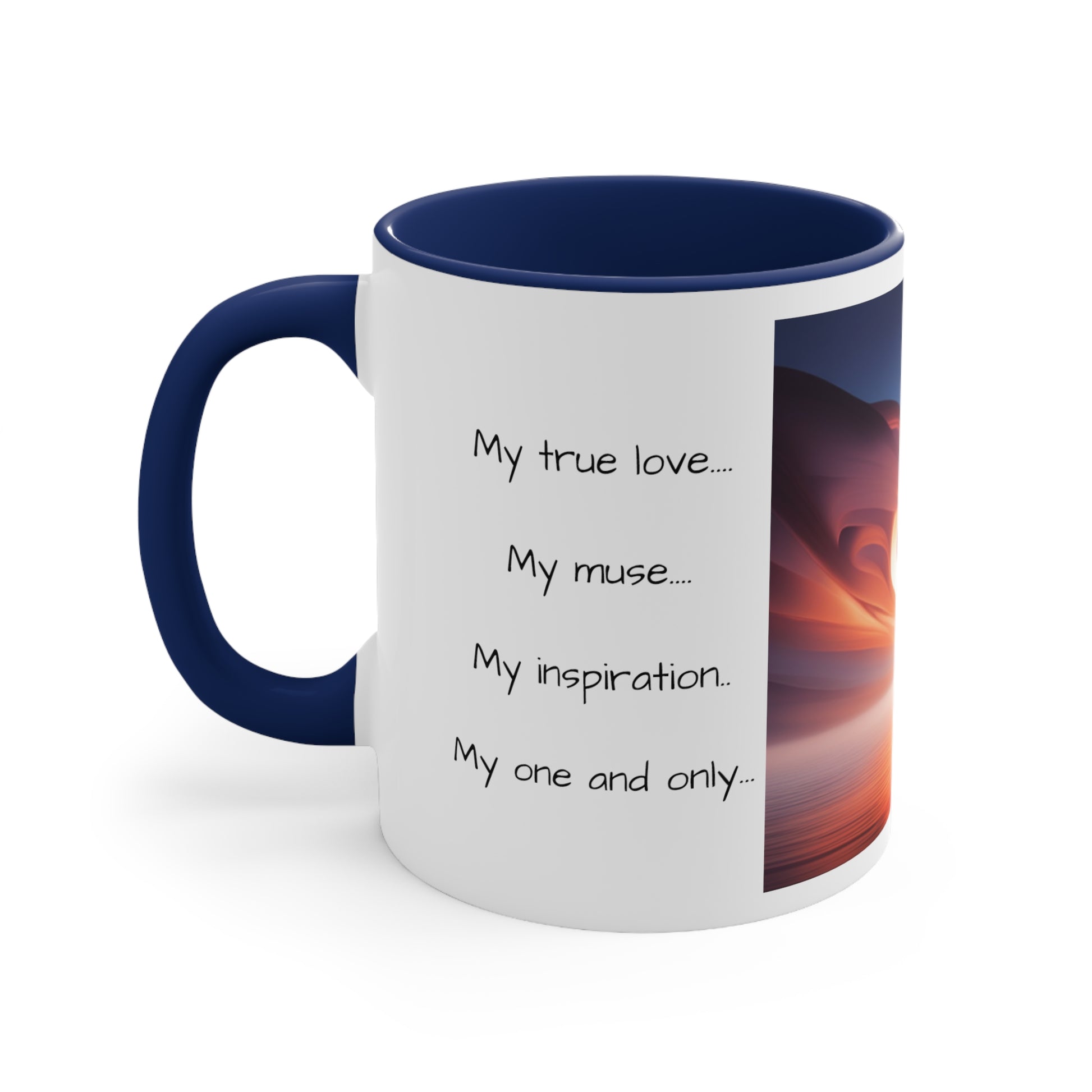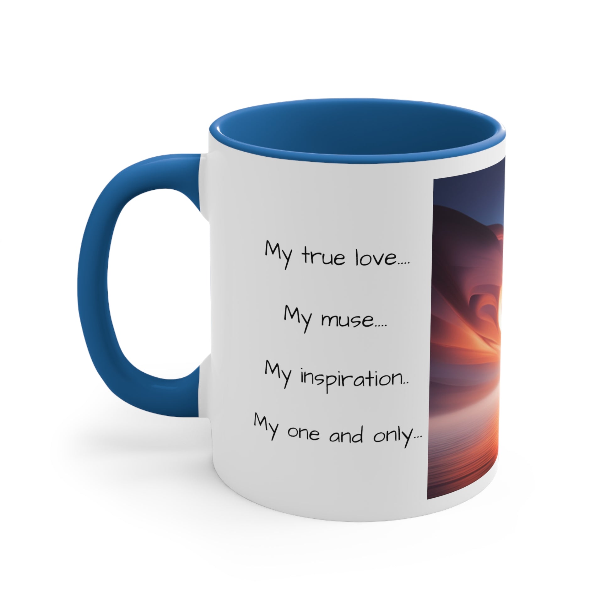 Accent Coffee Mug, 11oz, message to lover, gift for him, gift for her, my love, my muse, my inspiration, I'm here now, its time to love with all your heart and your entire soul