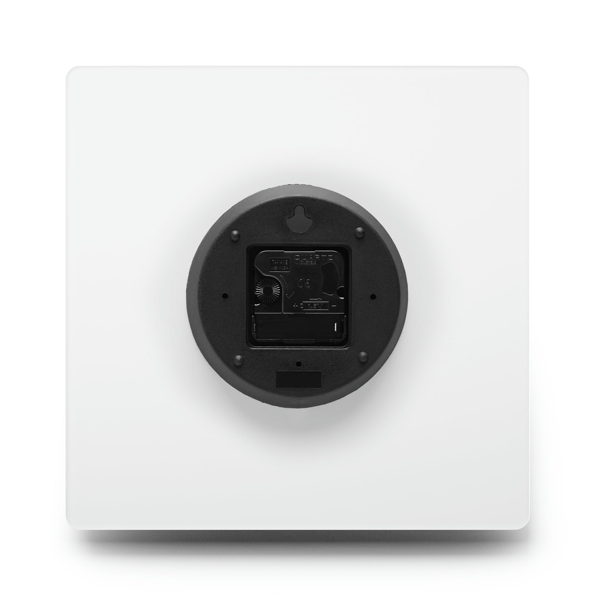 These clocks come in two shapes (round and square) and two sizes. Each clock has a keyhole at the back for easy hanging on a wall. They're made from an acrylic material that looks like glass but is more durable and sturdy.