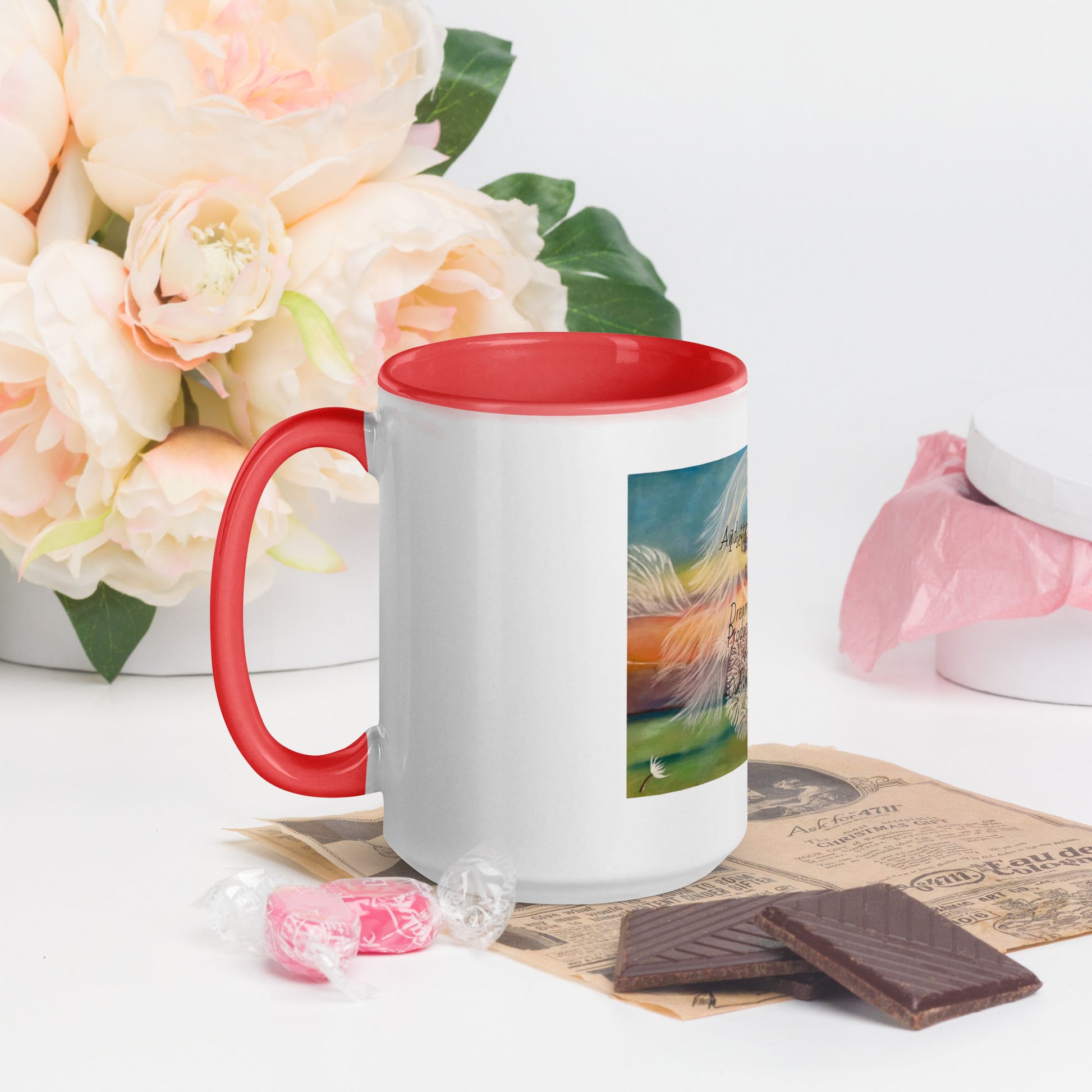 Add a splash of color to your morning coffee or tea ritual! These ceramic mugs not only have a beautiful design on them, but also a colorful rim, handle, and inside, so the mug is bound to spice up your mug rack.