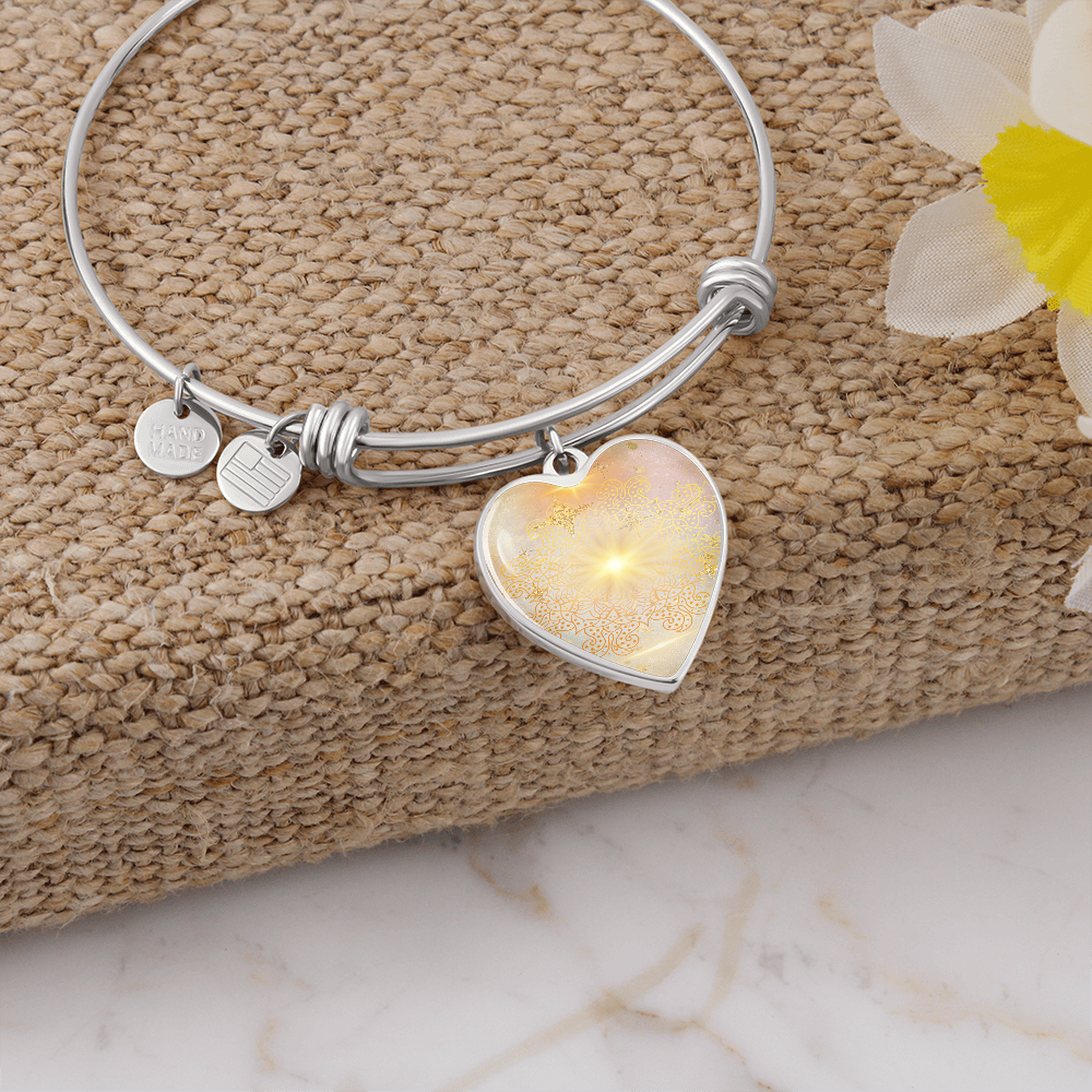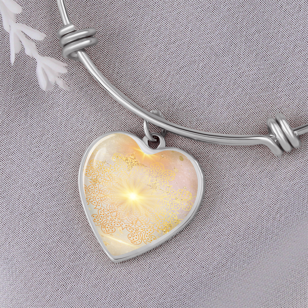 The image on this bracelet is part of a series of channelled messages and images for the ascension process, channelled by Tracy Robbins, multidimensional healer and light language channel. These images are also found in the Angel Light Codes Healing and Ascension Deck. You can find other related items in the Angel Light Codes Series Collection. The channelled message is from Archangel Sarafiel.