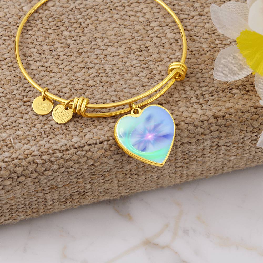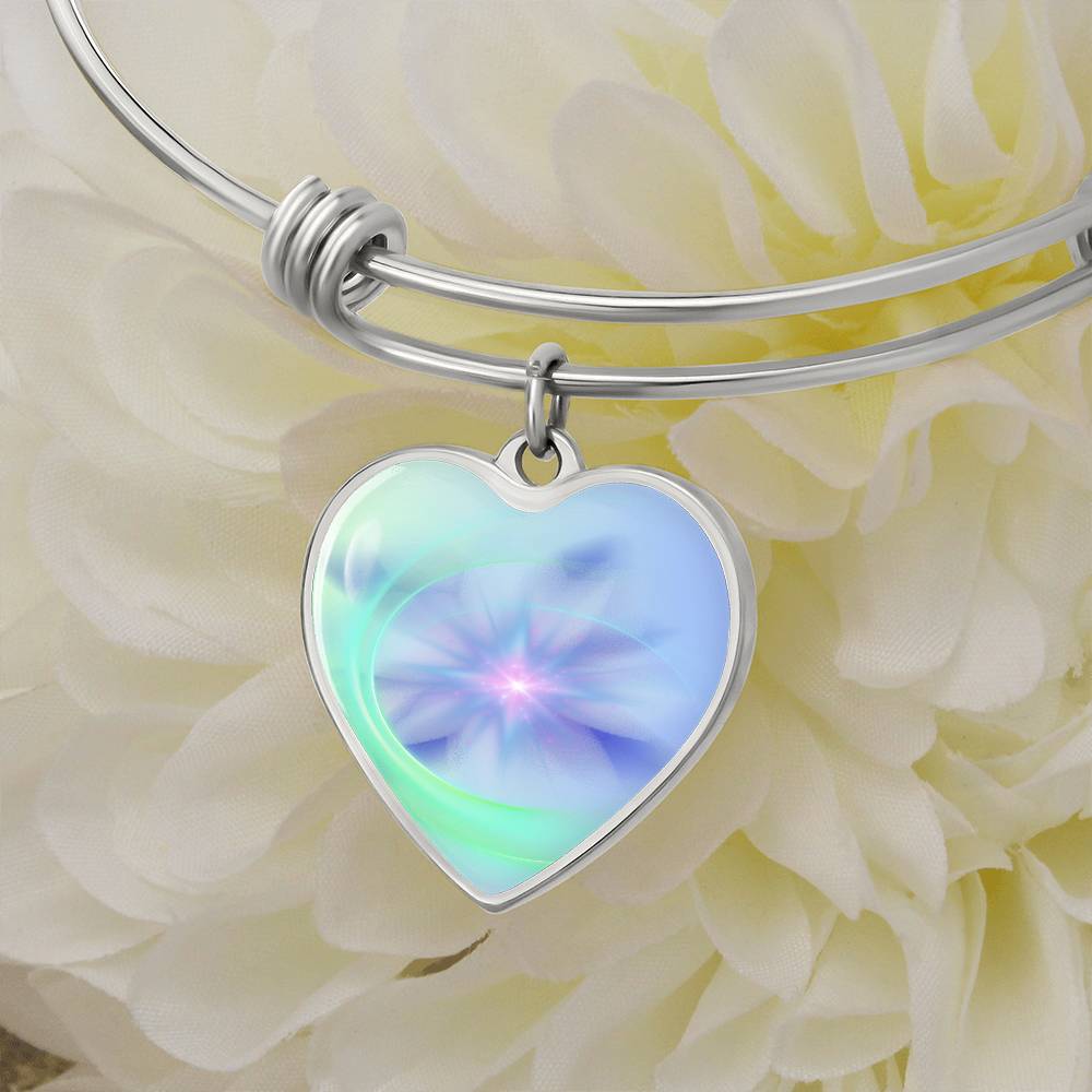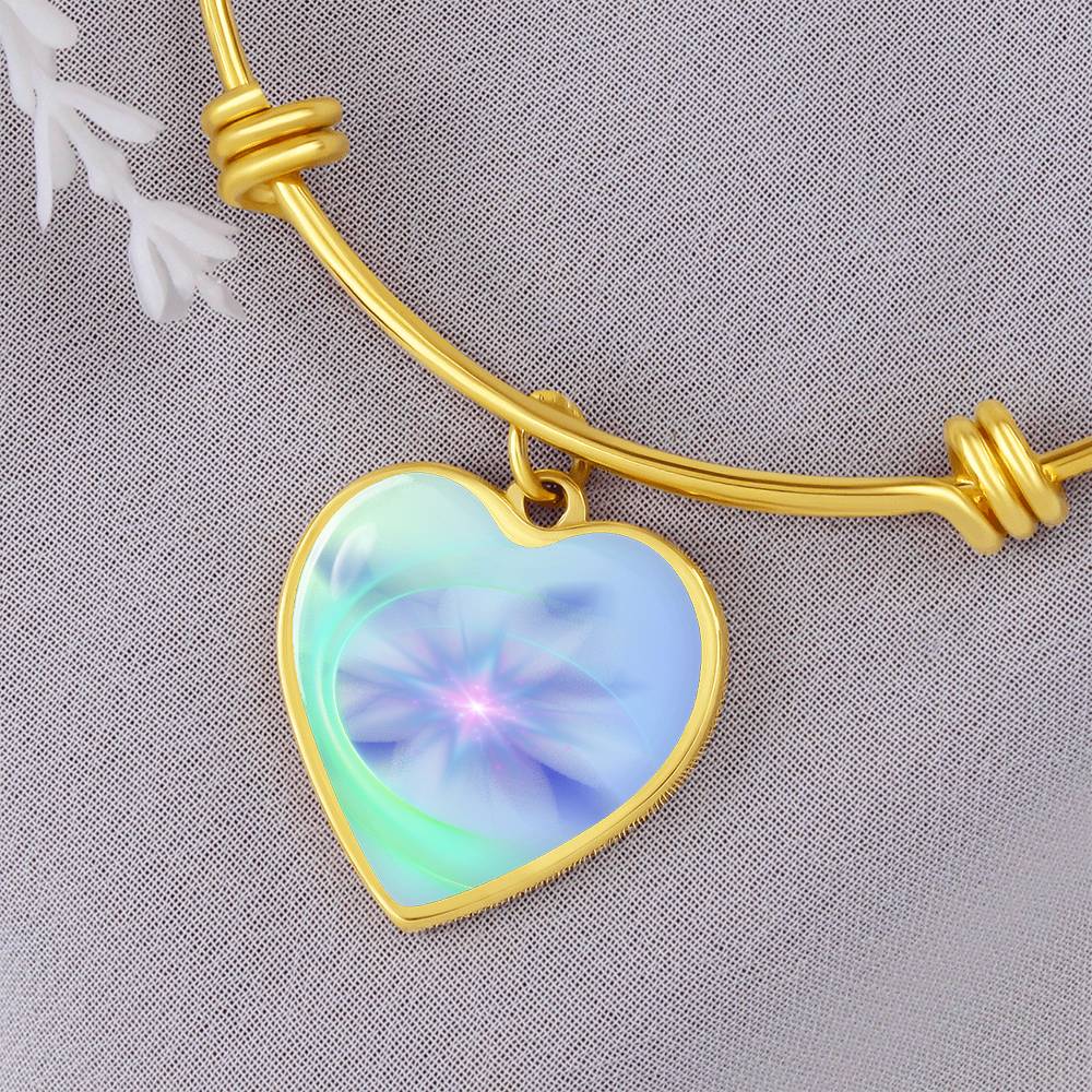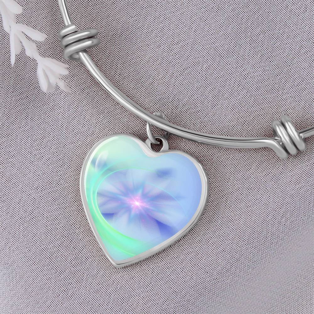 This beautiful bracelet is so much more than a pretty piece of jewellery. The unique heart charm dangles and shimmers with movement and is created with original energetic artwork that contains channeled light codes that are meant to help you access the assistance of Spirit Animals.