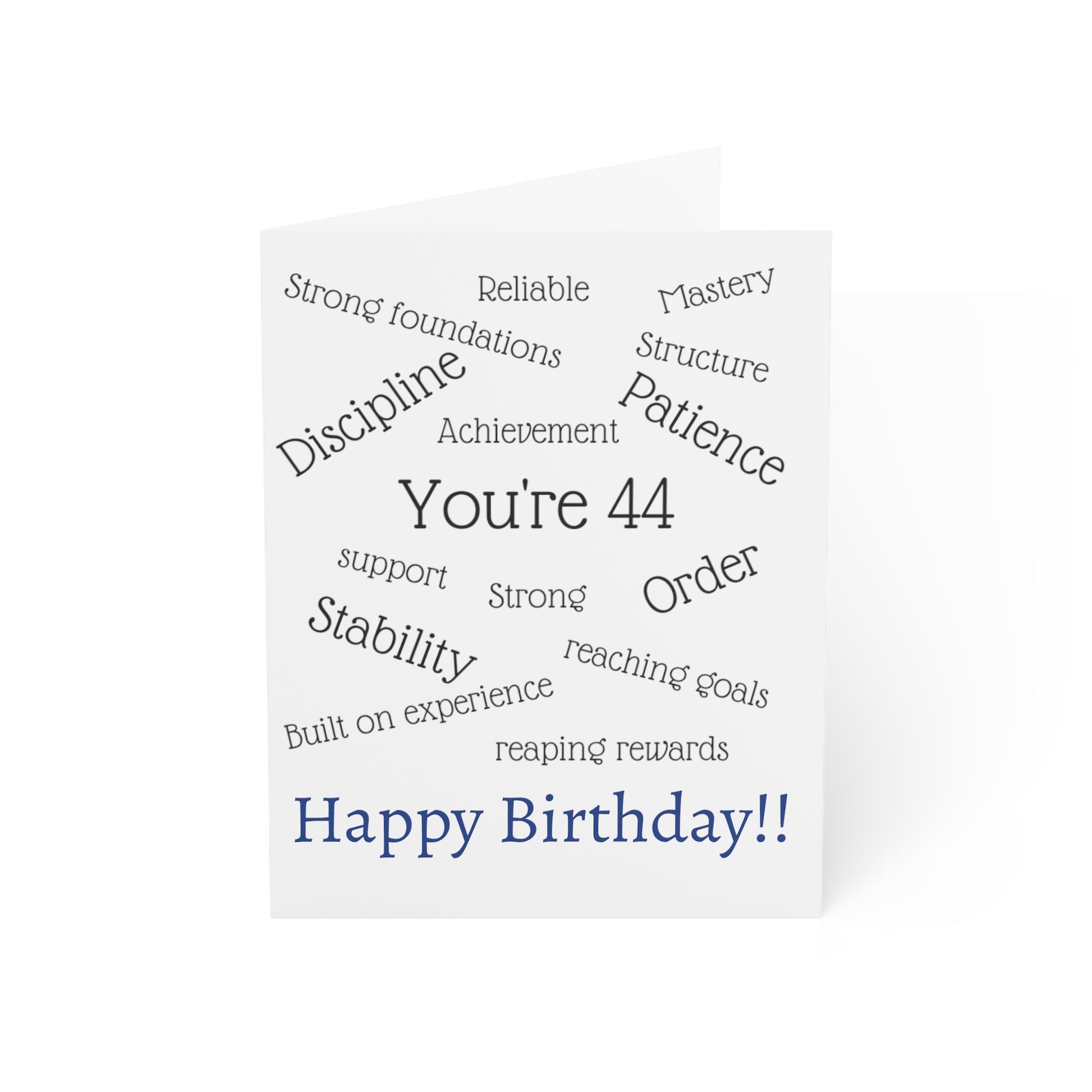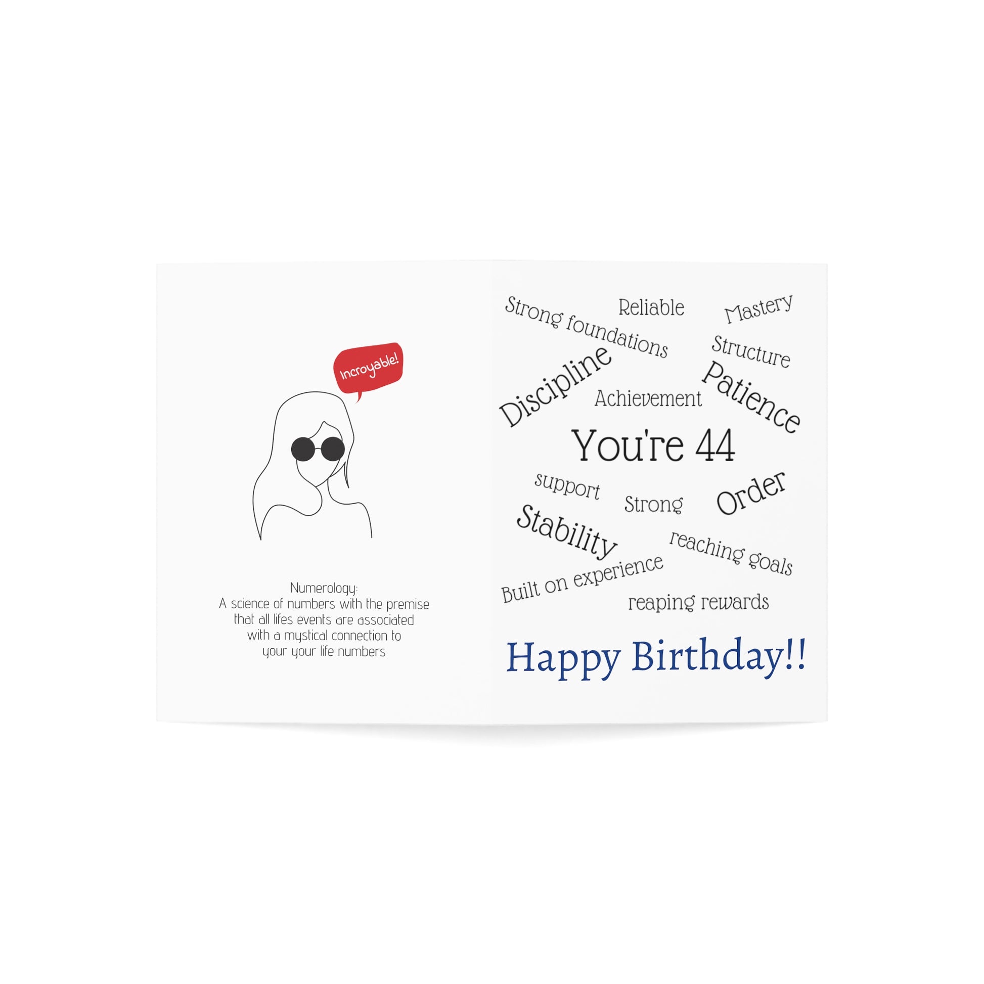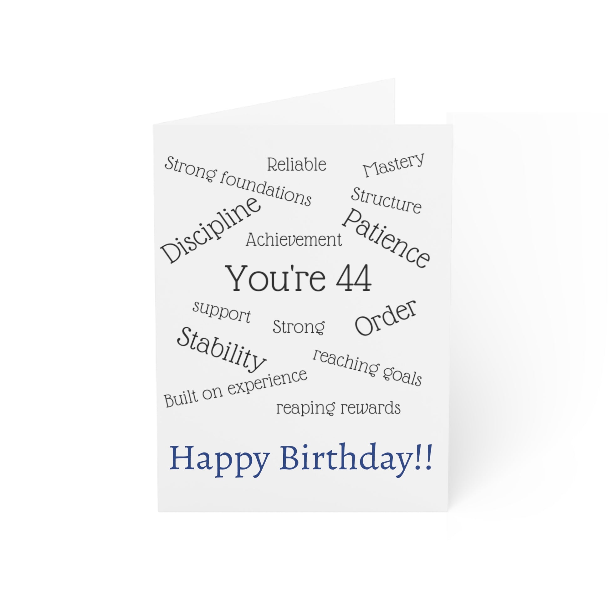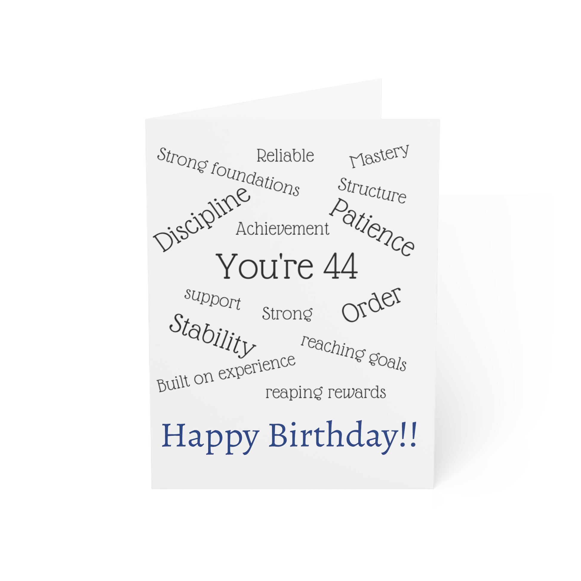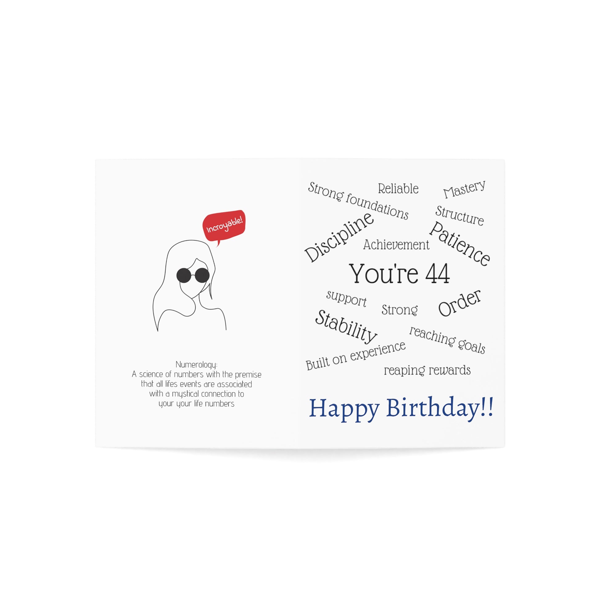 Birthday Card (1, 10, 30, and 50pcs) , 44th birthday, numerological meaning of your year to come, age birthday, gift for him or her