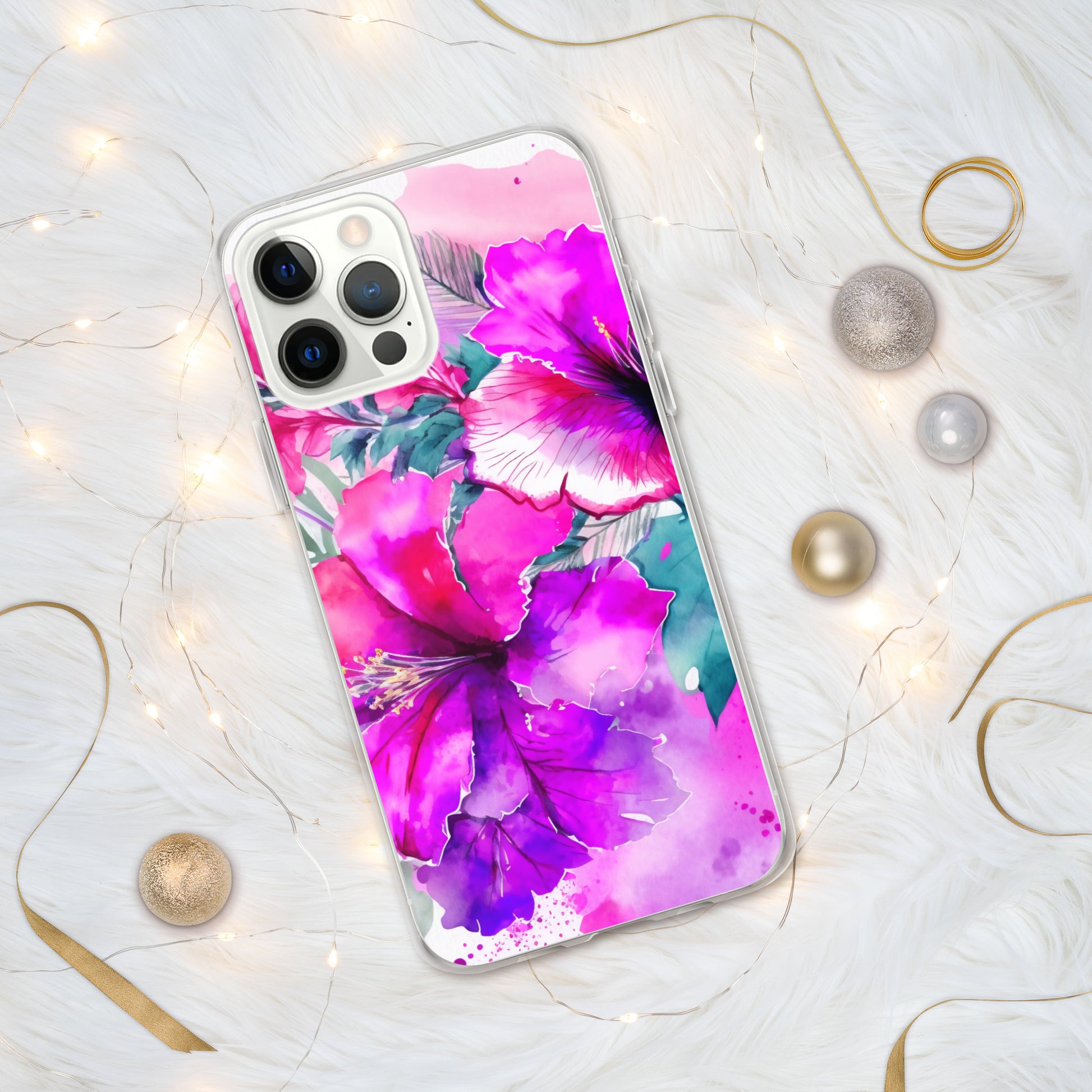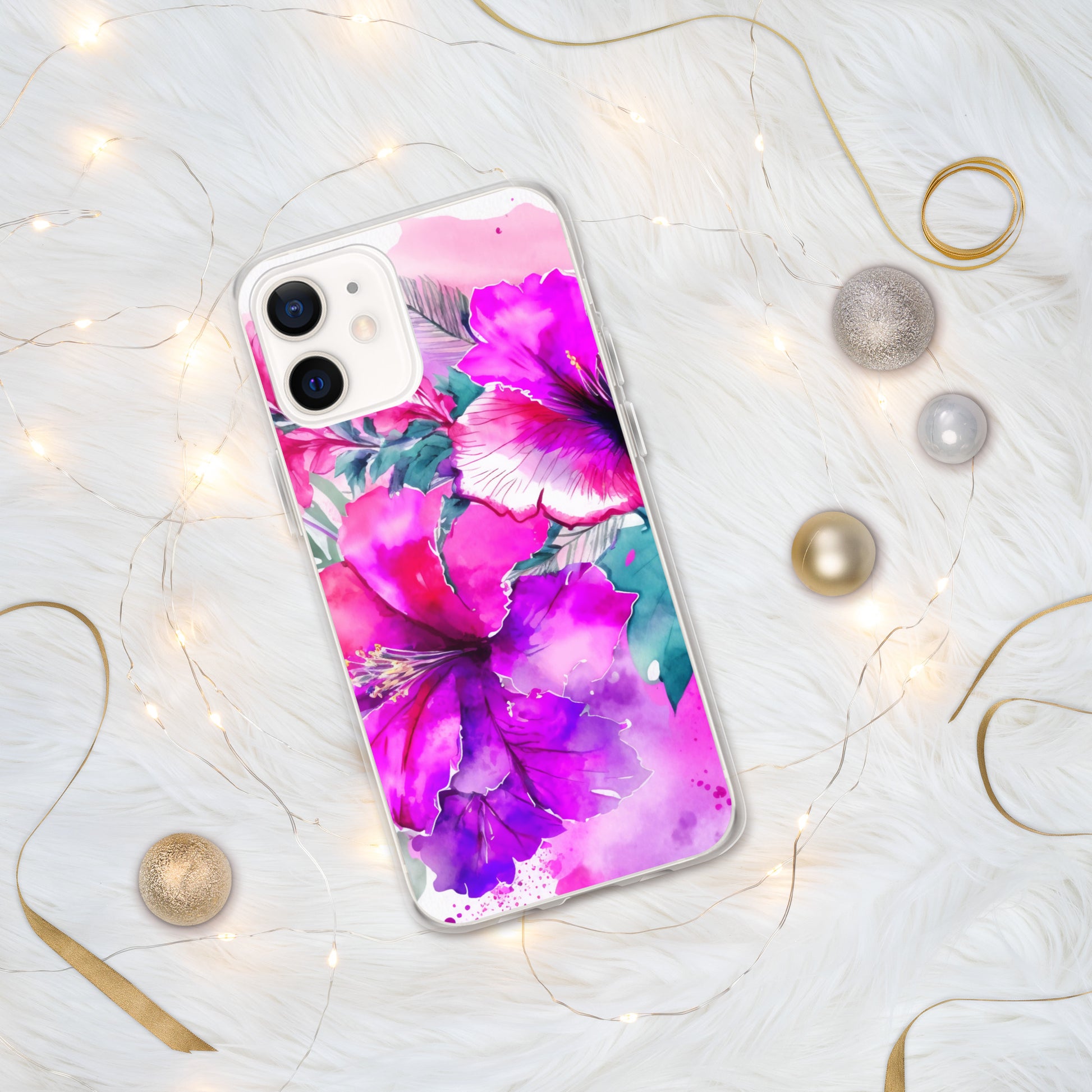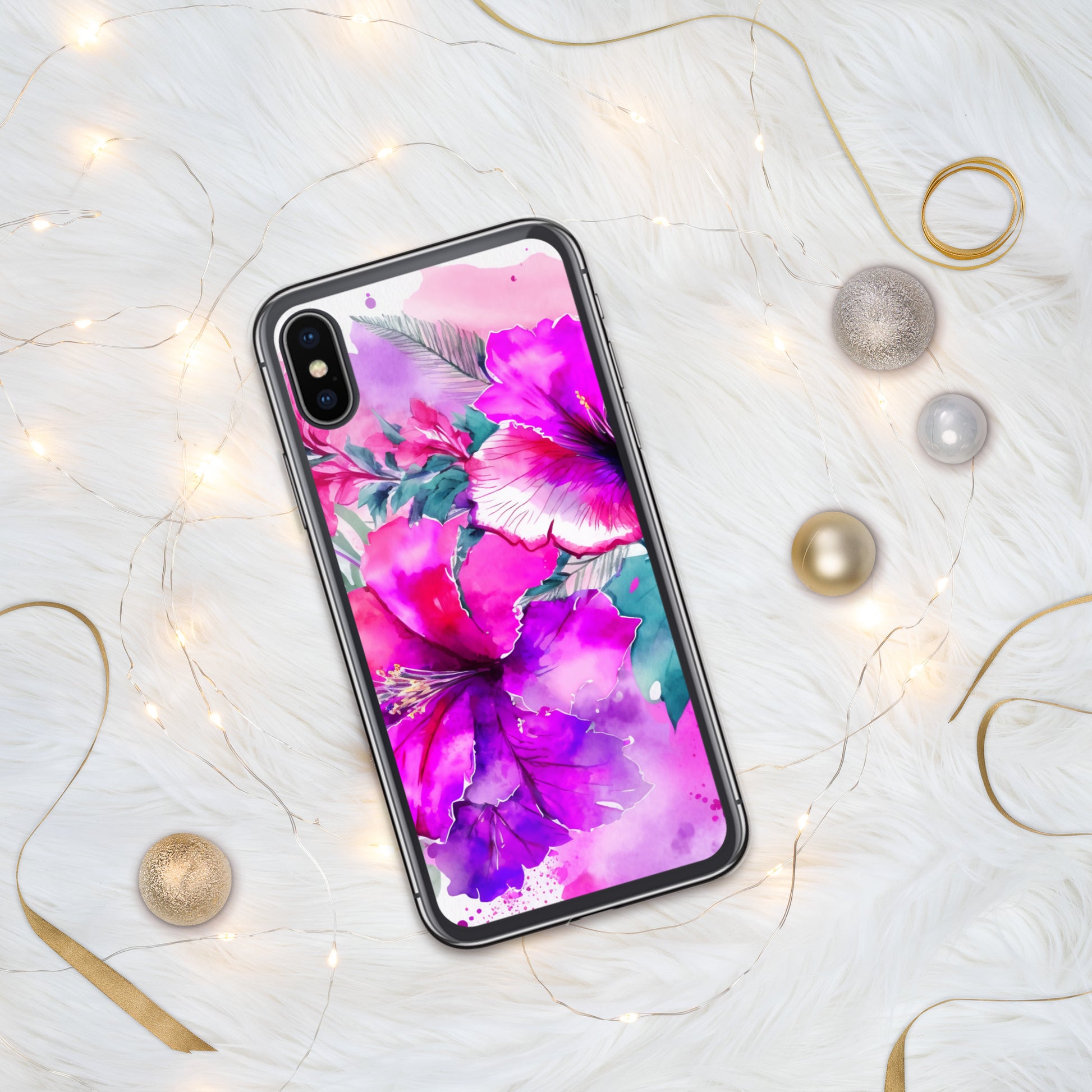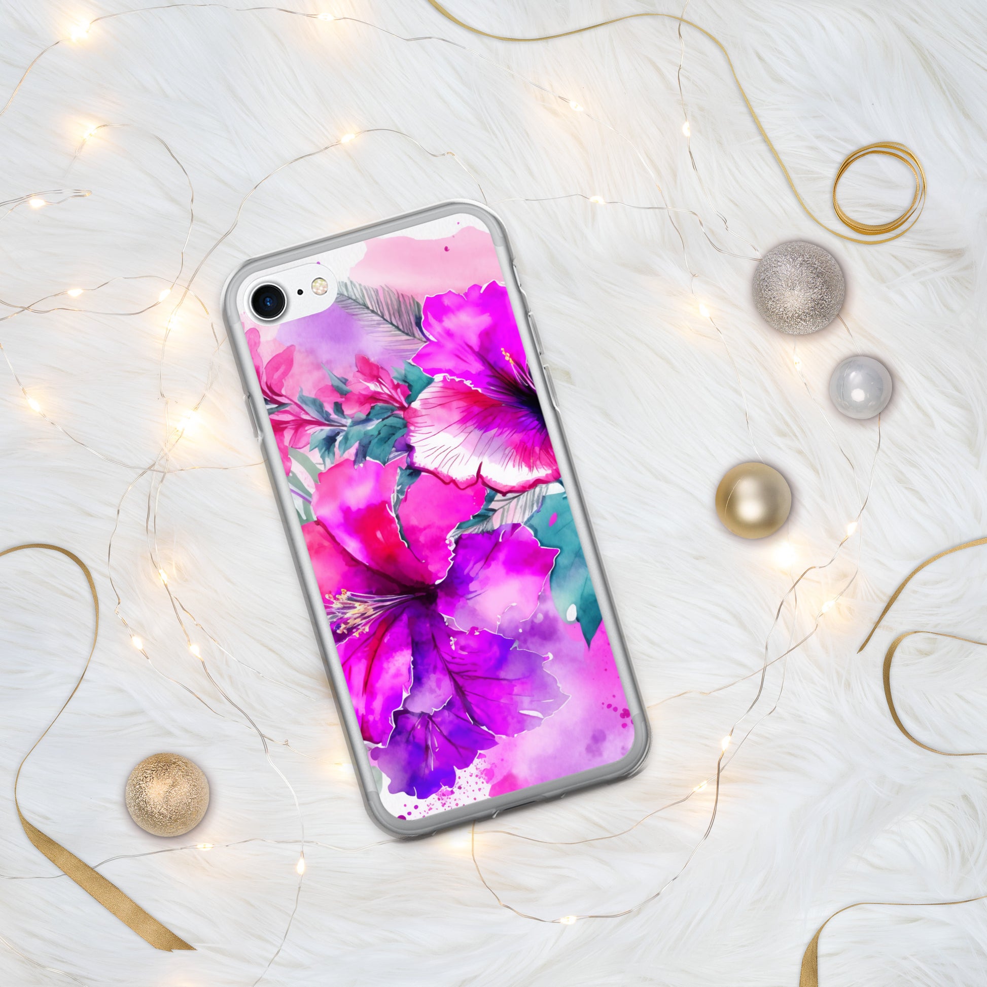 Clear Case for iPhone®, pink and purple hibisuc flower design, floral, multiple sizes