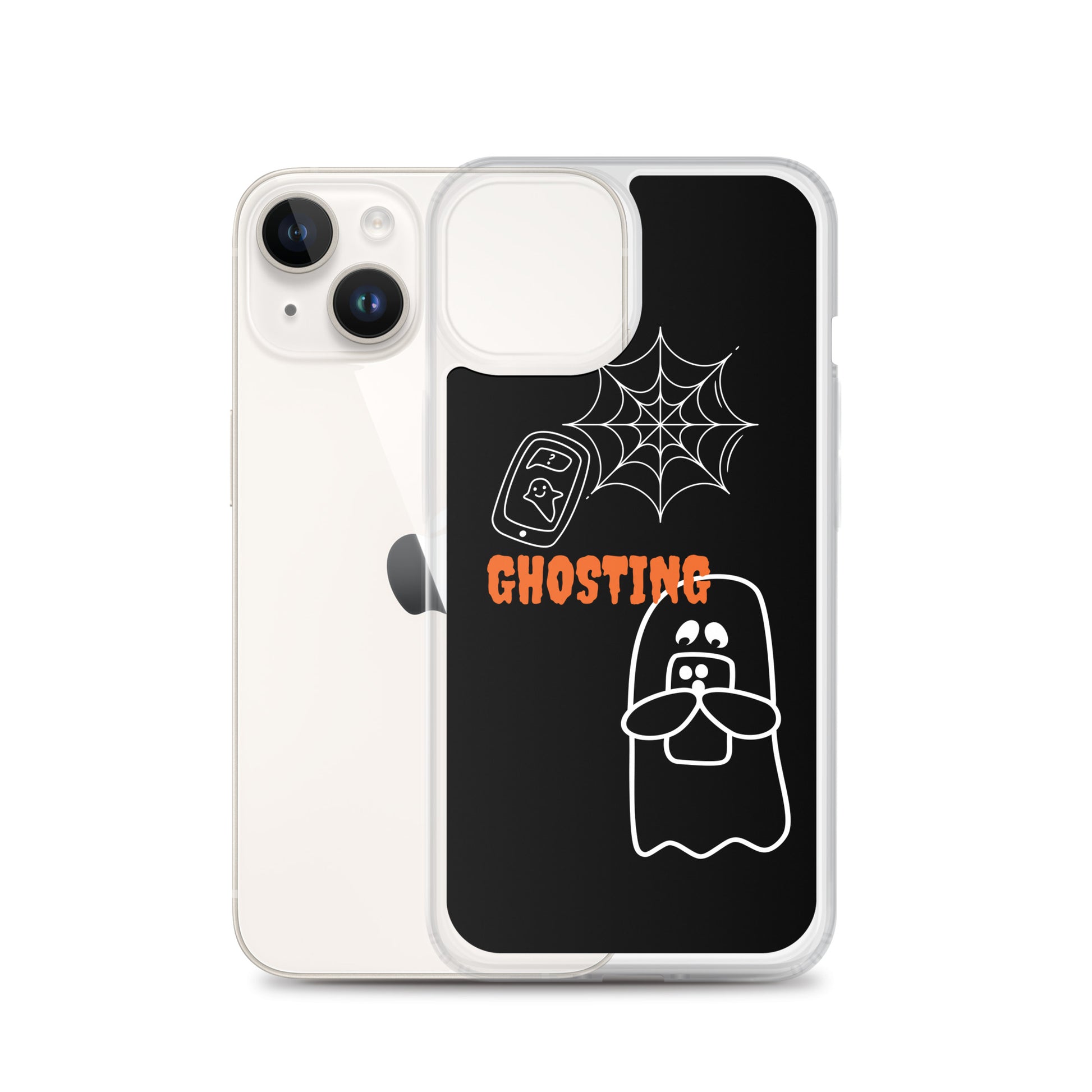 Clear Case for iPhone® with guosting theme, image of ghost and spider web