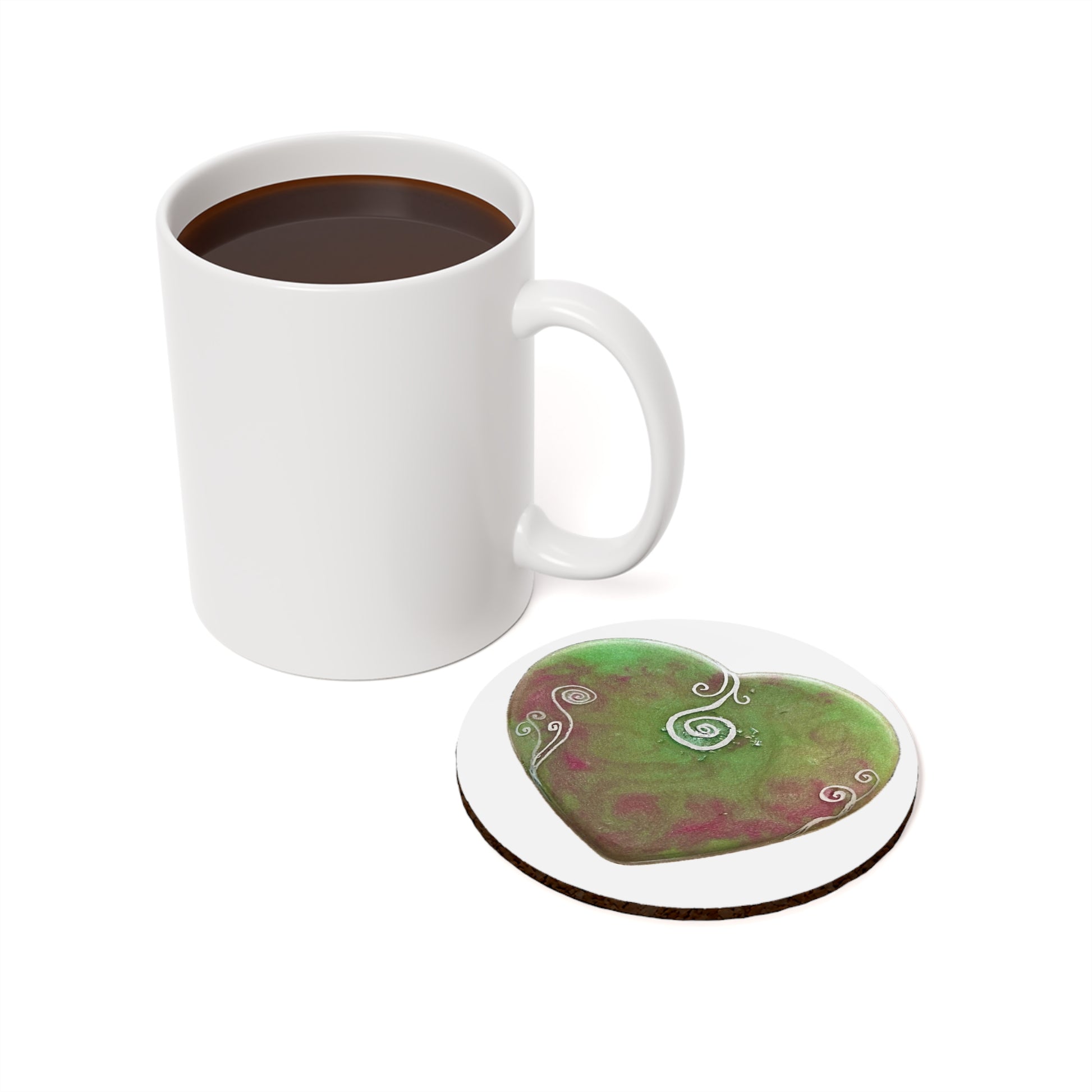 Each round and square coaster is made with a high-gloss, polyester-coated hardboard top, and features a genuine cork bottom to prevent sliding.