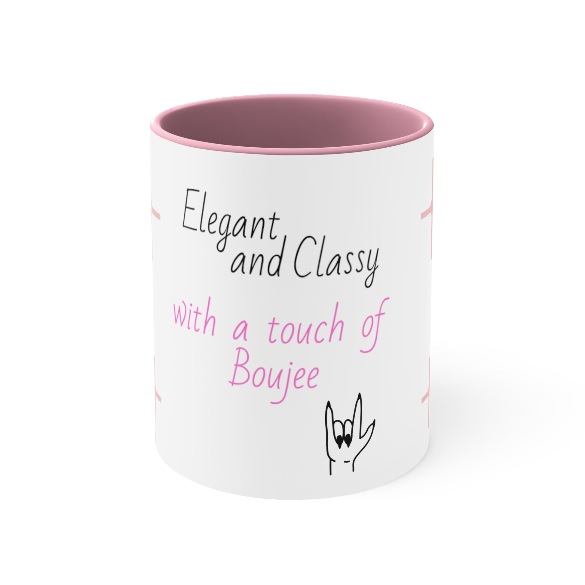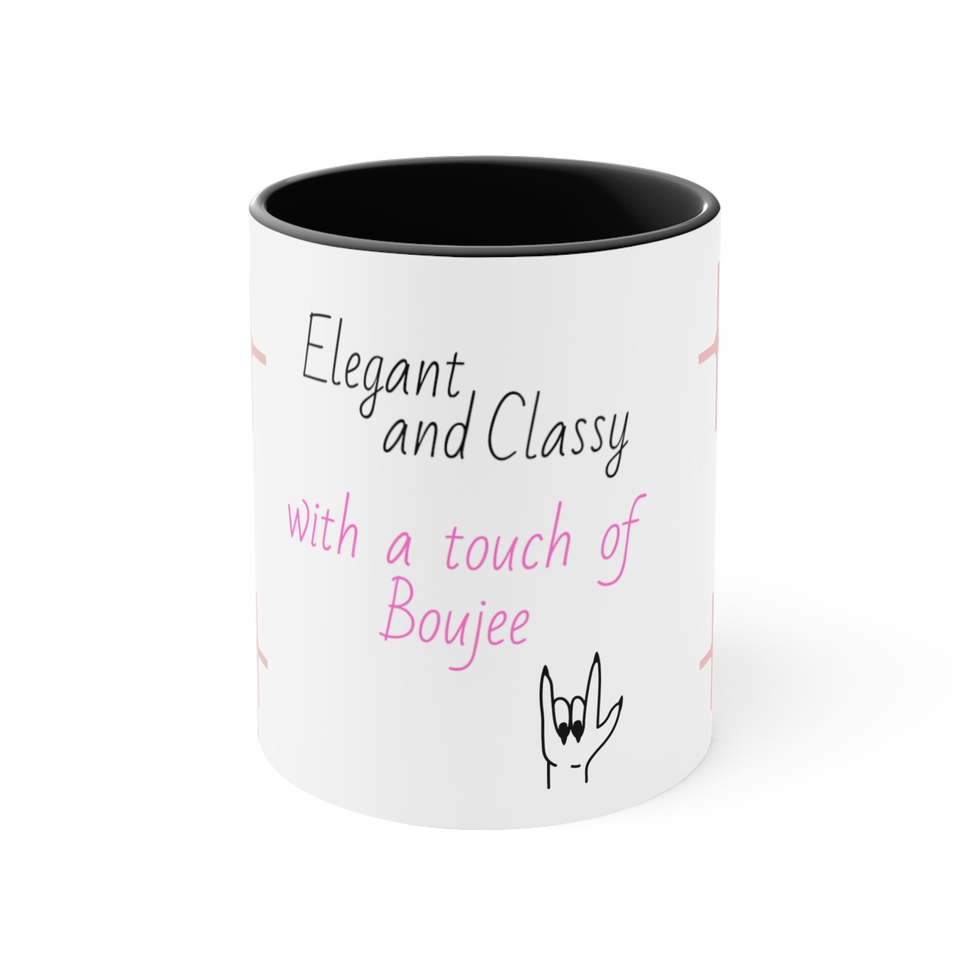 Elegant, classy and funky Coffee cup Mug, 11oz, two tone, white with pink and or black, gift for her