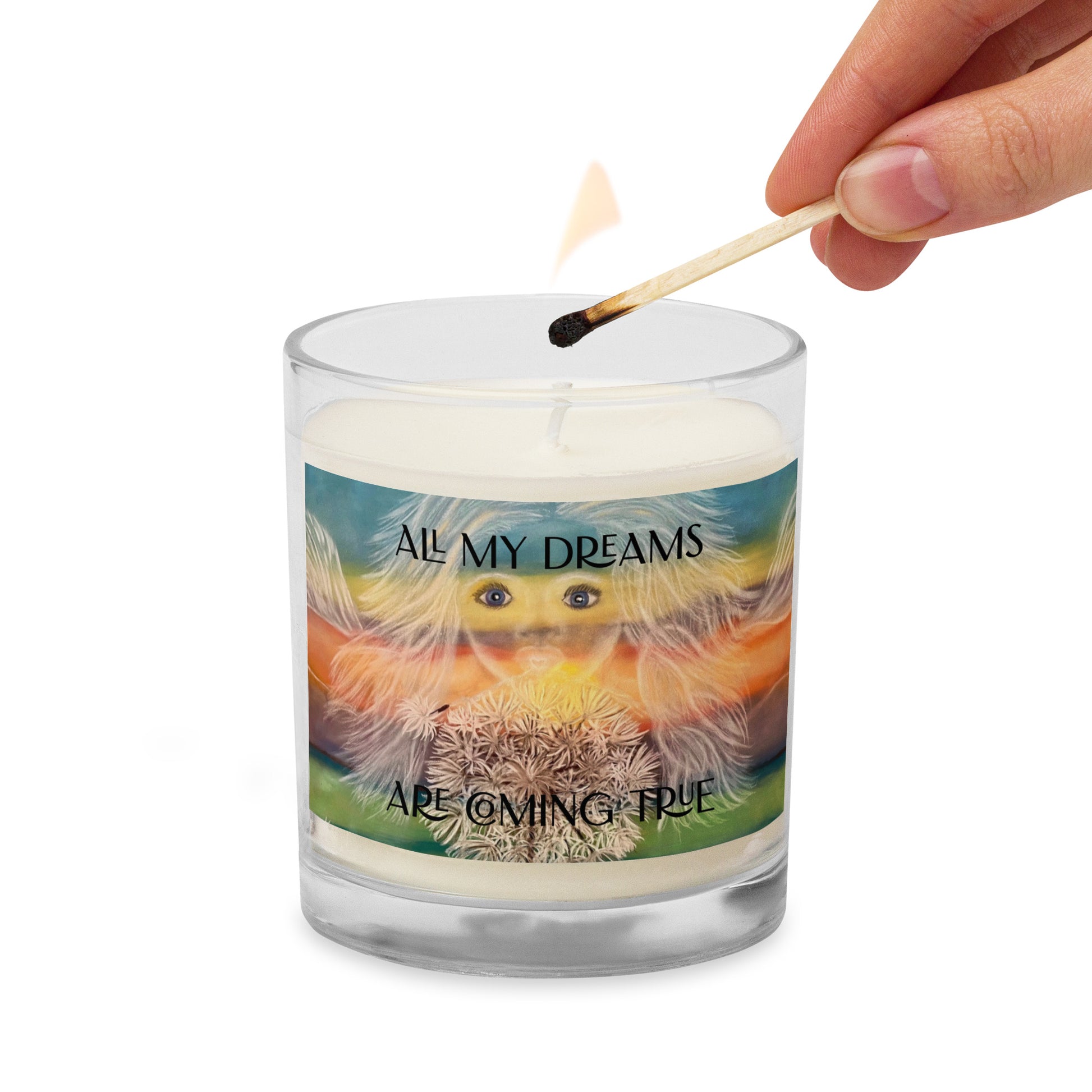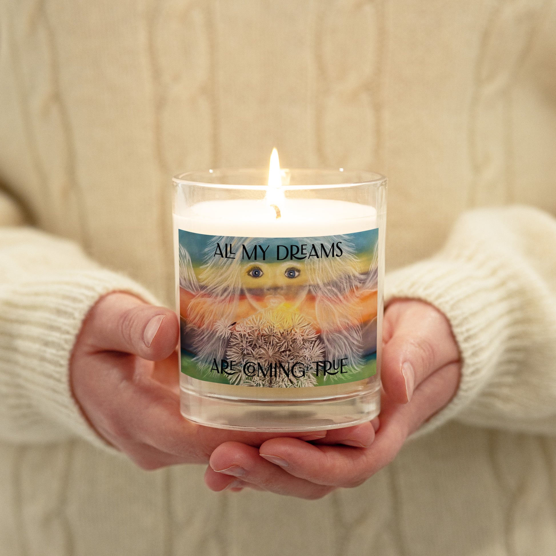 Glass jar soy wax candle, alchemical art design, affirmation candle, make your dreams come true.