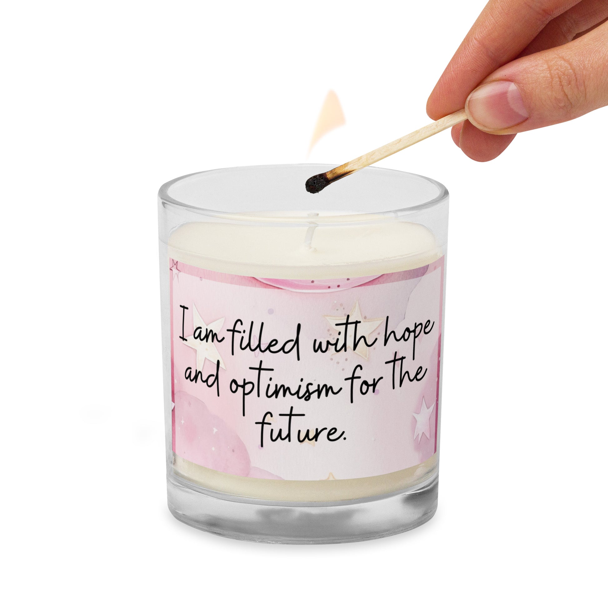 Glass jar soy wax candle, positivity candle, I am filled with hope and optimism for the future, soft pink, stars
