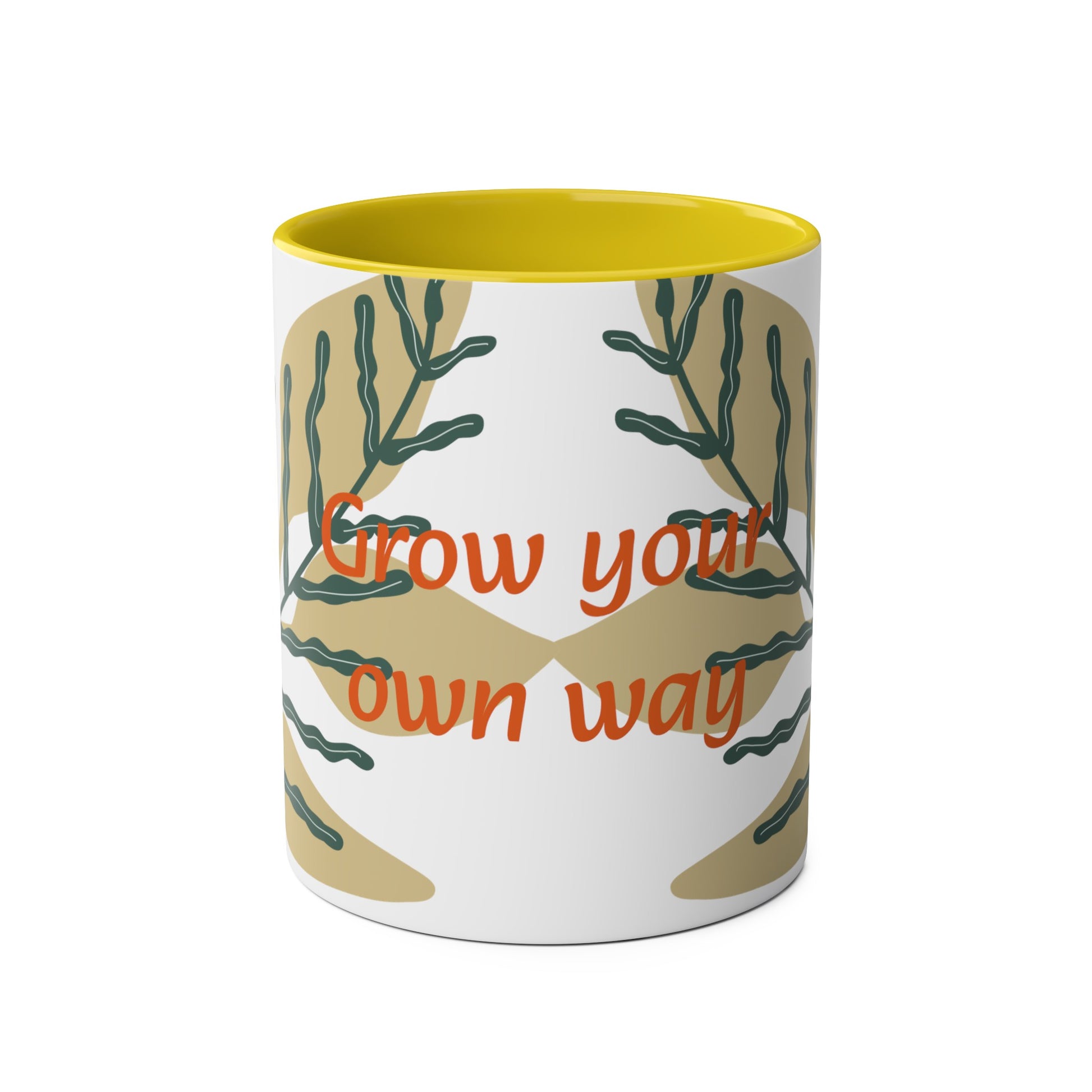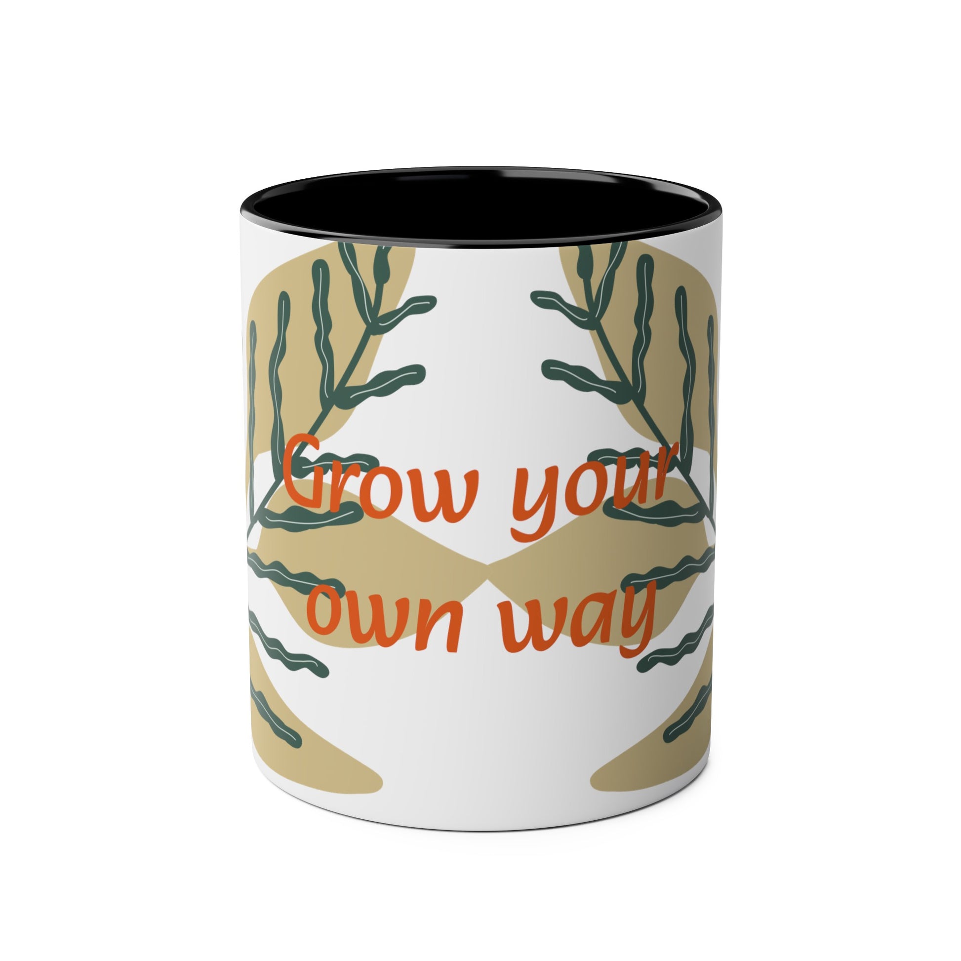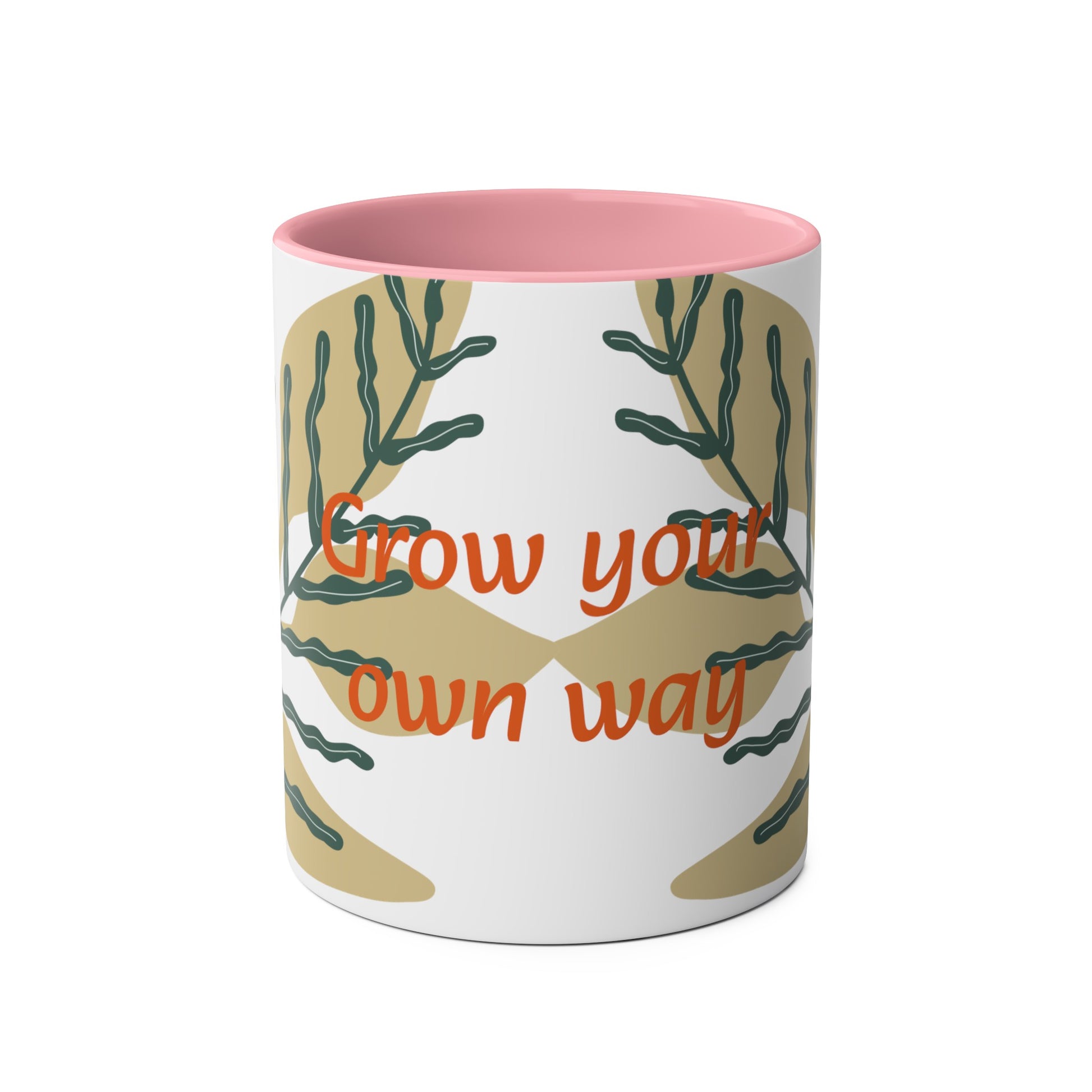 Grow your own way Two-Tone Coffee Mugs, 11oz, Uk, pink, yellow, green, blue, black, plant, grow, leaf, unisex, him, her, gift, present