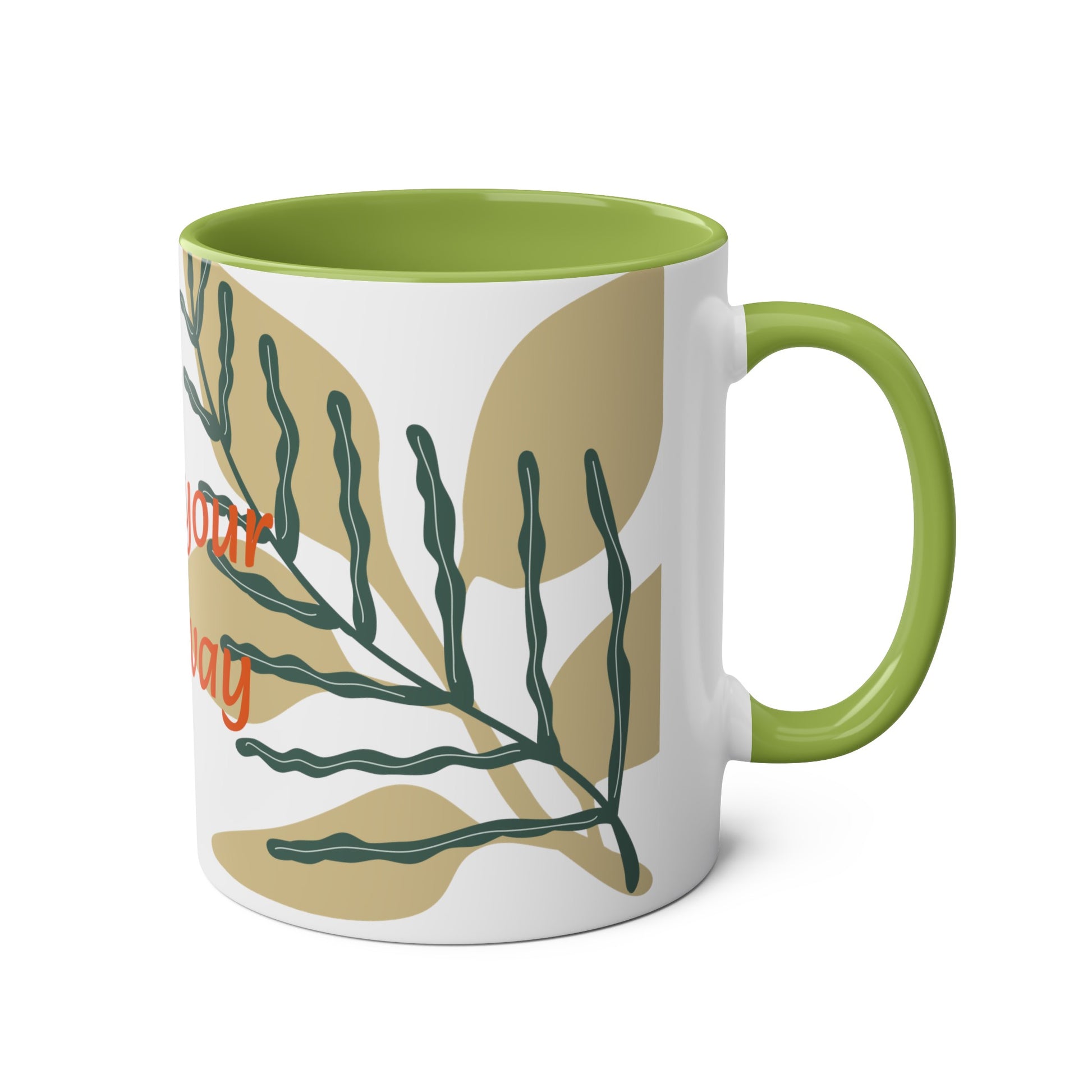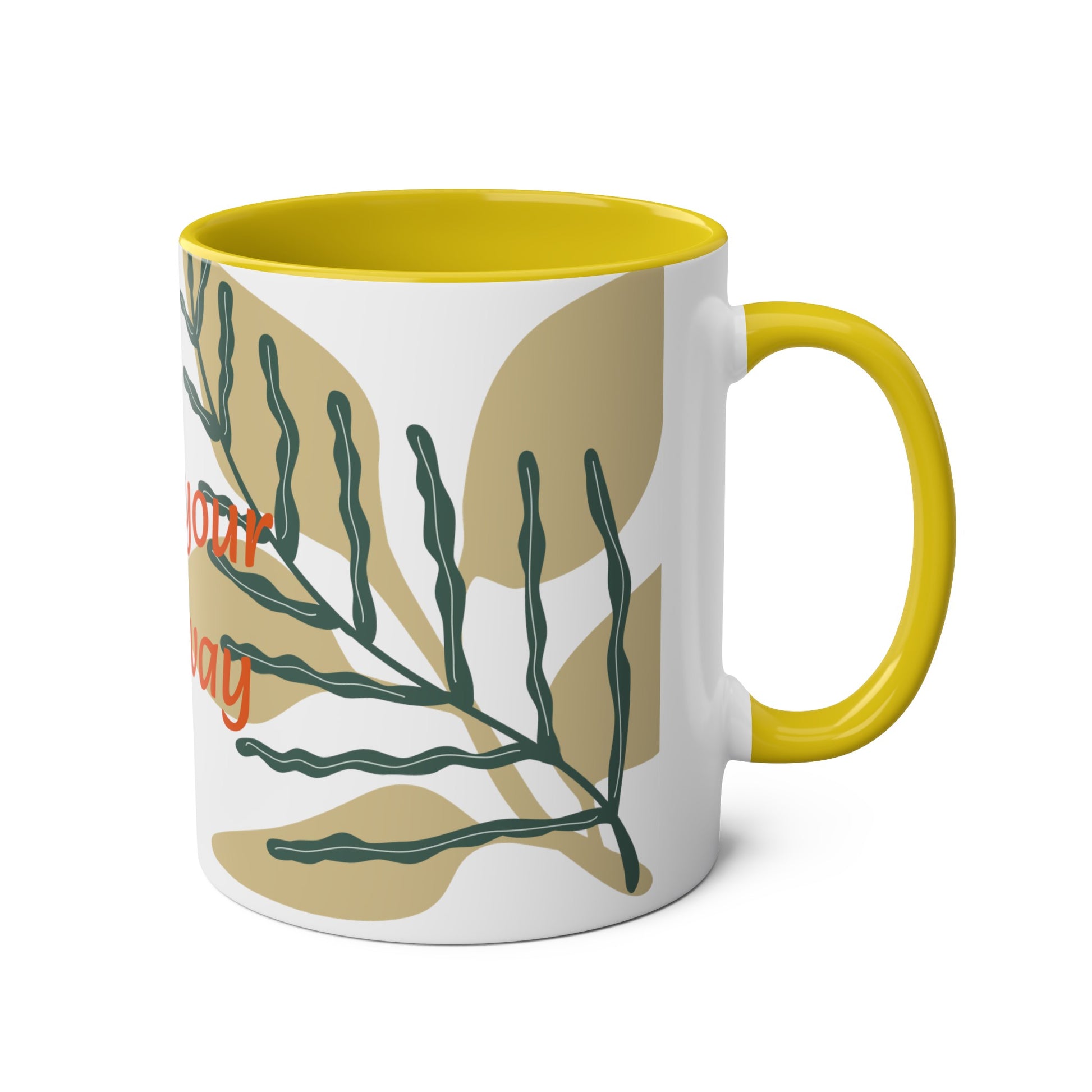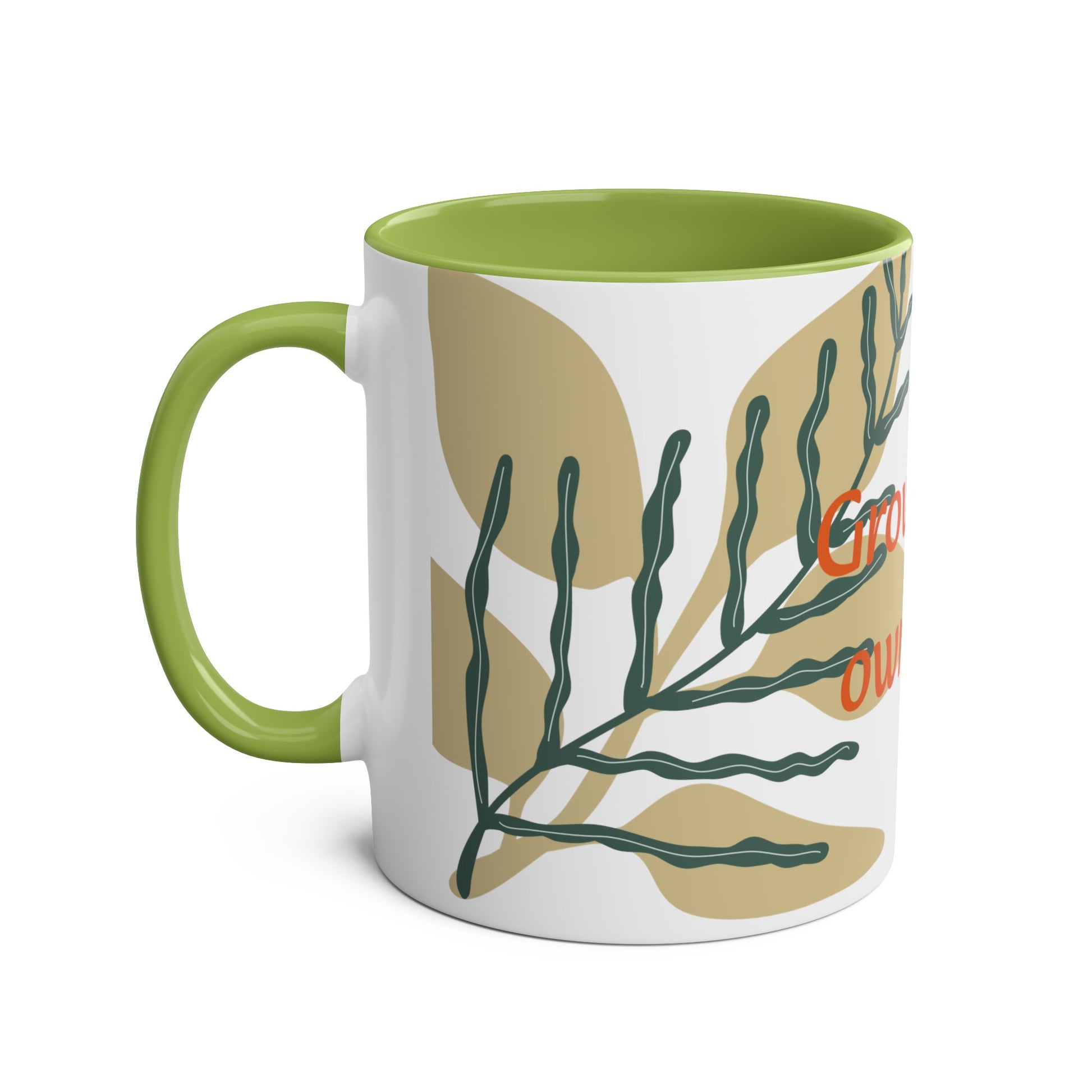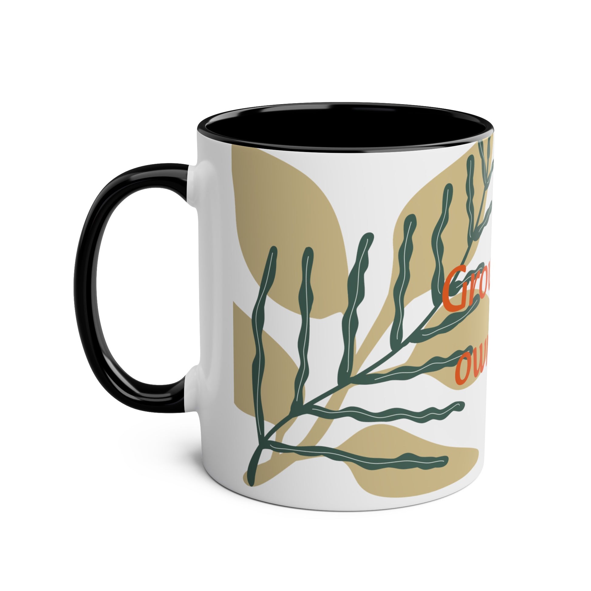Grow your own way Two-Tone Coffee Mugs, 11oz, Uk, pink, yellow, green, blue, black, plant, grow, leaf, unisex, him, her, gift, present