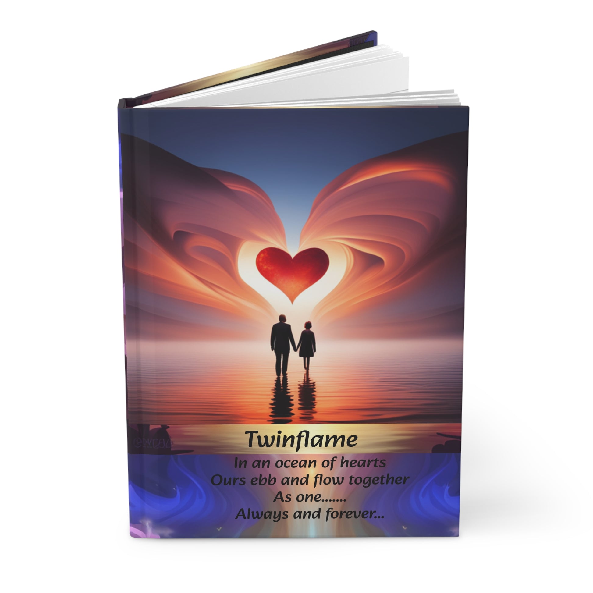 Hardcover Journal Matte Twinflame Journal, In an ocean of hearts, ours ebb and flow together as one, always and forever, gift for lovers.