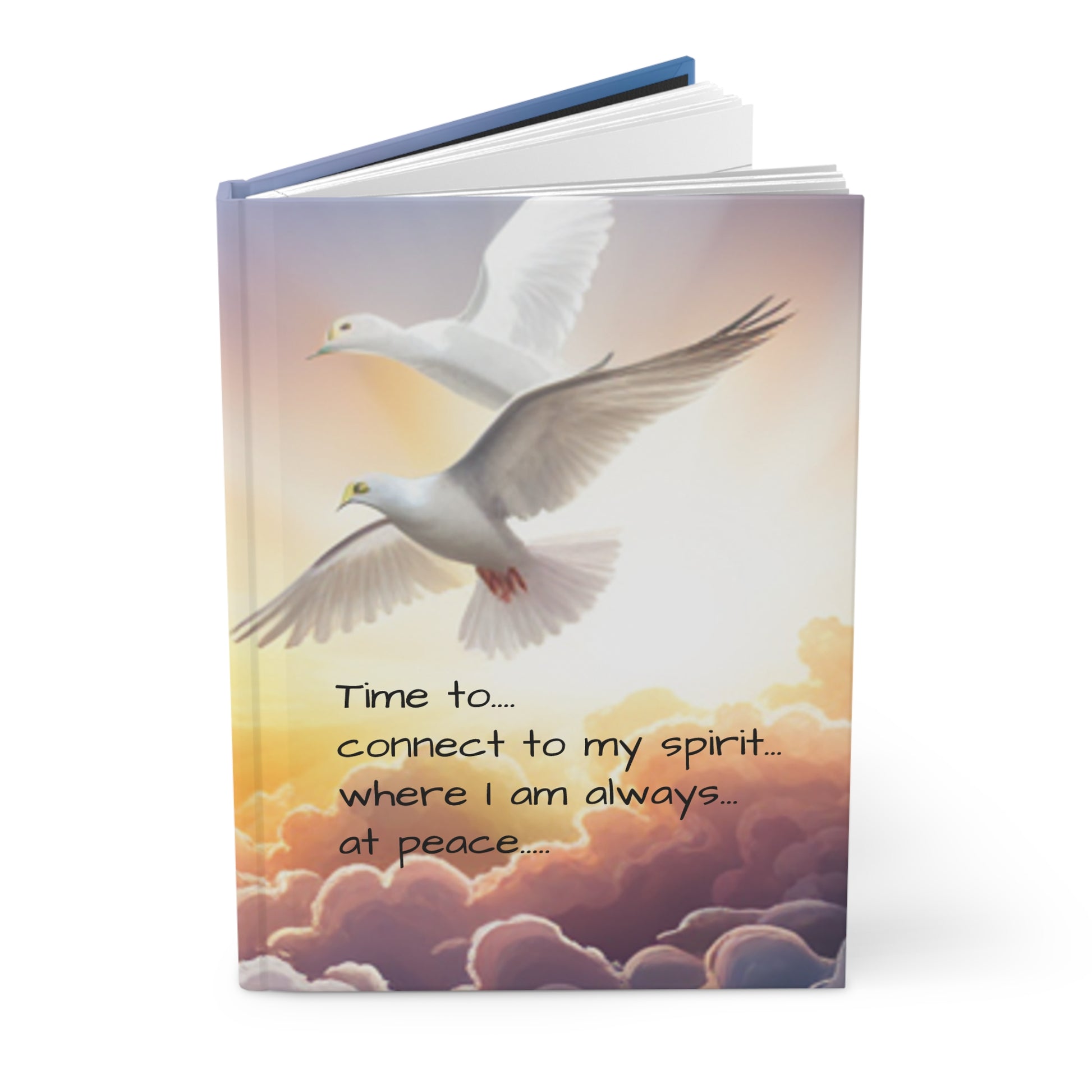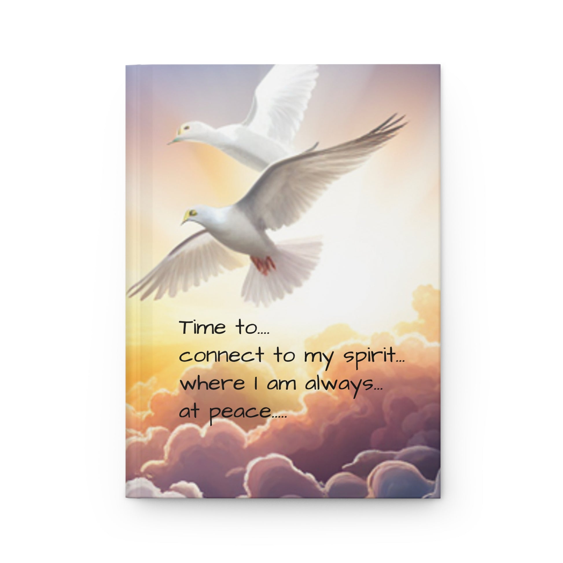Hardcover Journal Matte, doves in clouds, doves flying, affirmations, Time to connect to my spirit where I am always at peace, creative journal, gift for her, gift for him