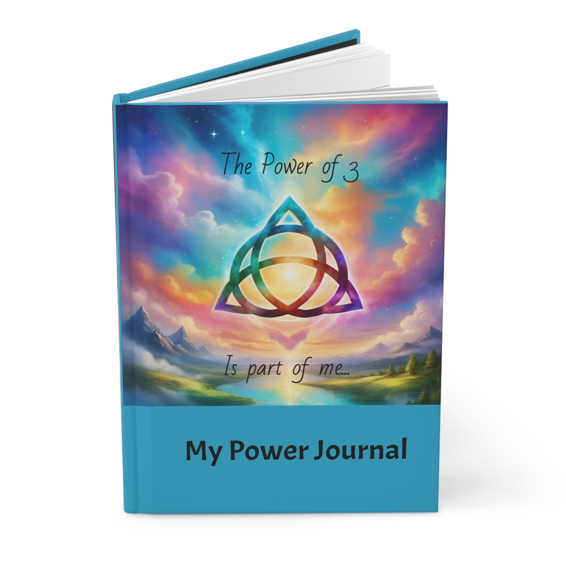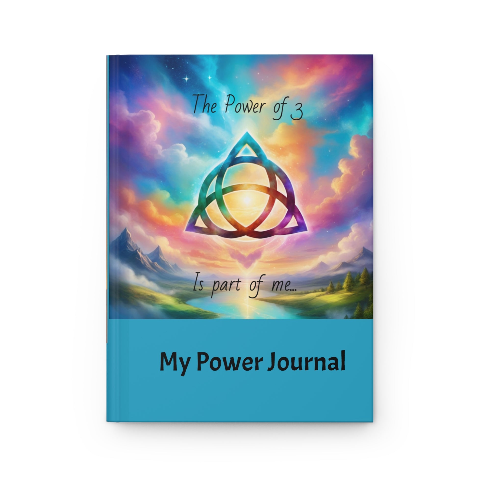 Hardcover Journal Matte, My power journal, featuring a triquetra symbol and the words " the power of 3 is part of me", affirmation, magic, visioning