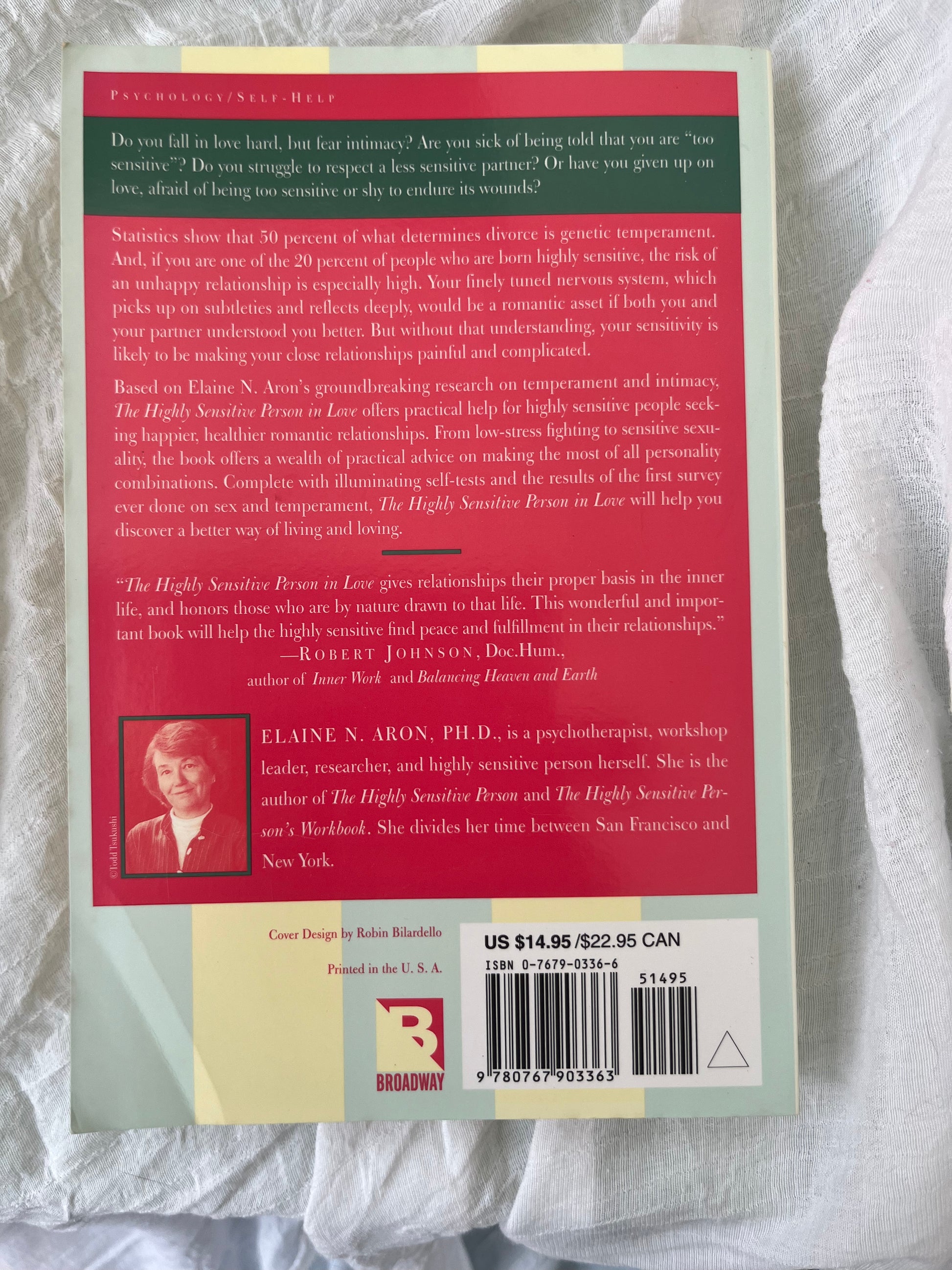 ELAINE N. ARON, PH.D., is a psychotherapist, workshop leader, researcher, and highly sensitive person herself. She is the author of The Highly Sensitive Person and The Highly Sensitive Person's Workbook. She divides her time between San Francisco and New York.