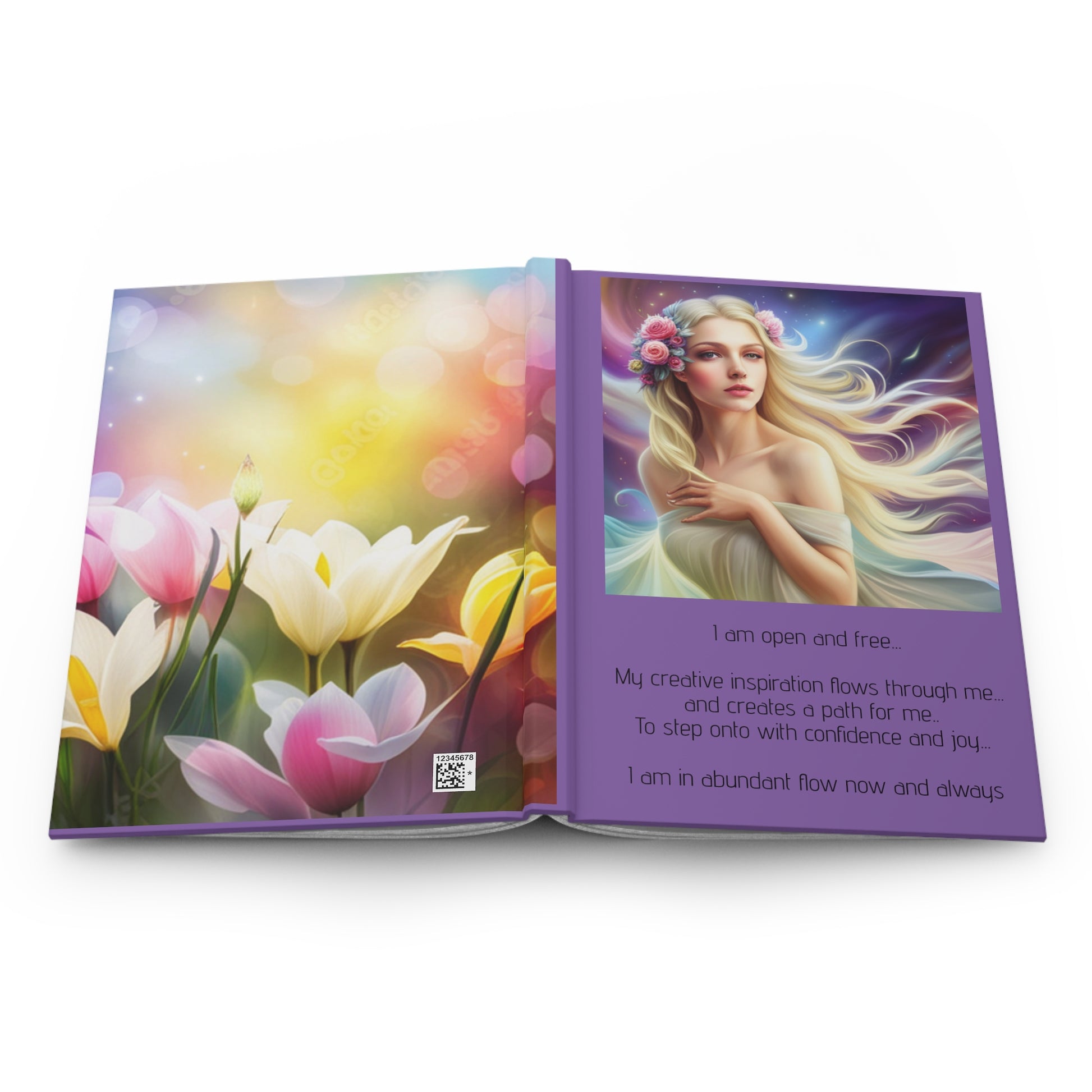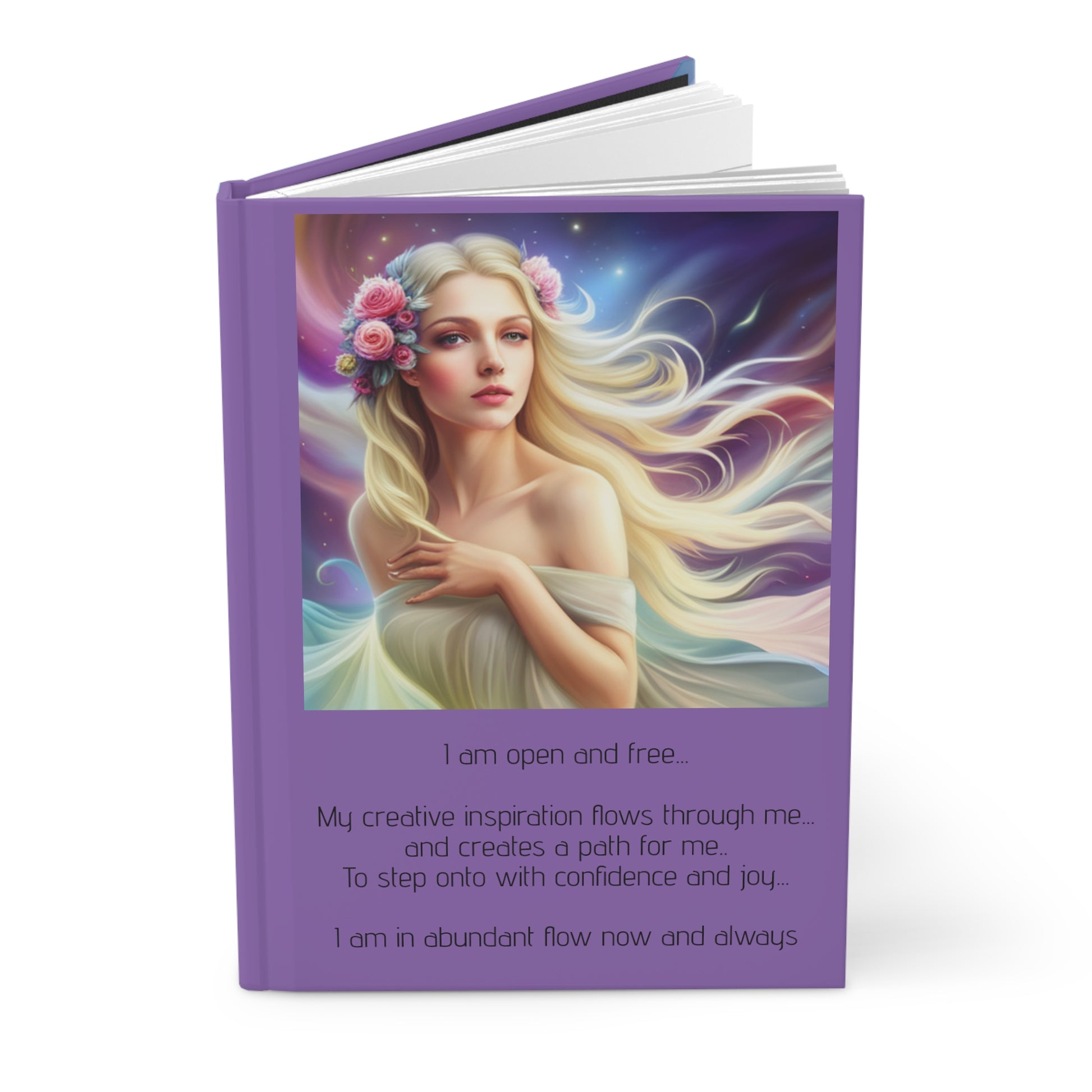I am open and free, my creative inspiration flows through me and creates a path to step onto with confidence and joy, Hardcover Journal