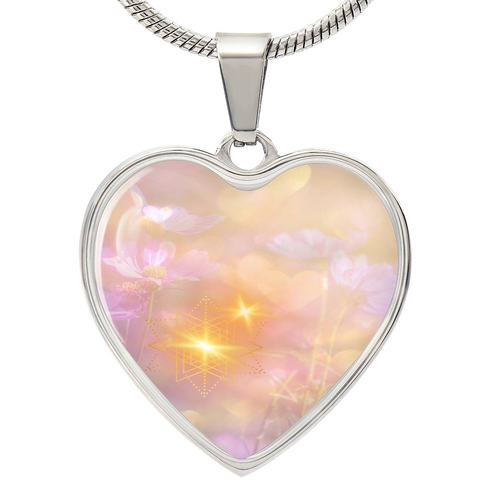 Intention Necklace, light encoded, Angel Light Codes, Your assured success leads the way, heart shaped pendant in choice of silver or gold colours, with chain, engraving available.