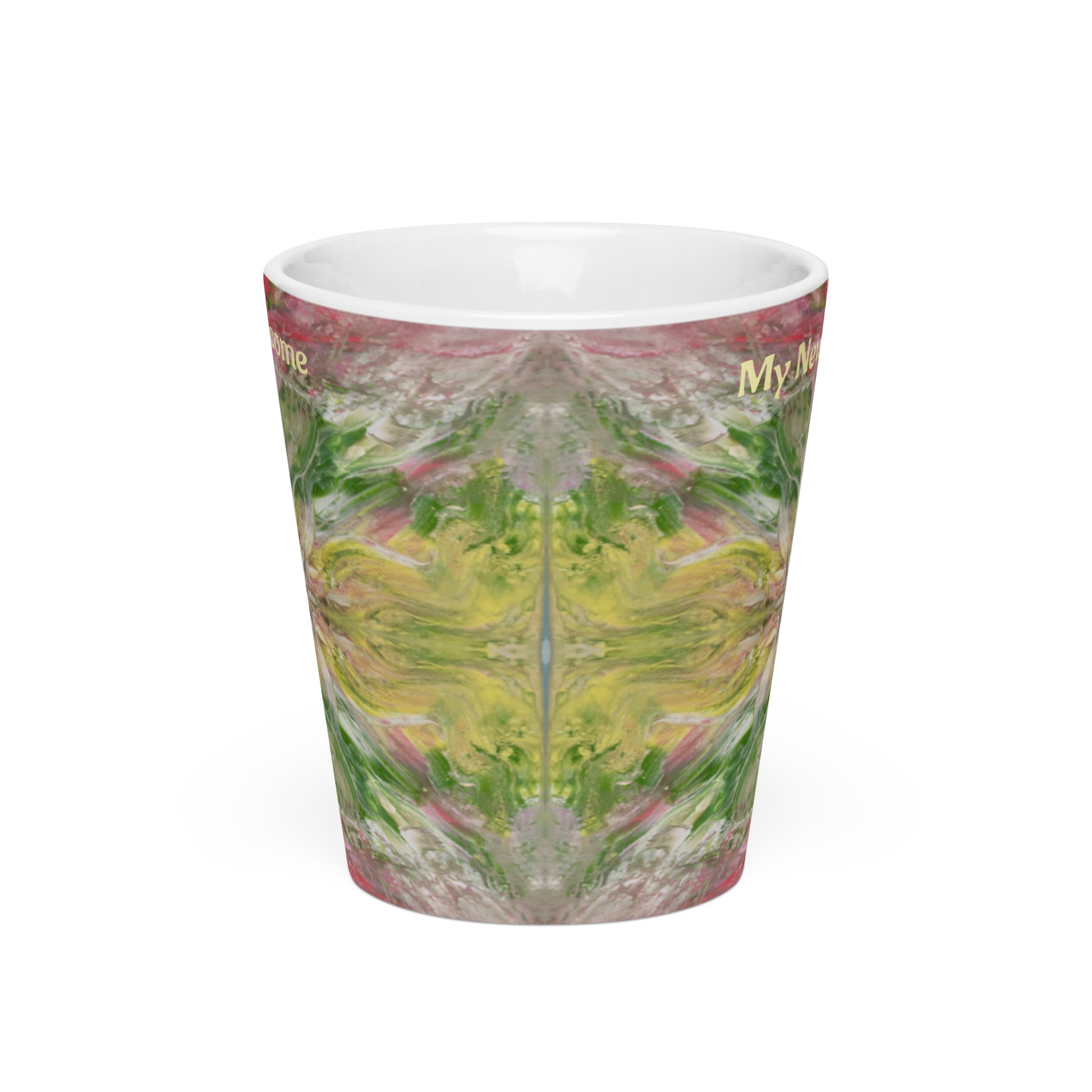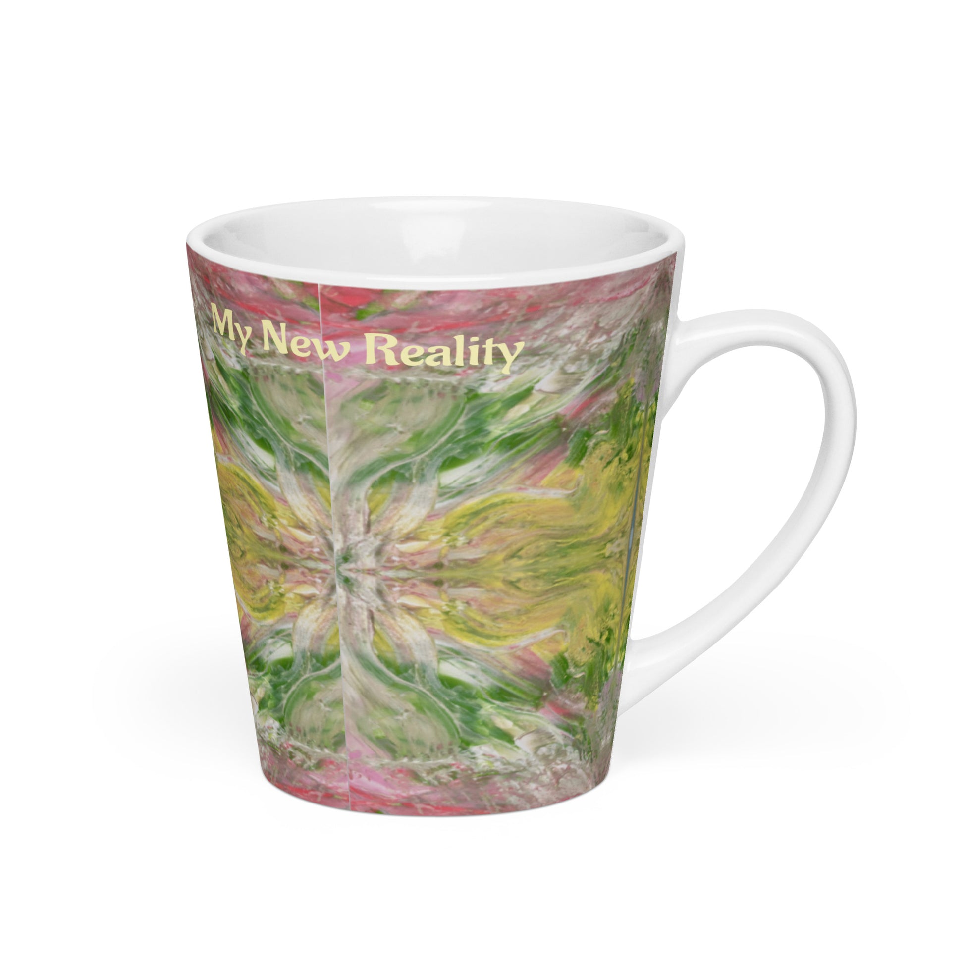 Latte mug, I welcome my new reality, channelled, light encoded design, activate your drink, robin, swan