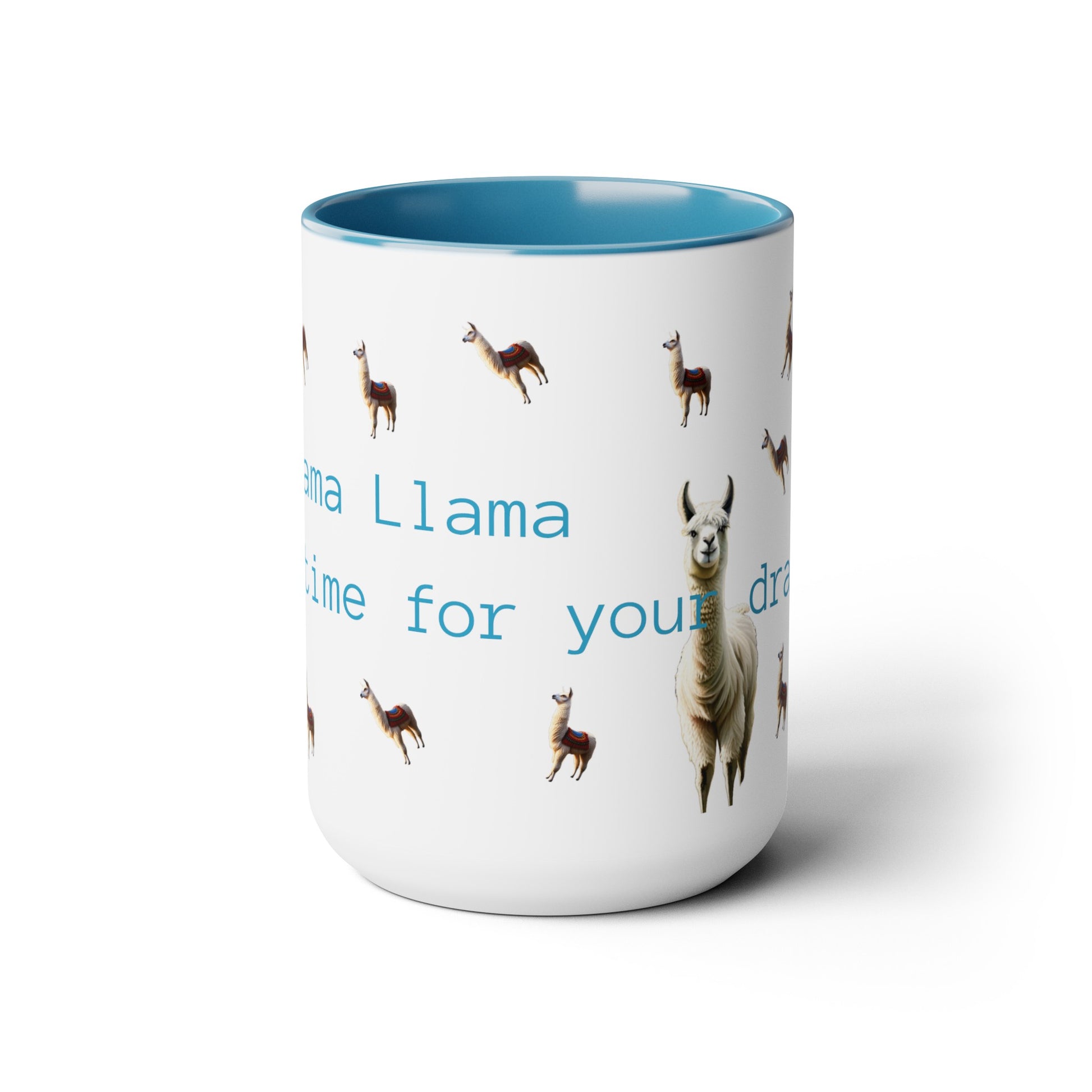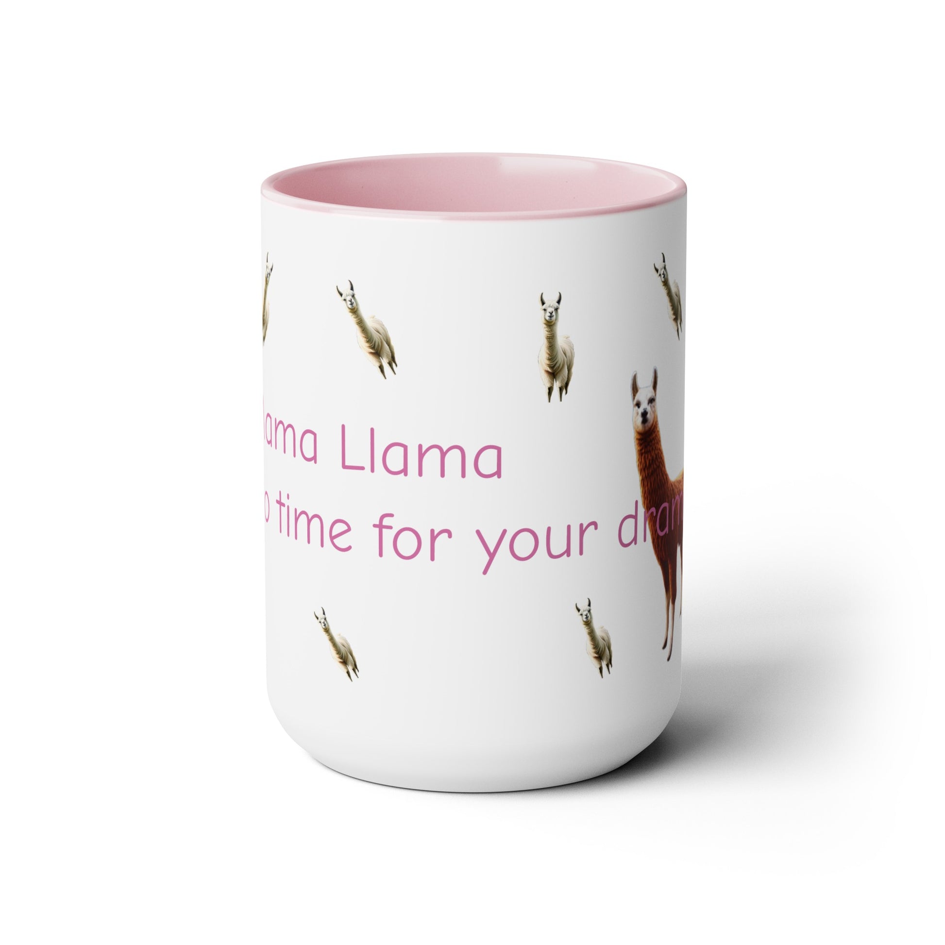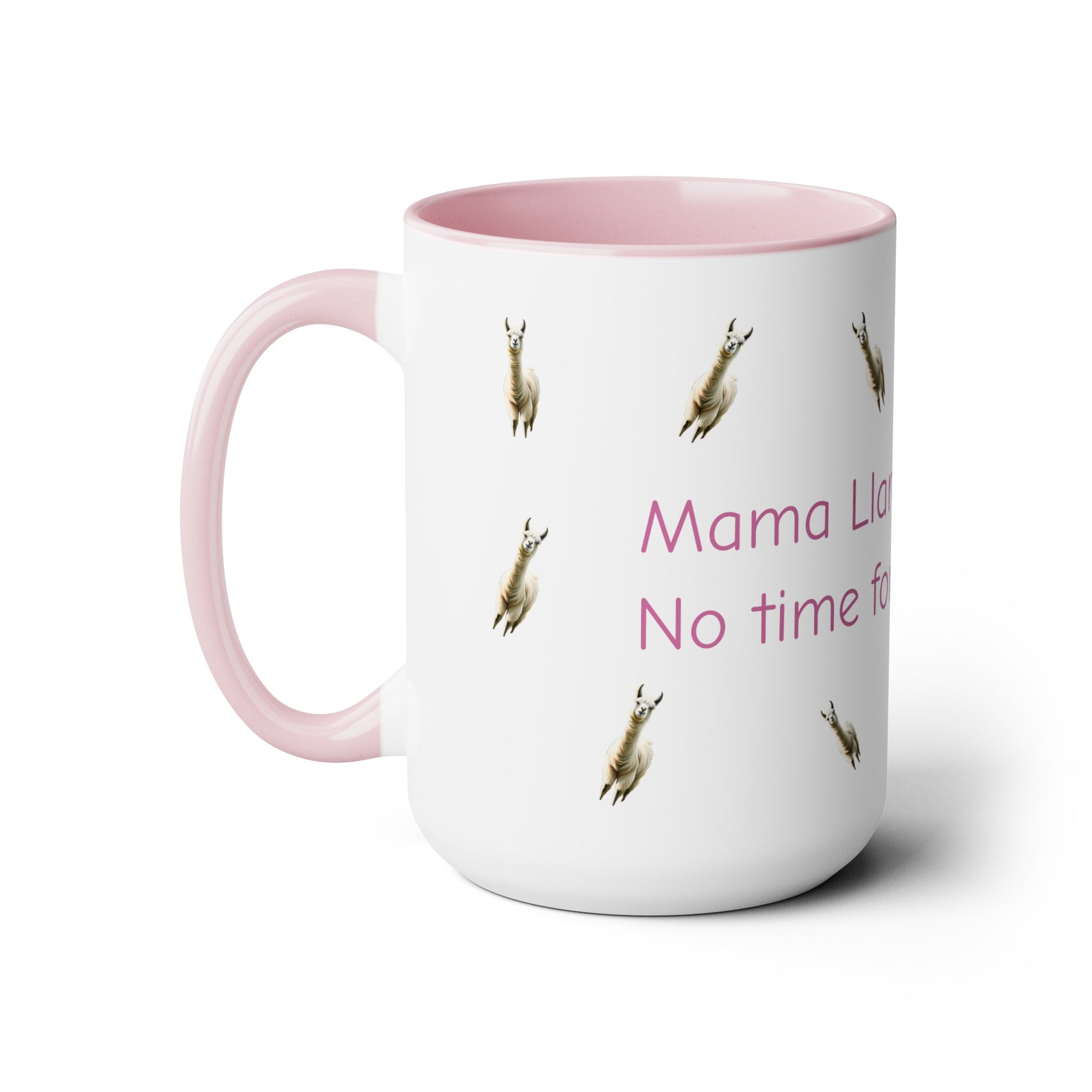 Mama Llama, no time for drama Two-Tone Coffee Mugs, 15oz, gift for mom, llama, choice of colour, pink, blue