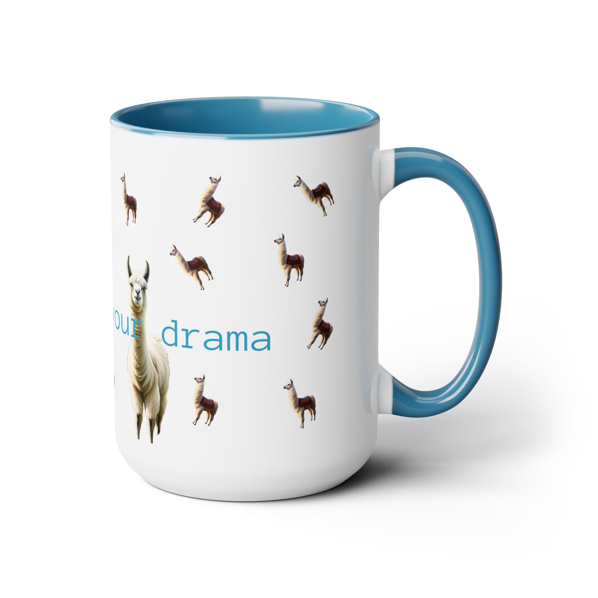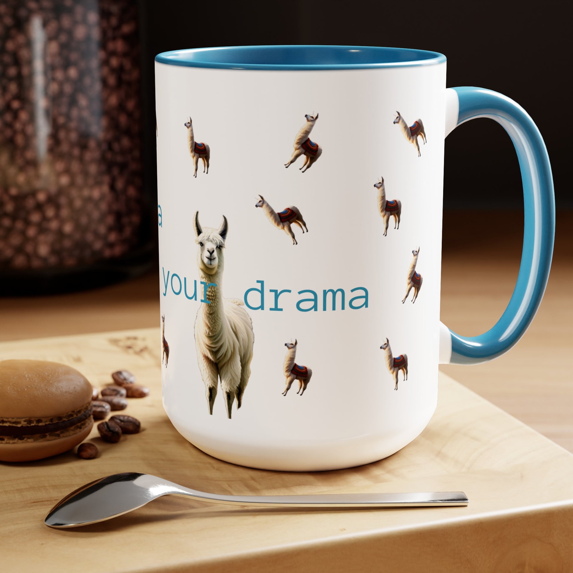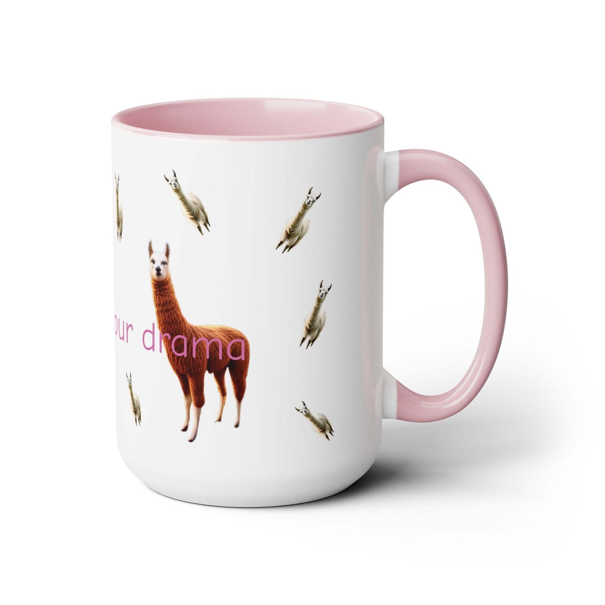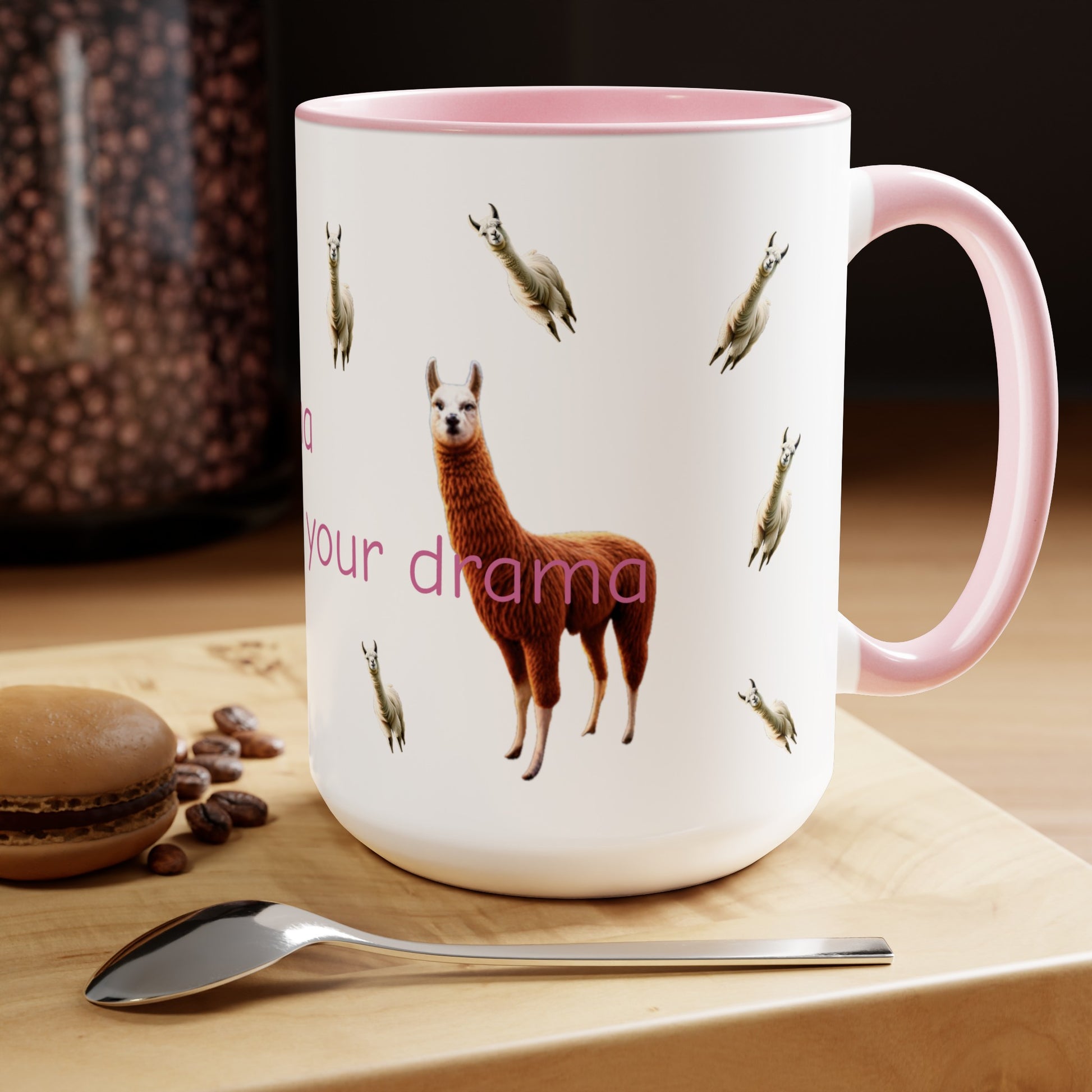 Mama Llama, no time for drama Two-Tone Coffee Mugs, 15oz, gift for mom, llama, choice of colour, pink, blue