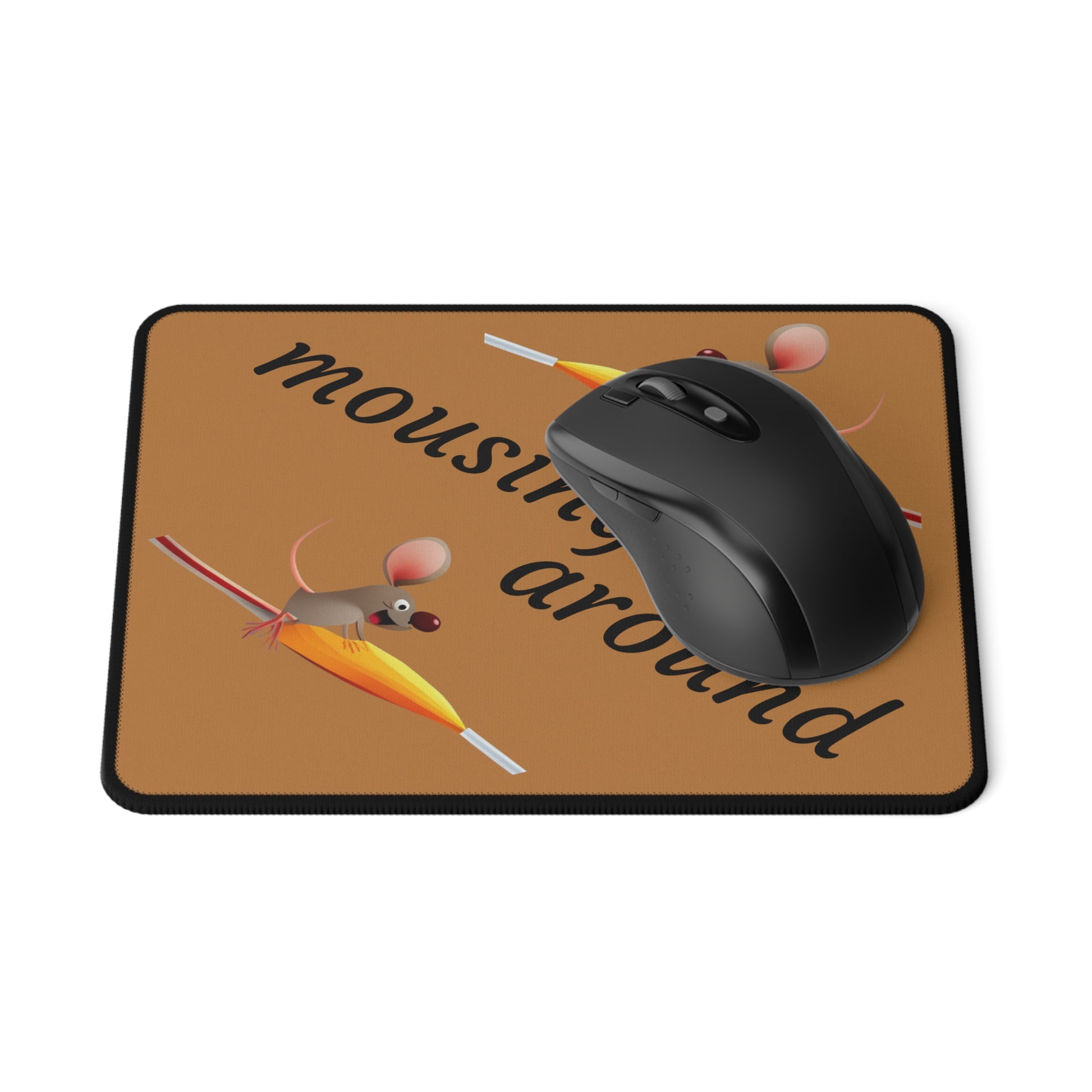 Mousing around Non-Slip Mouse Pad, Uk, Us, Aus, mouse, brown, yellow, unisex, home, office, gaming