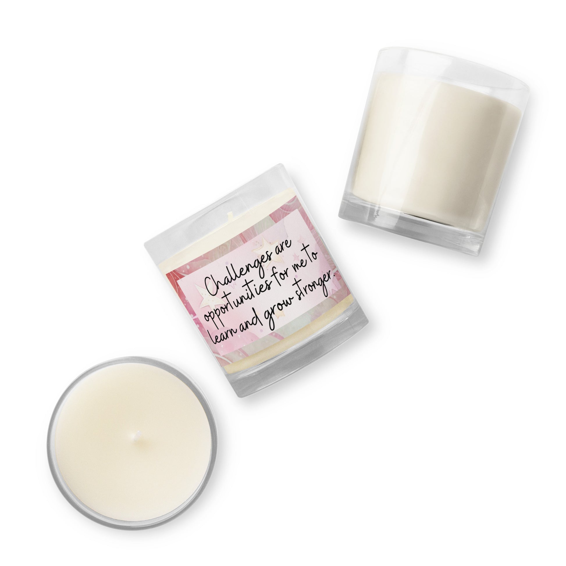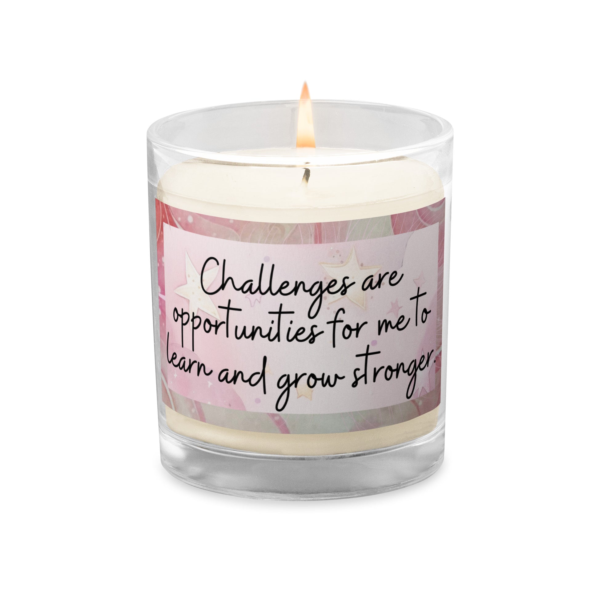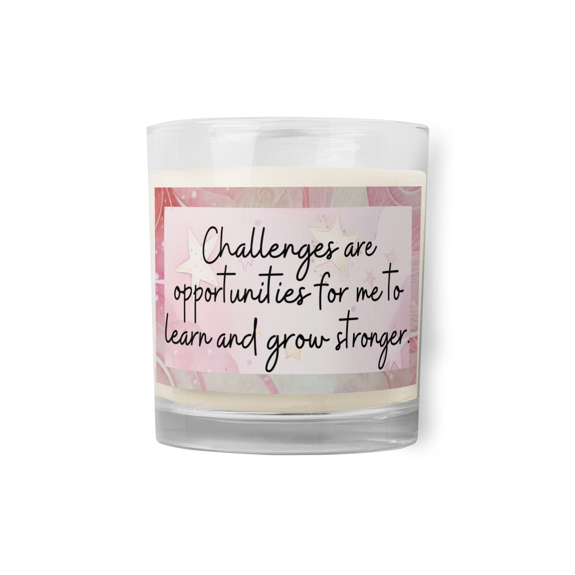 Positivity Affirmation Glass jar soy wax candle, Challenges are opportunities for me to learn and grow stronger, pink, moon, stars, night, sky