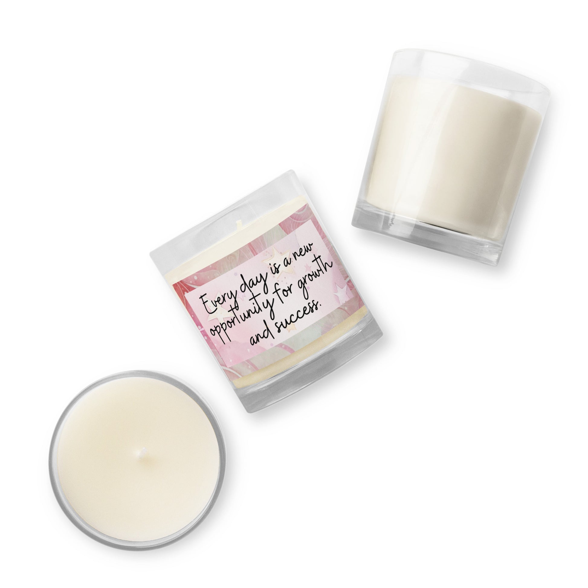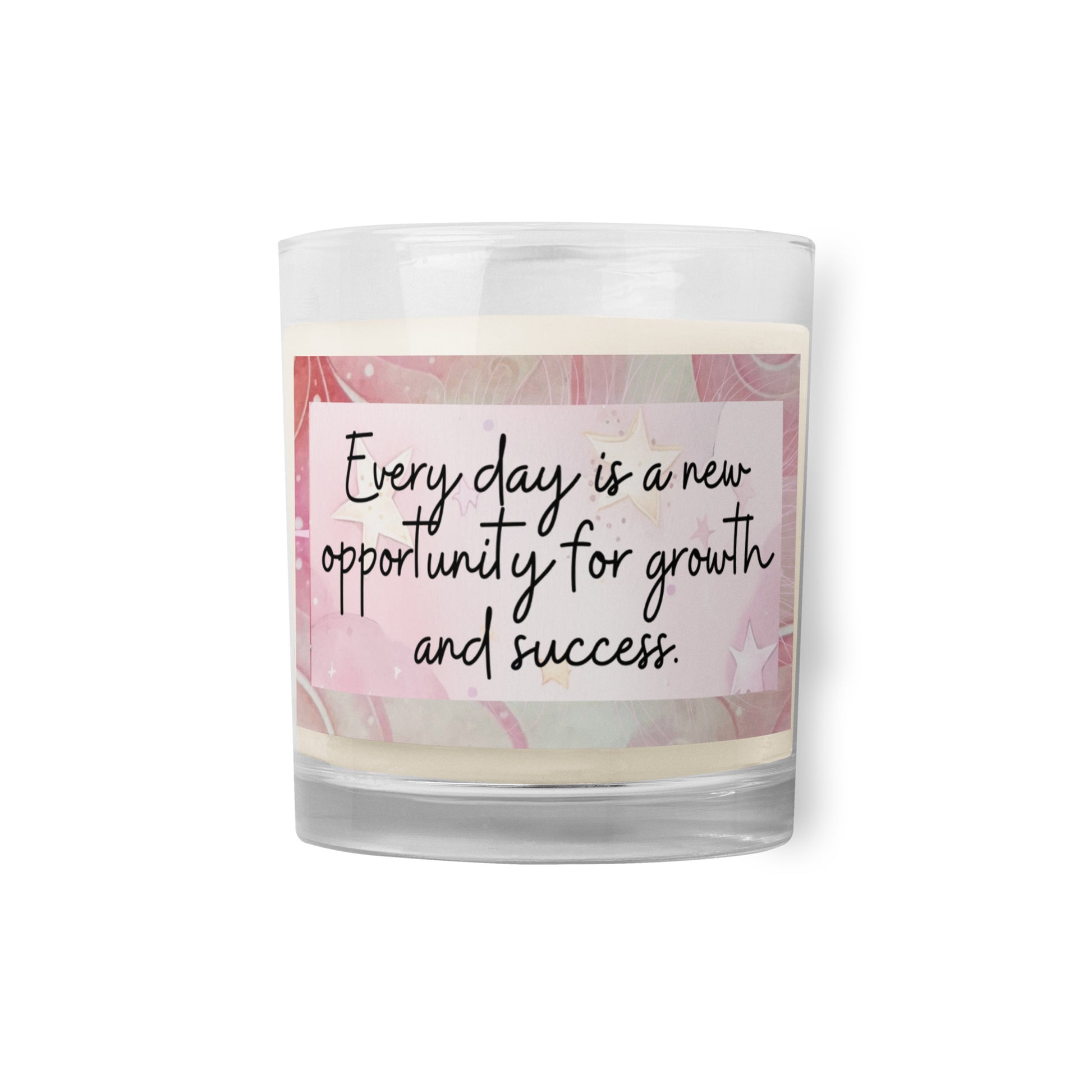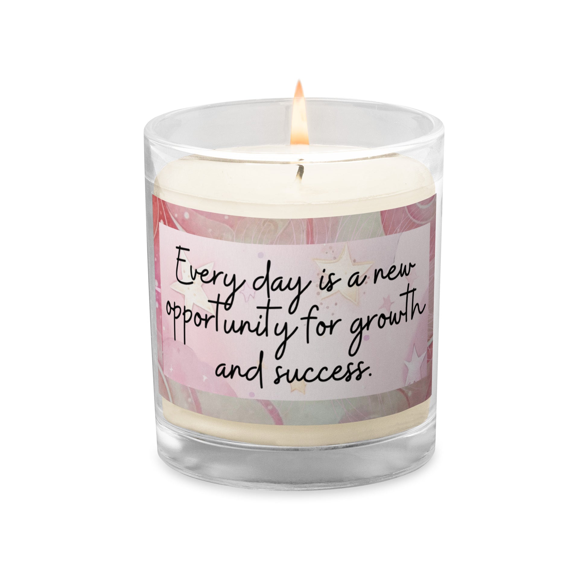 Positivity Affirmation Glass jar soy wax candle, Every day is a new opportunity for growth and success, pink, moon, stars, night, sky