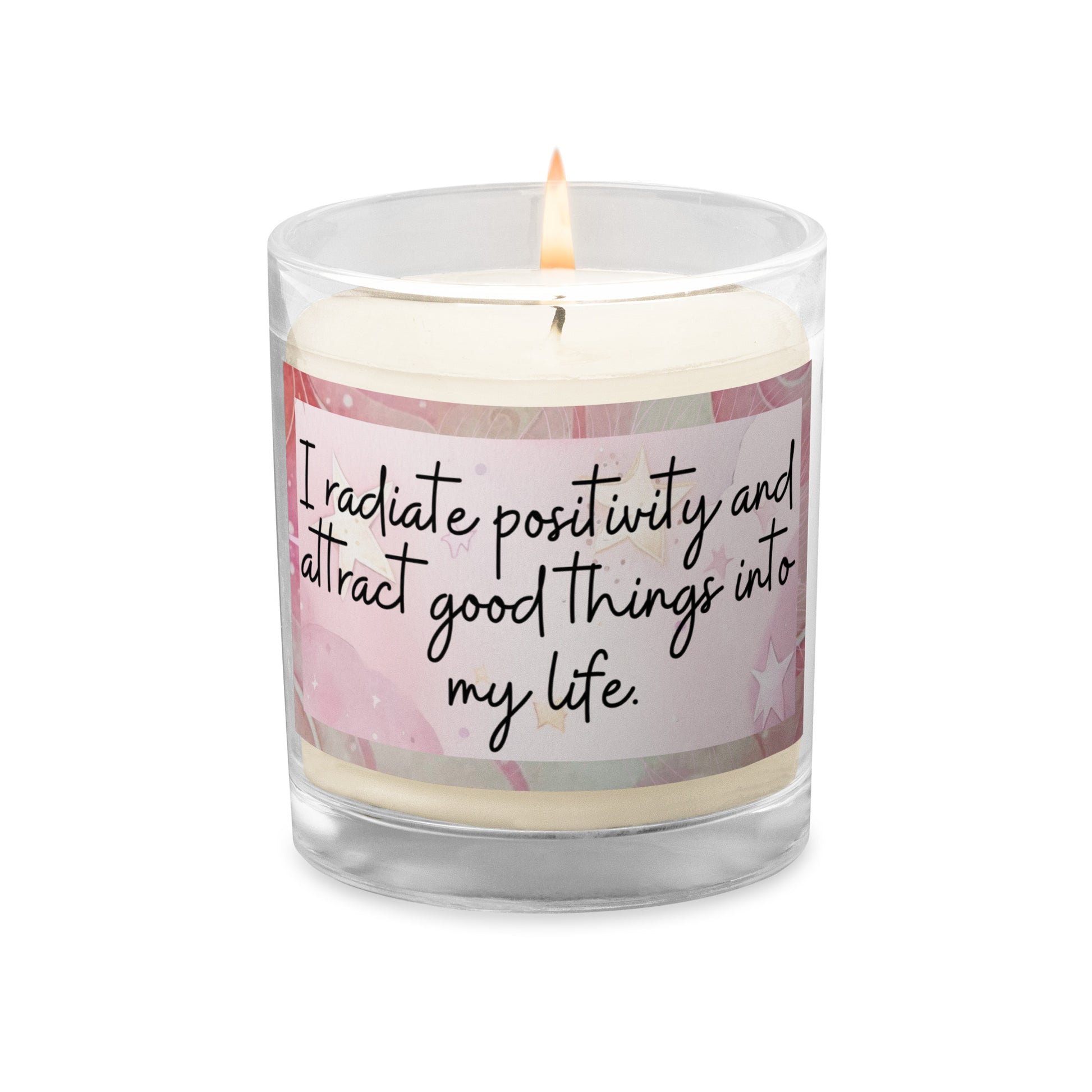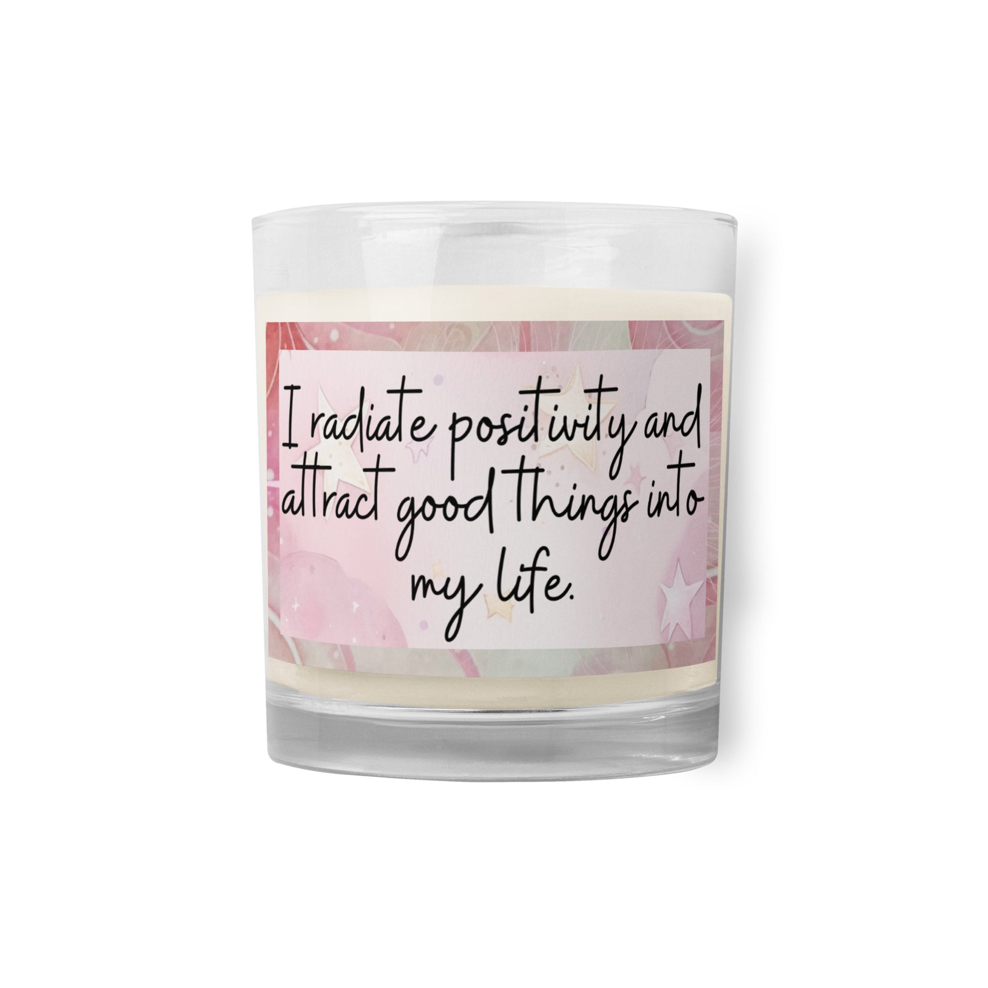 Positivity Affirmation Glass jar soy wax candle, I radiate positivity and attract good things into my life, pink, moon, stars, night, sky