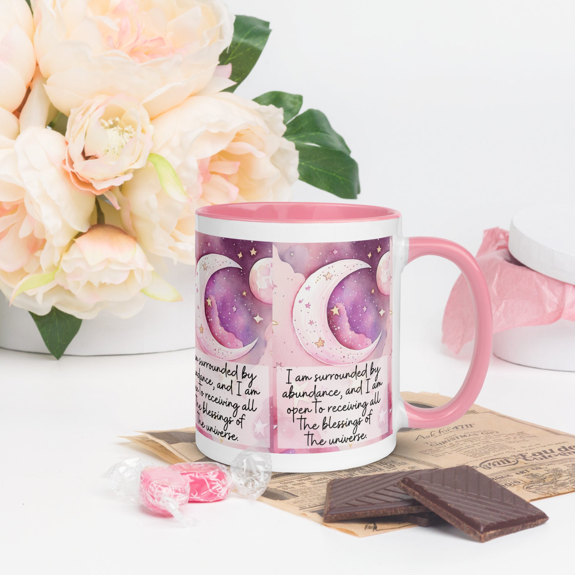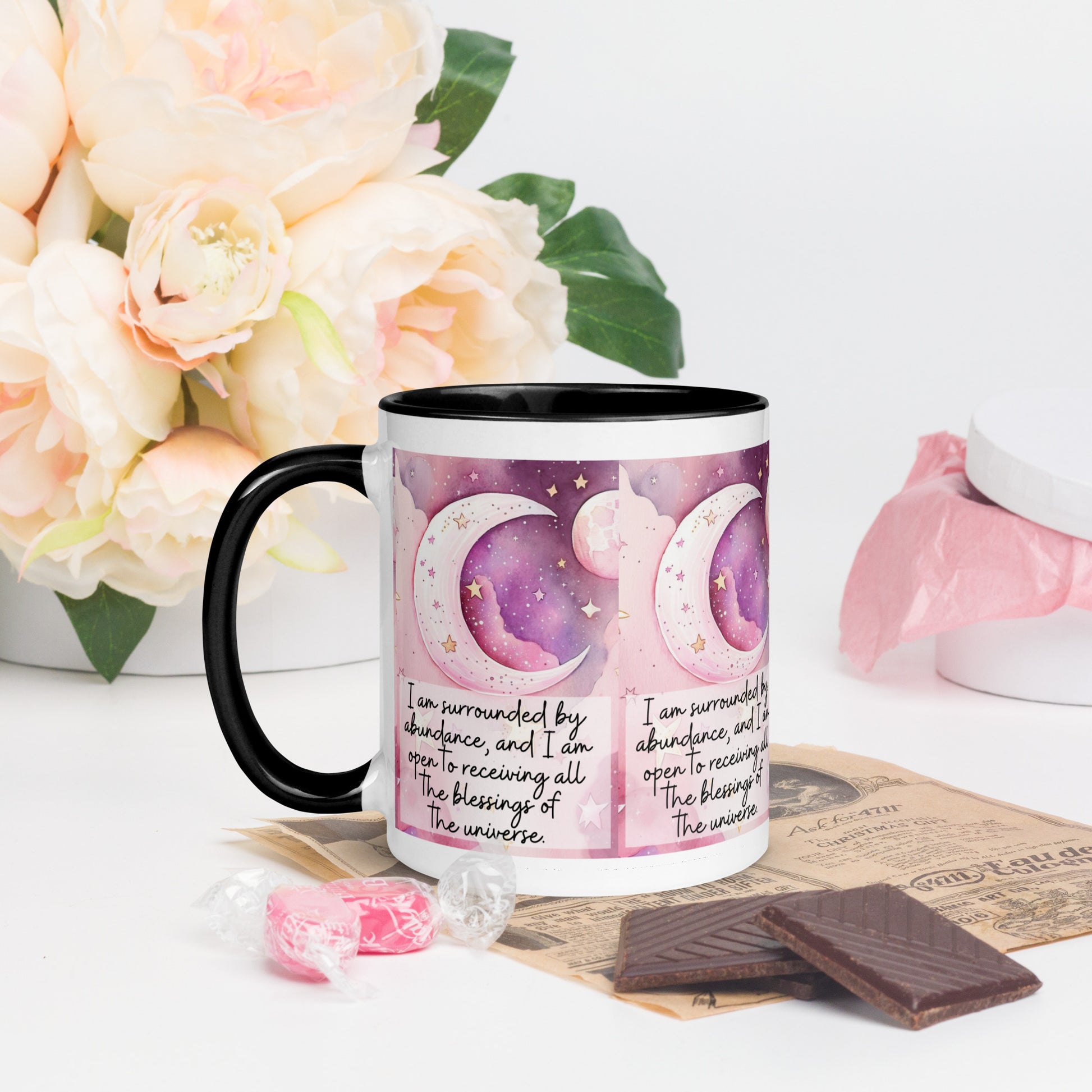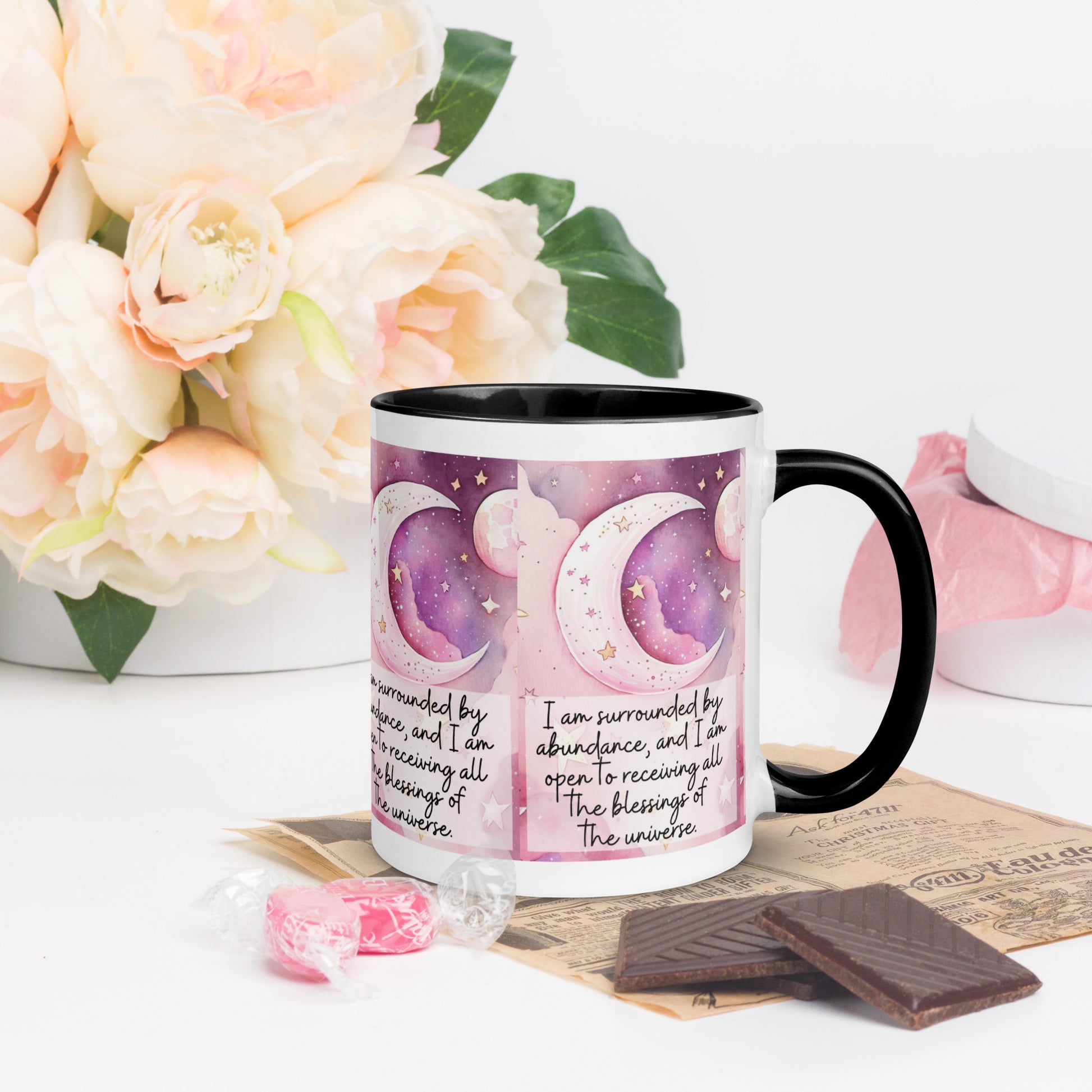 Positivity Affirmation Mug with choice of Color Inside, I am confident, pink moon, starts, night sky
