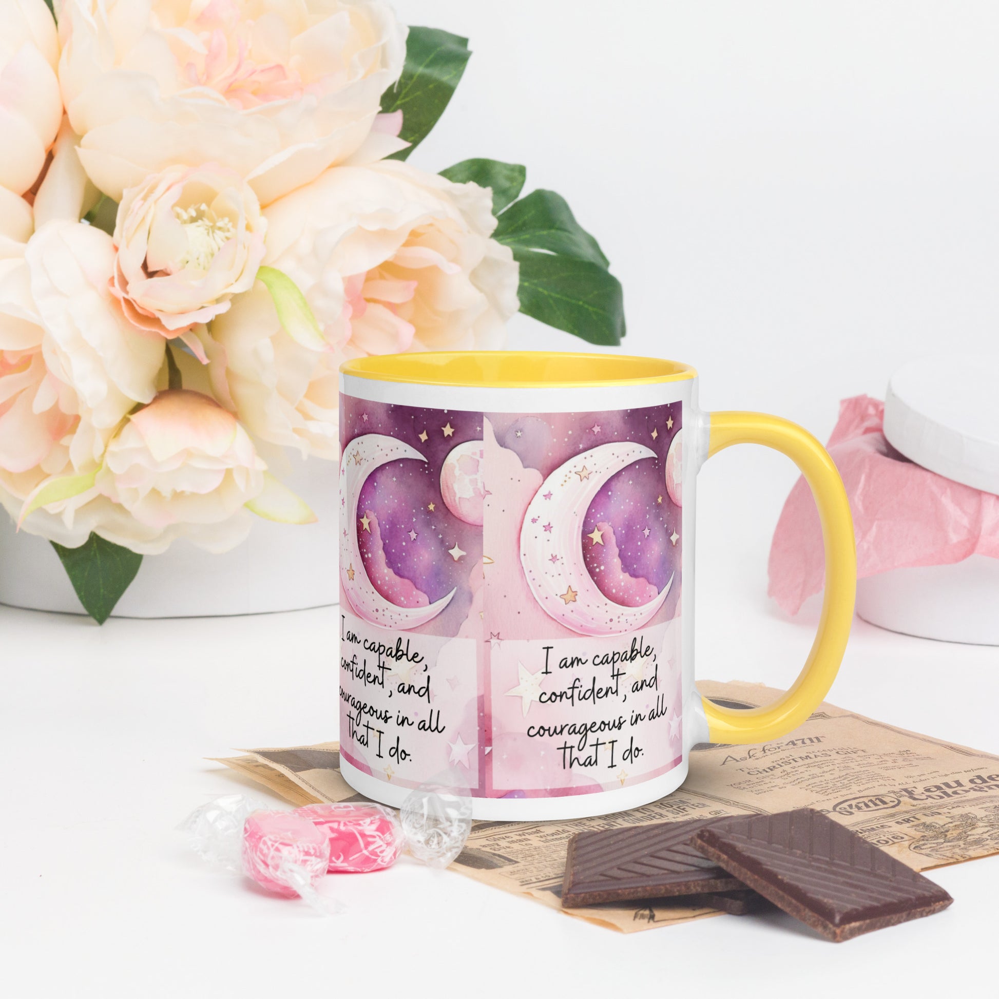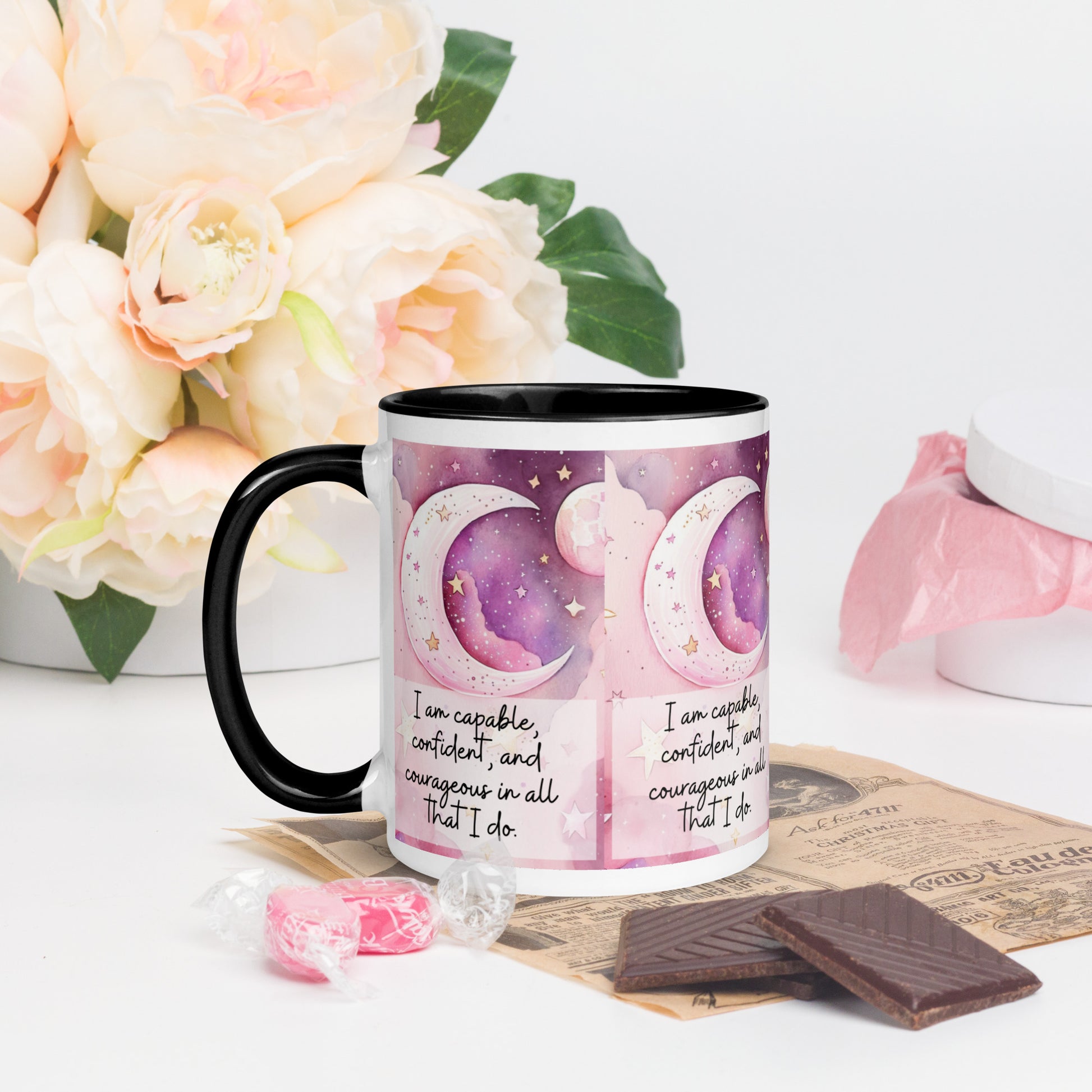 Positivity Affirmation Mug with Color Inside, I am capable, confident, and courageous in all that I do ,stars, night sky, 11oz