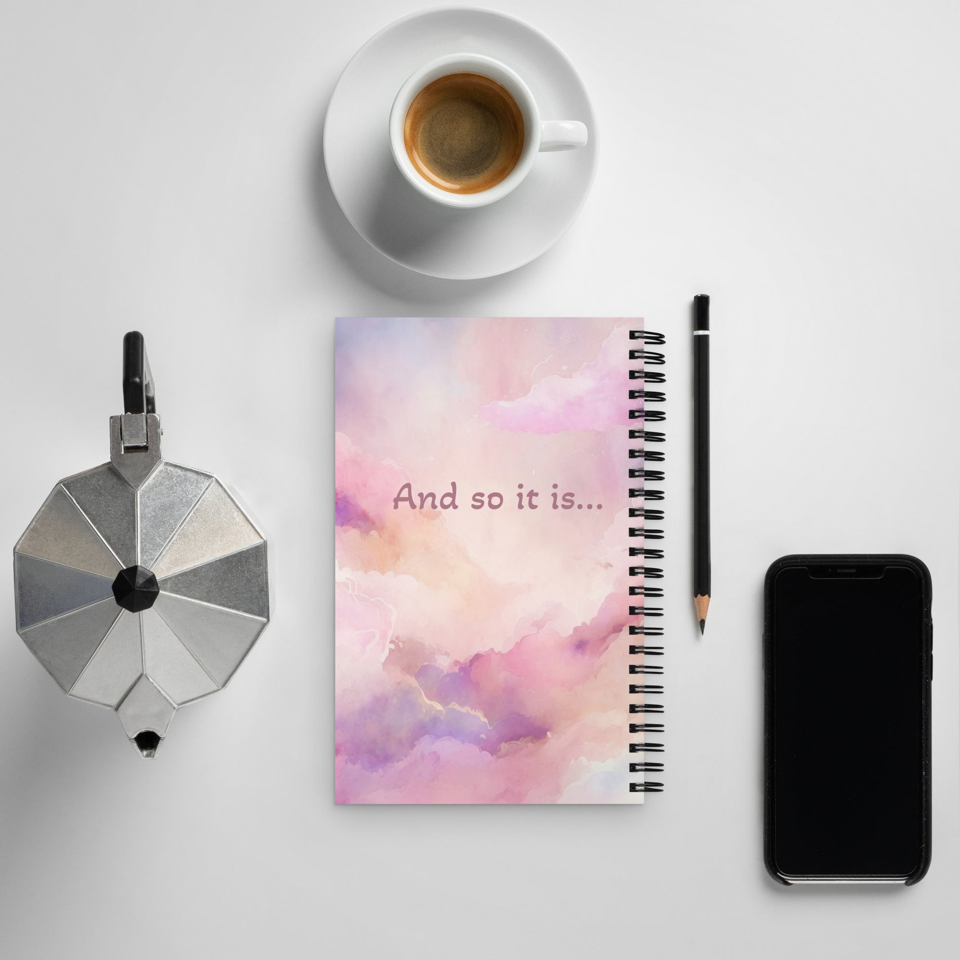 A good notebook can help you with motivation to take more notes, write down ideas, or list future dreams. This custom wire-bound notebook will be a great daily companion whenever you need to put your thoughts down on paper! Matching positivity affirmations available as spiral notebooks, candles, card decks, mugs and journals. 30 affirmations to choose from. Soft pink, relaxing images to inspire your positive mood.