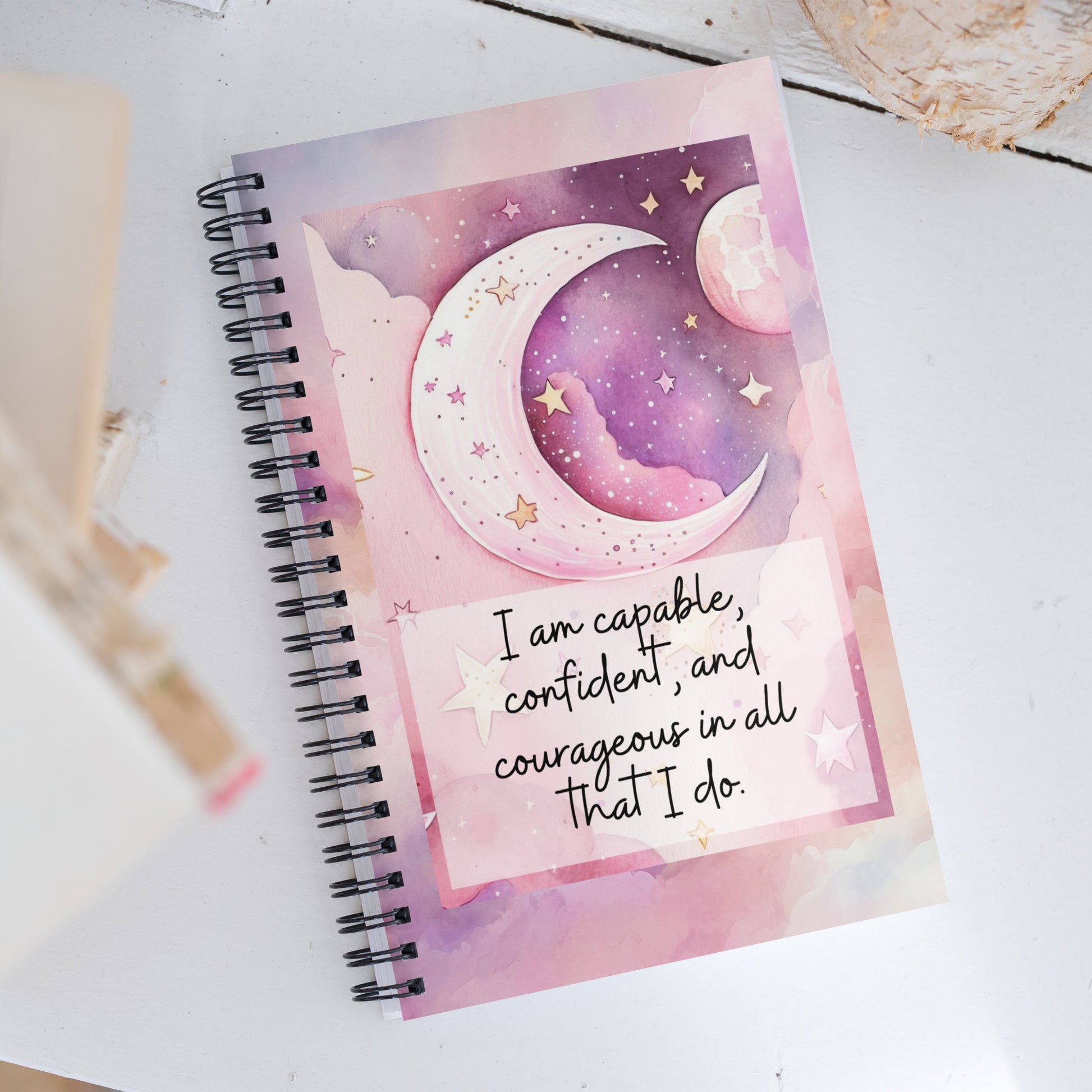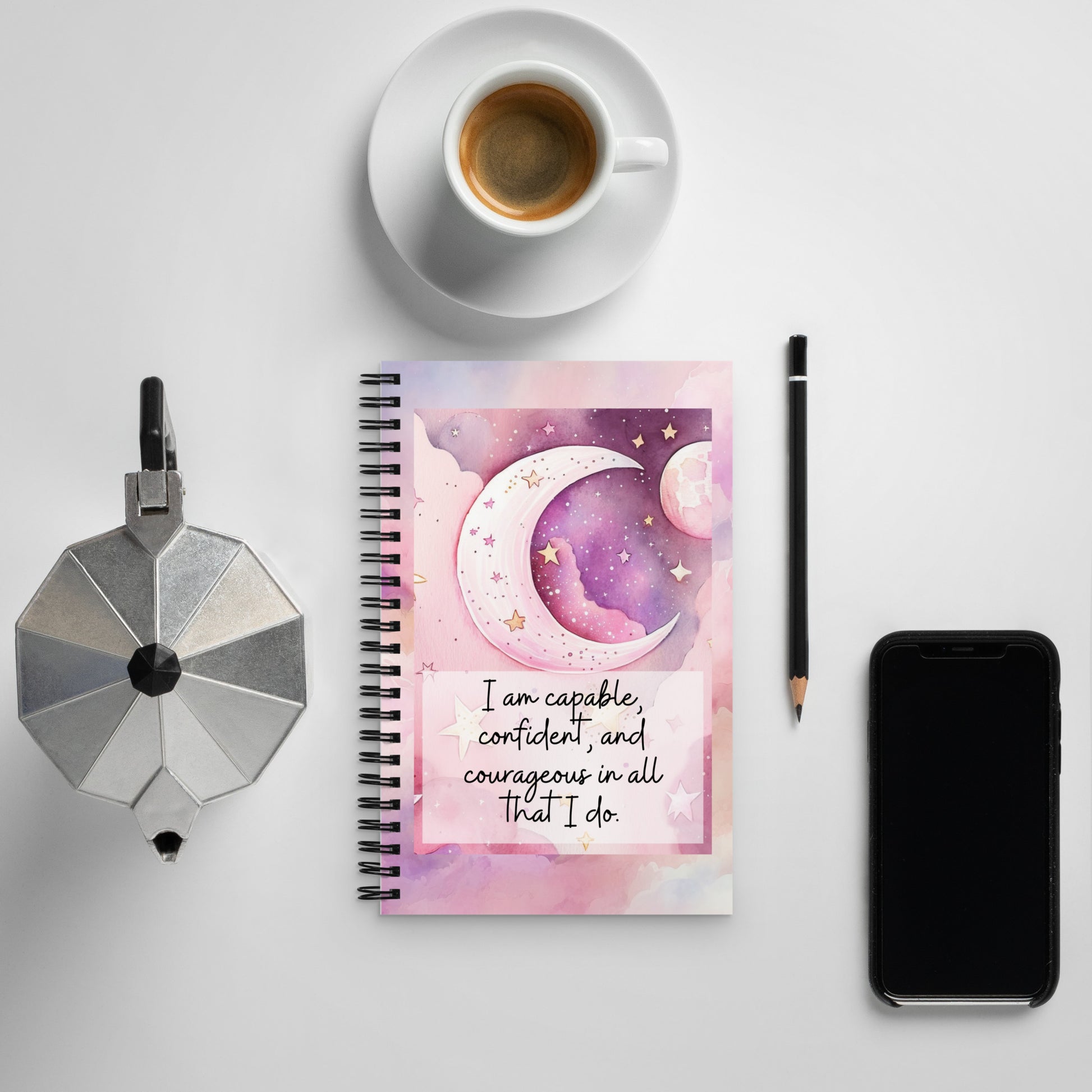 Positivity Affirmation Spiral notebook, I am capable, confident and courageous in all that I do, night, sky