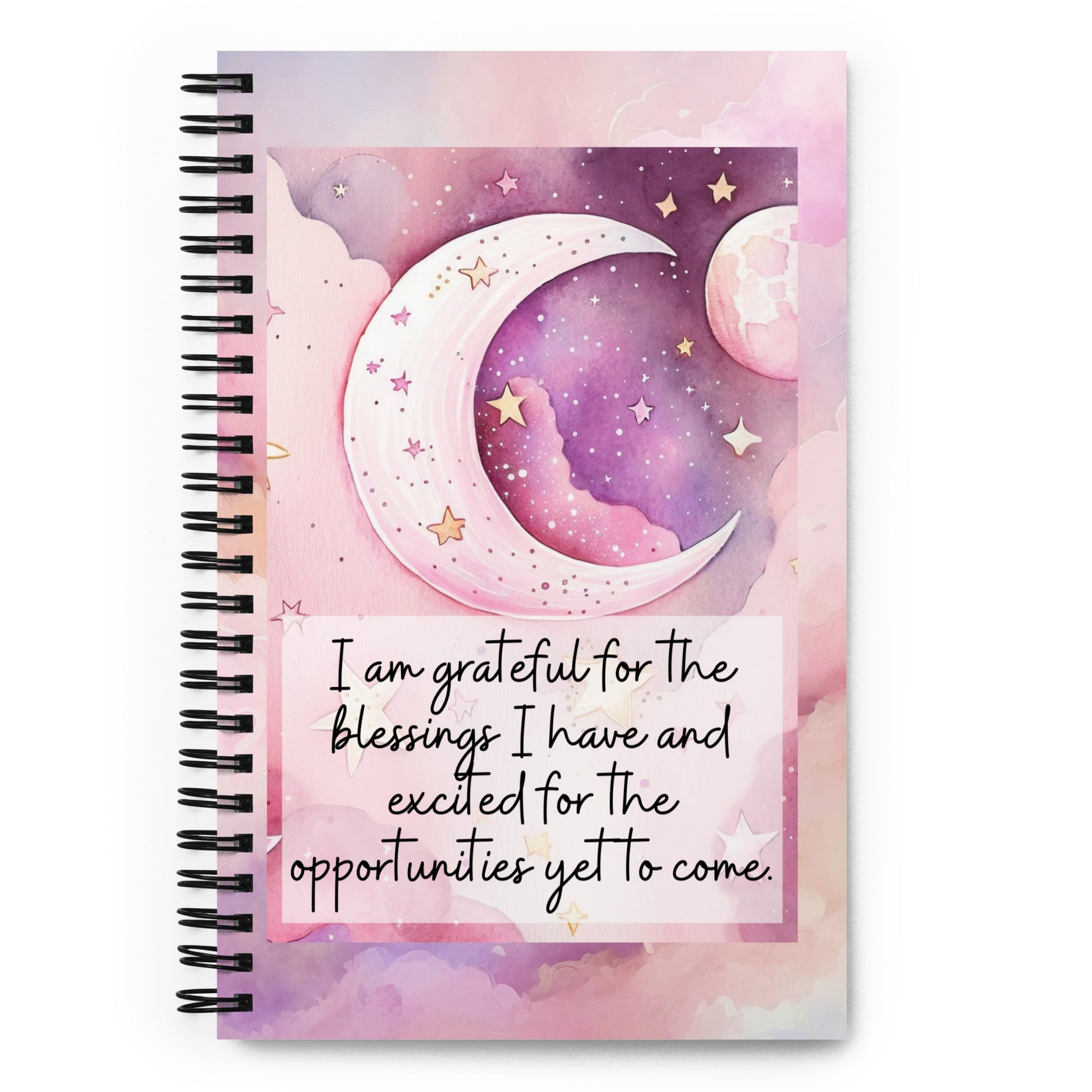Positivity Affirmation Spiral notebook, I am grateful for the blessings I have and excited for the opportunities yet to come, night, sky