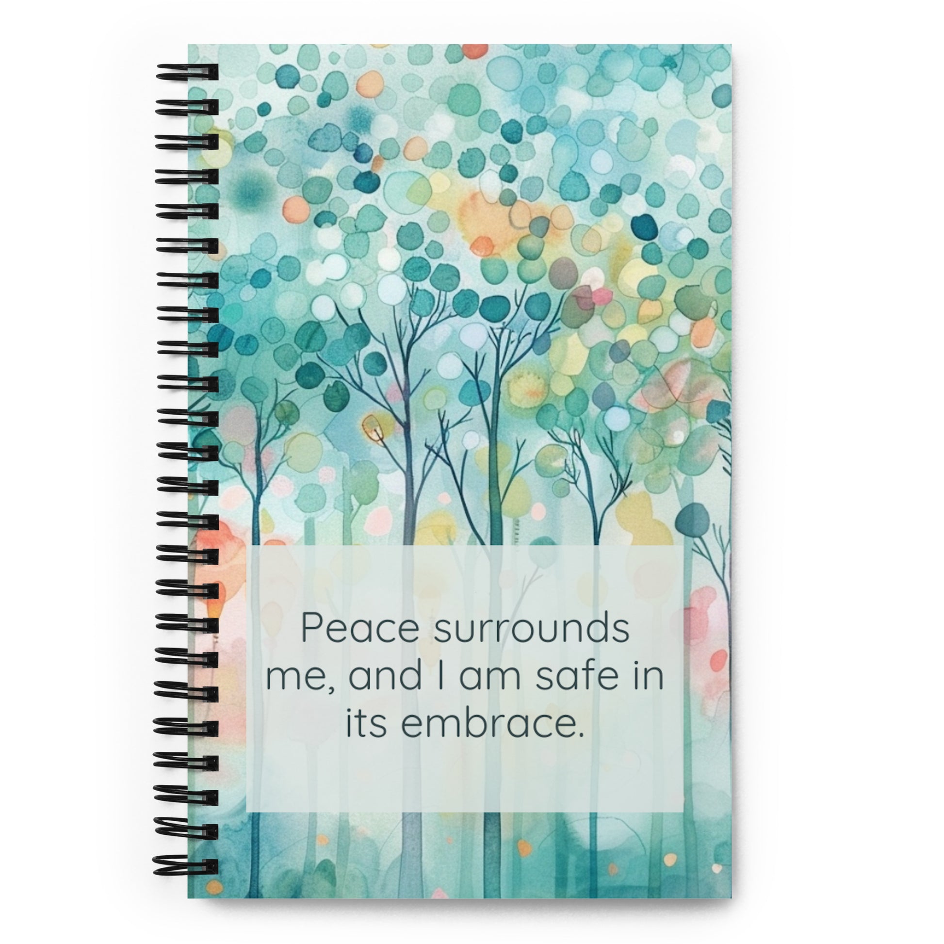 Peaceful Intentions Affirmation spiral notebook, "Peace surrounds me, and I am safe in its embrace.”, 140 dotted pages