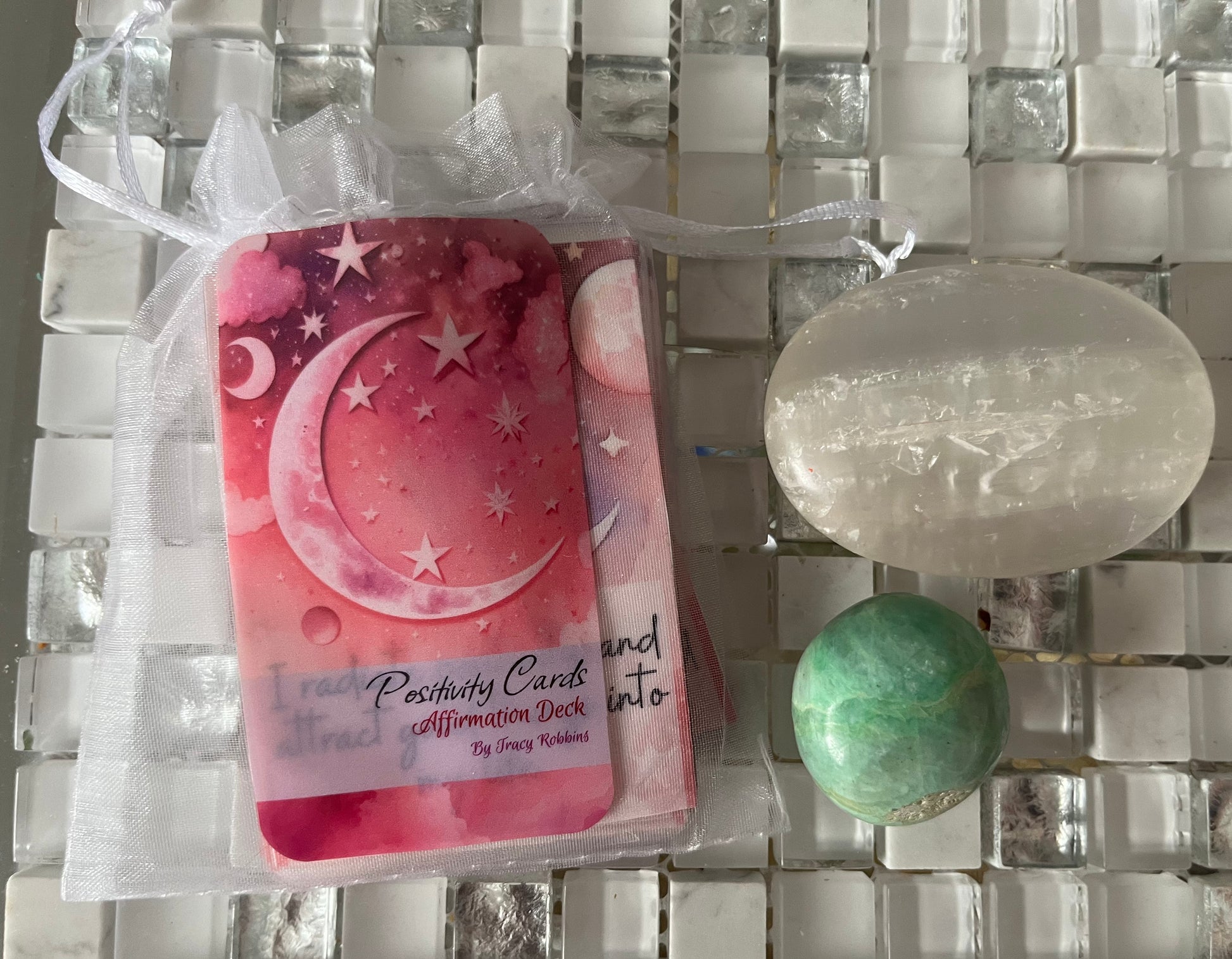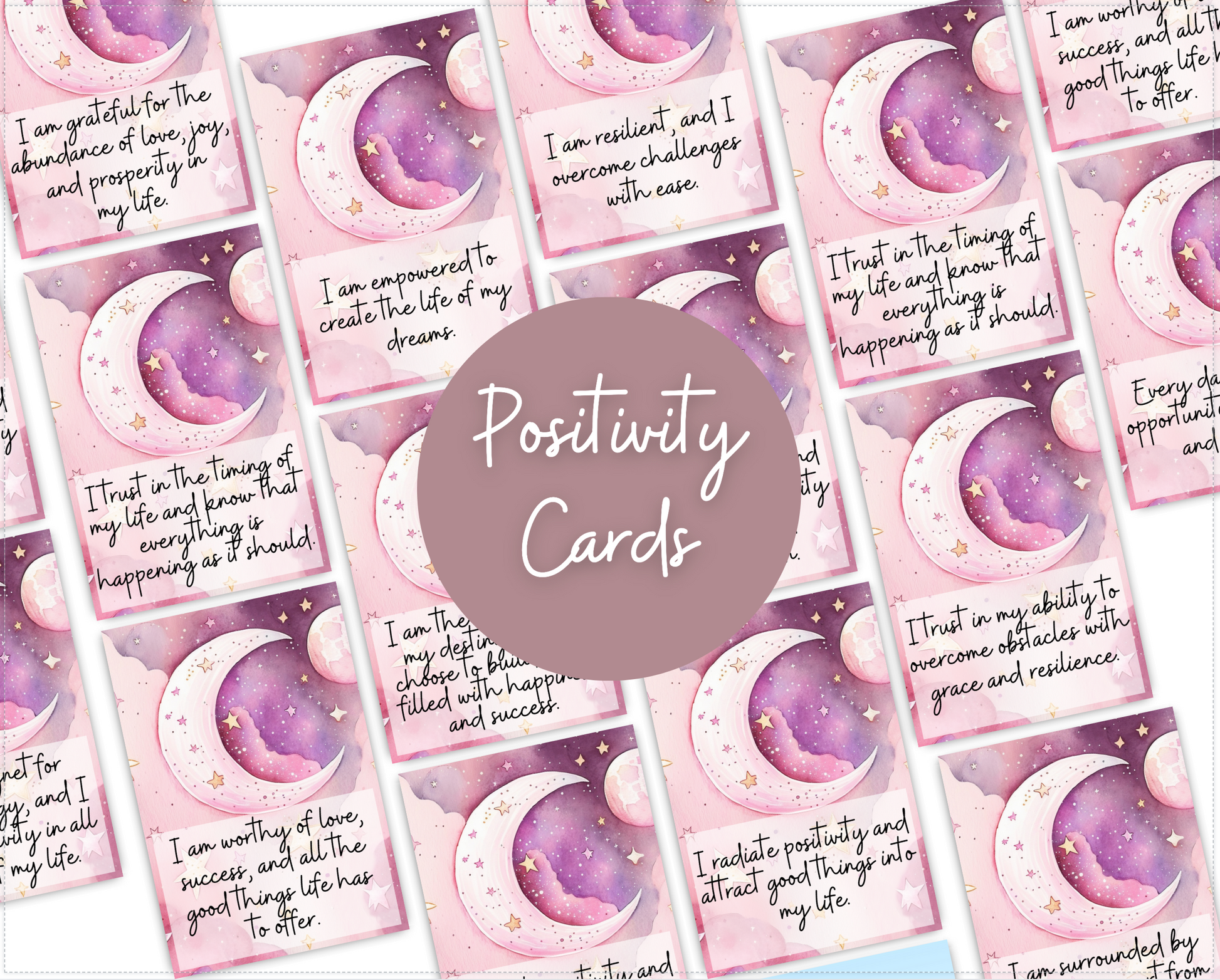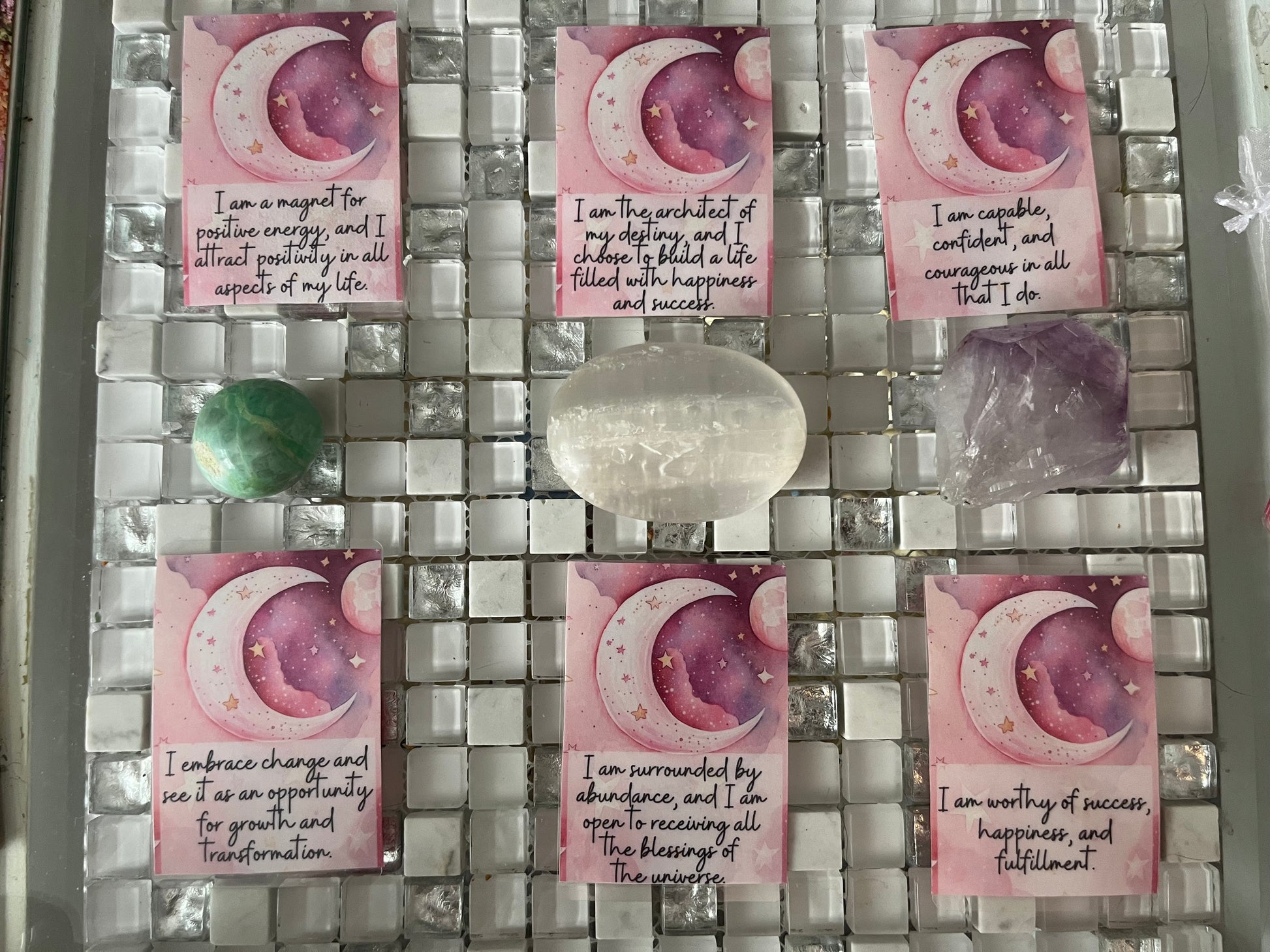 This light encoded positivity cards have uplifting words and soft soothing colors to inspire you. They are 2.5in x 3.5in which are a handy size to take with you when you leave the house or to fit nicely pinned on the fridge or a pin board.