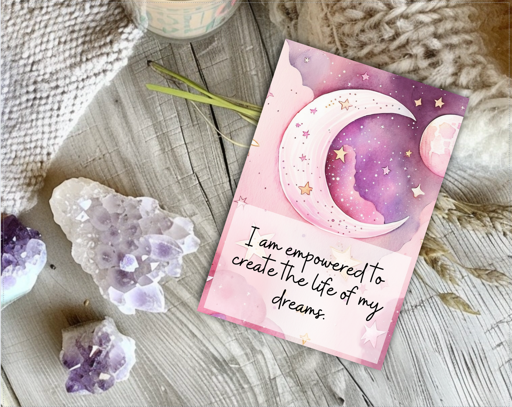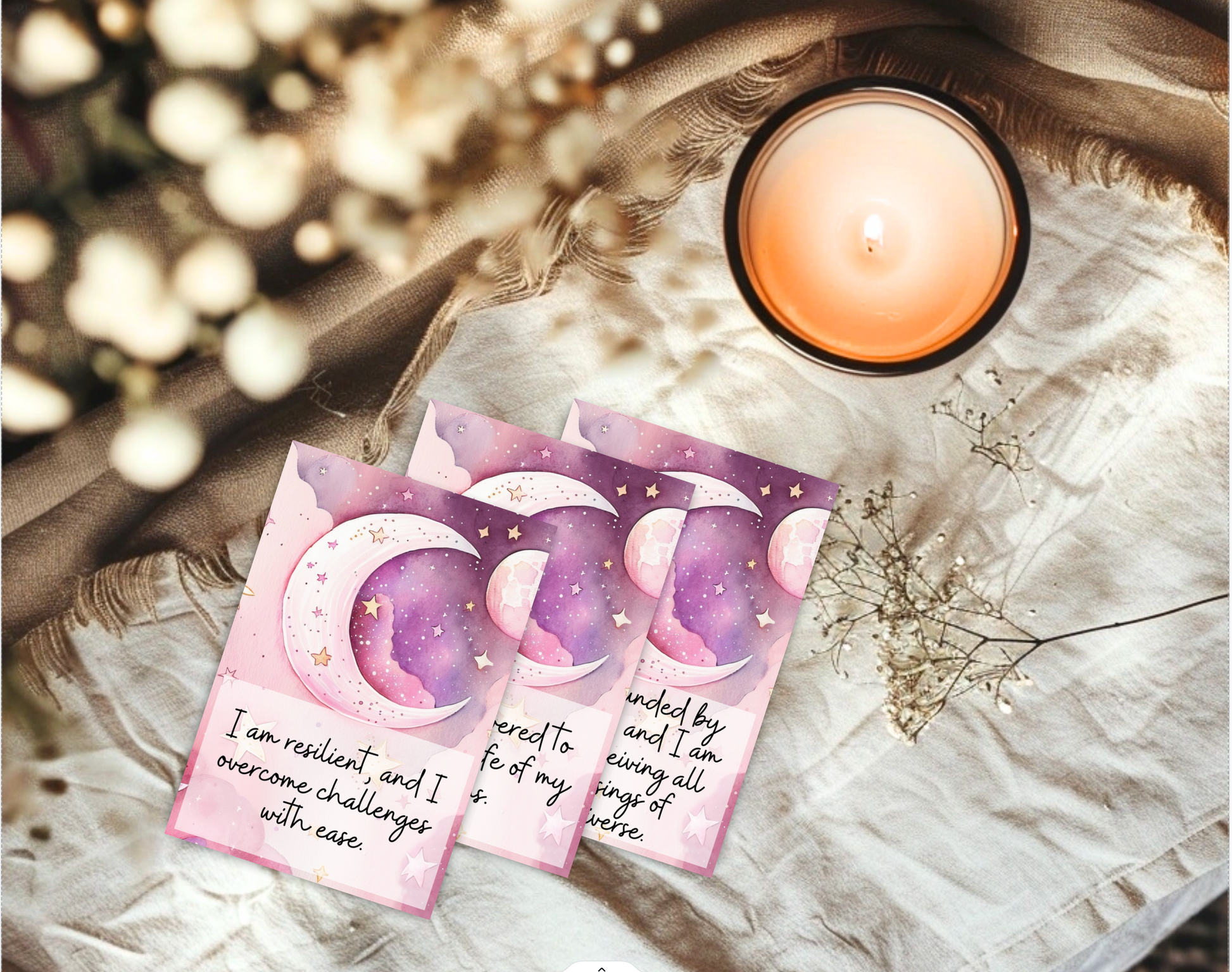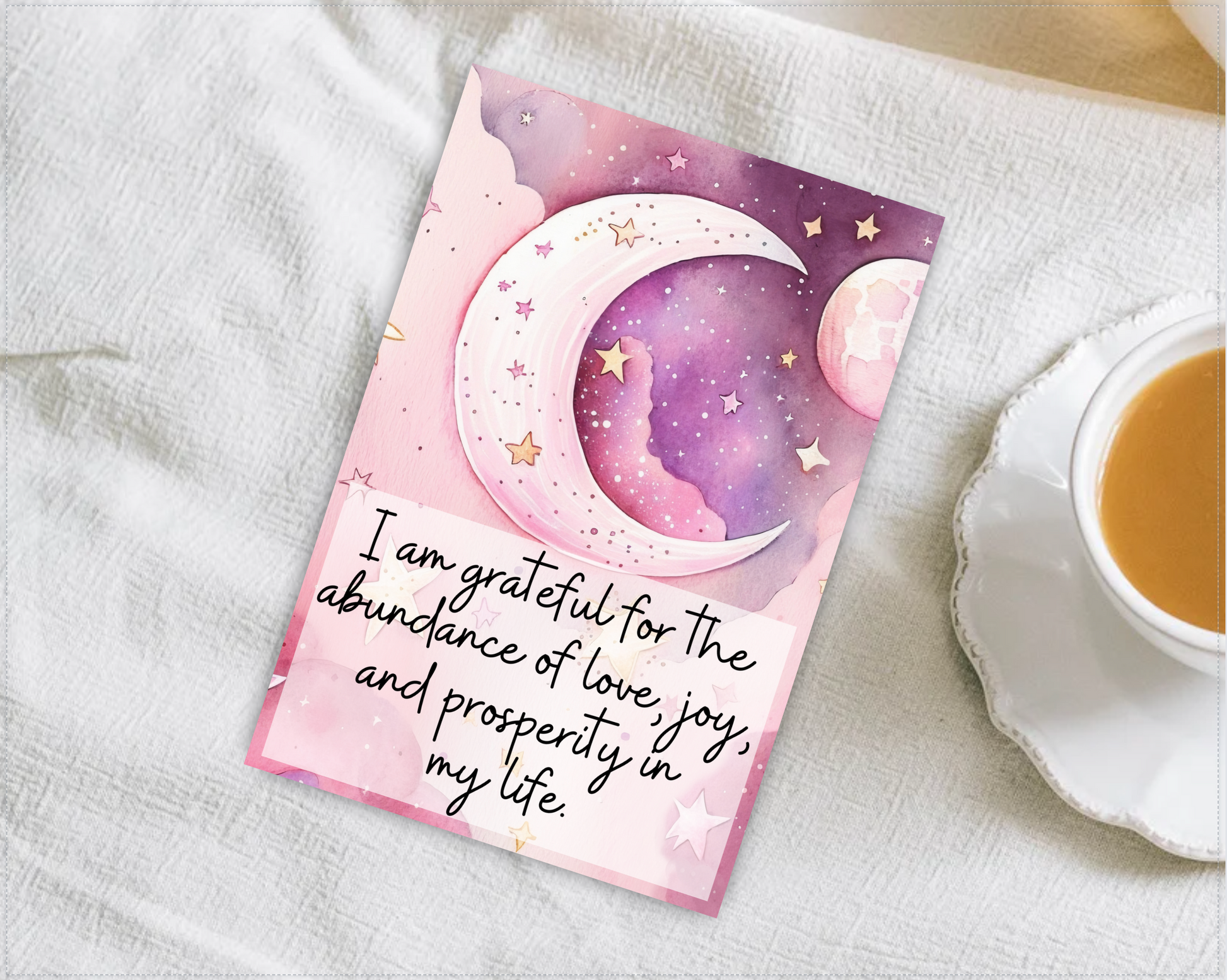 This light encoded positivity cards have uplifting words and soft soothing colors to inspire you. They are 2.5in x 3.5in which are a handy size to take with you when you leave the house or to fit nicely pinned on the fridge or a pin board.