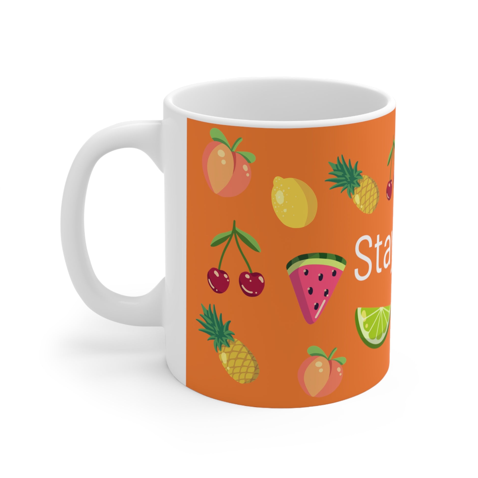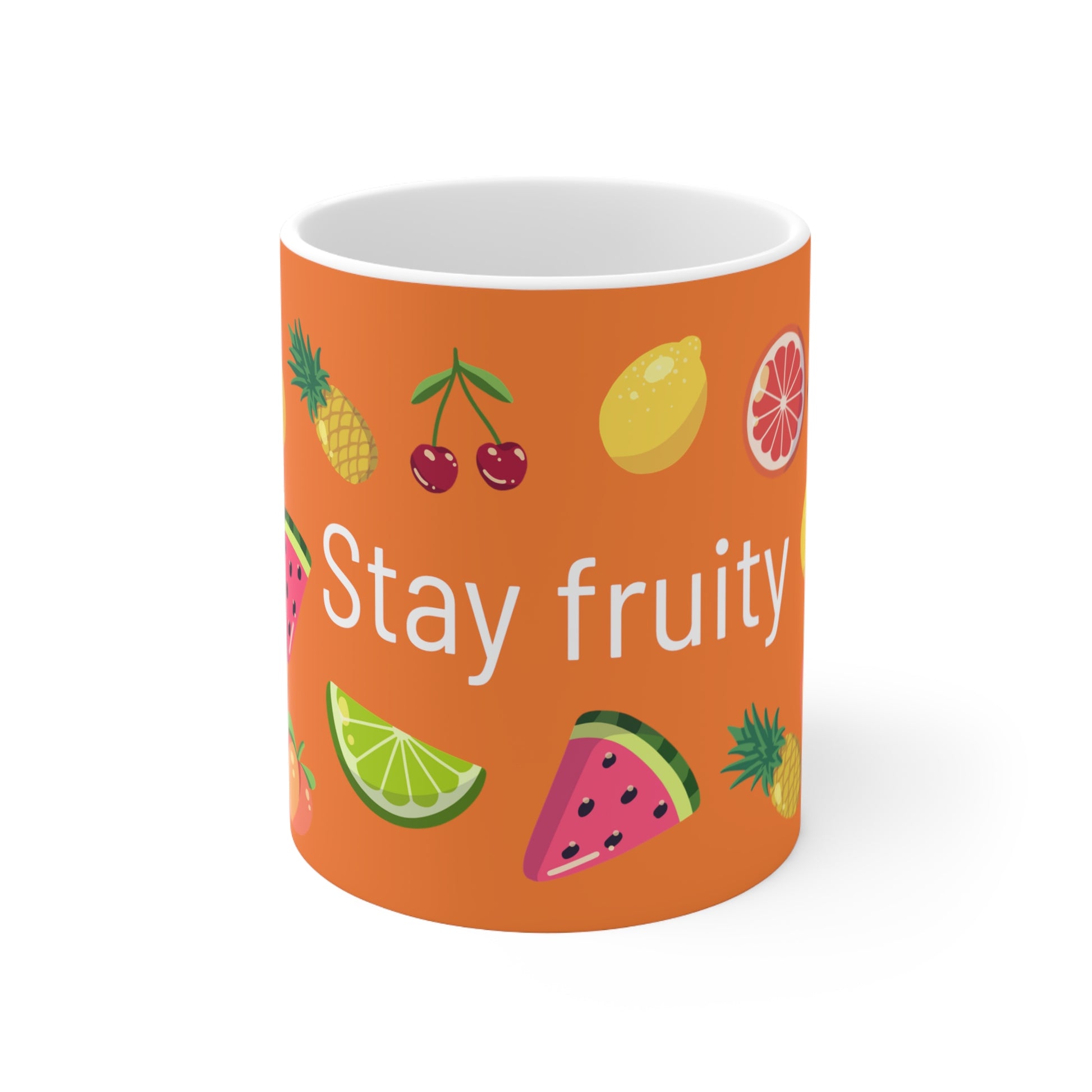Stay Fruity White Ceramic Mug, 11oz, UK, US, AUS, fruits, summer, orange, coffee, unisex, for him/her