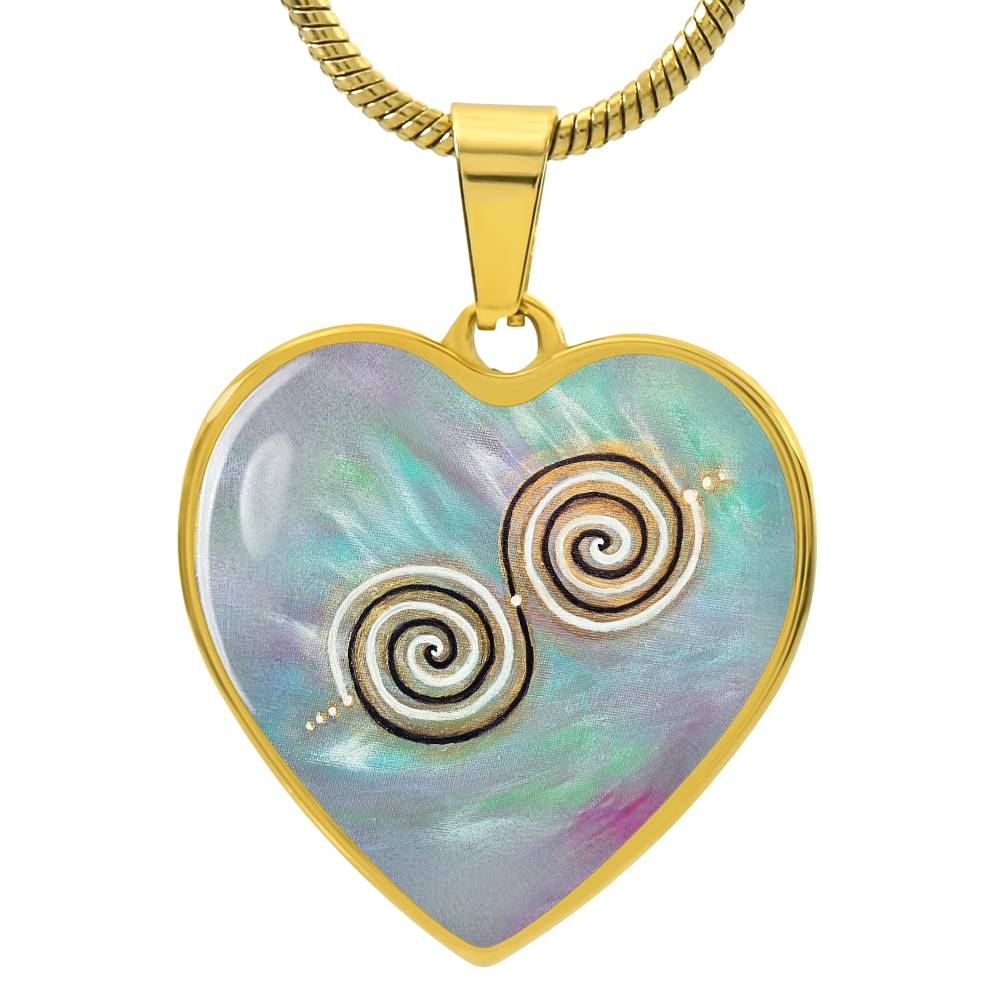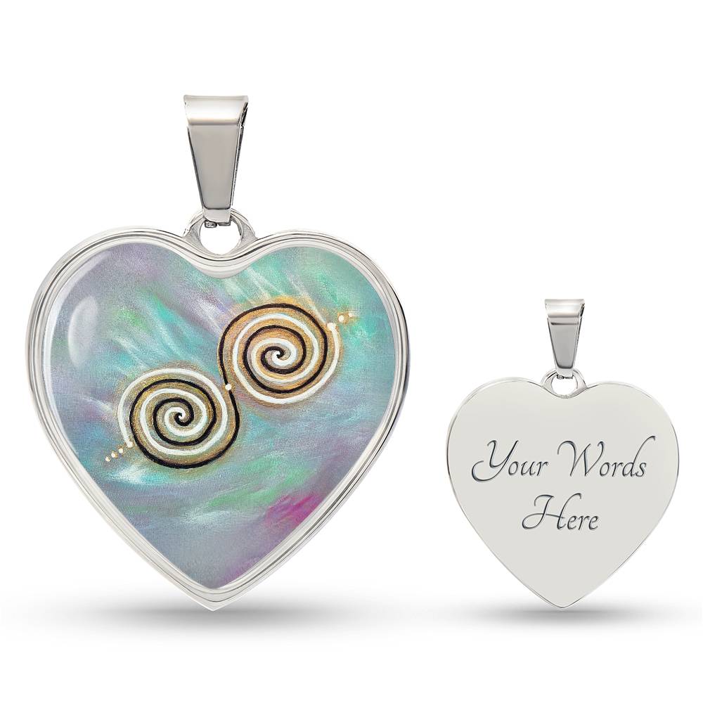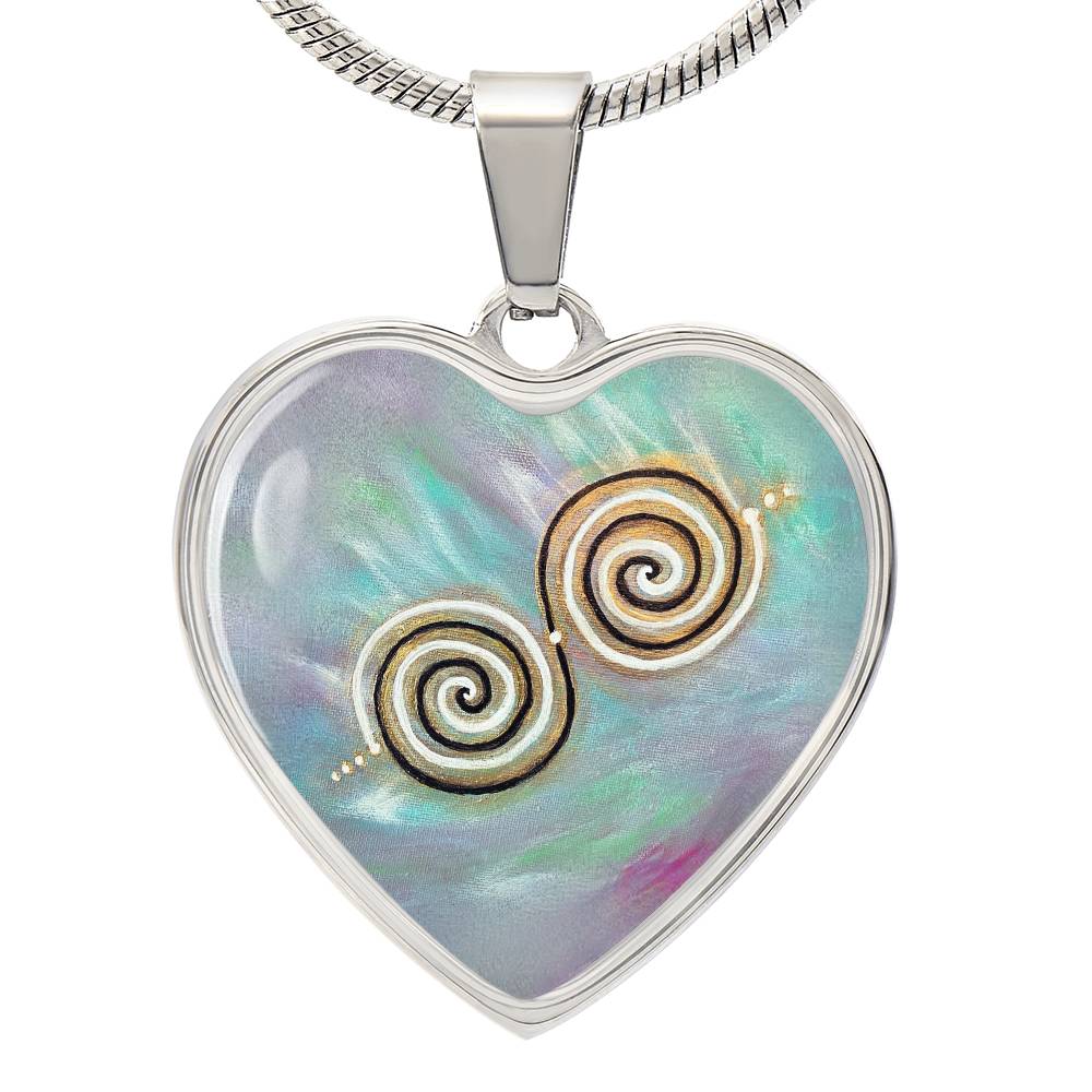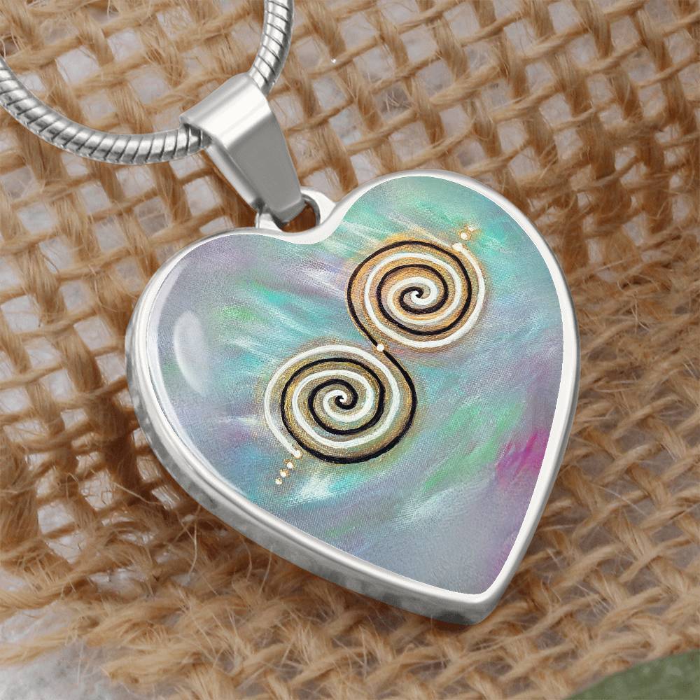 Twinflame Spiral Intention Necklace, light encoded with energies of Twinflame Unity Anchoring, heart shaped, engraving option