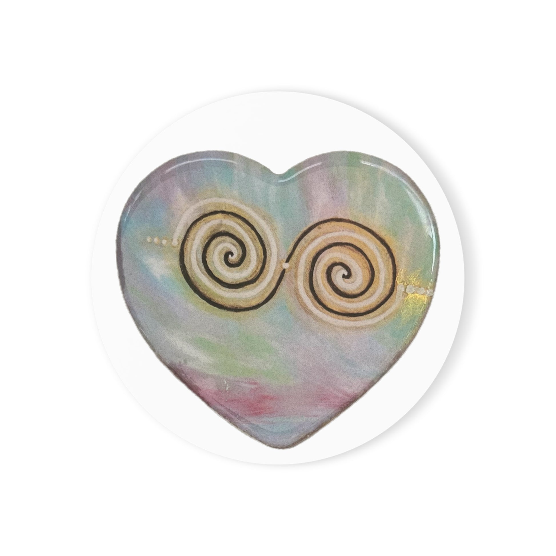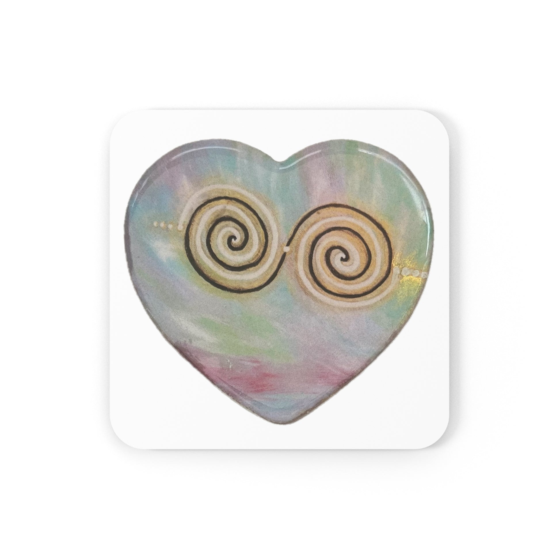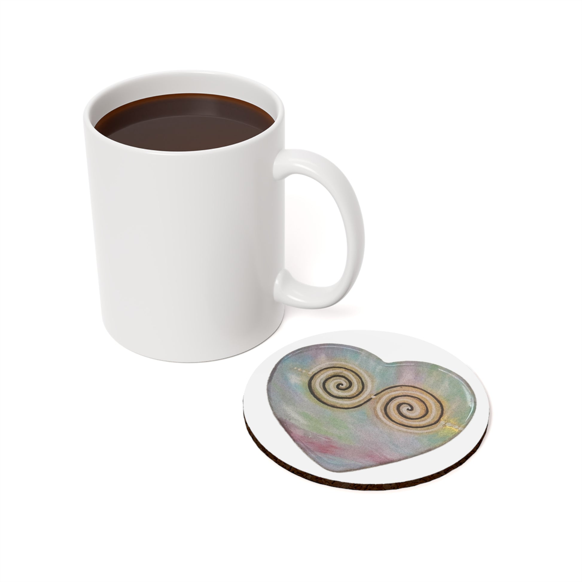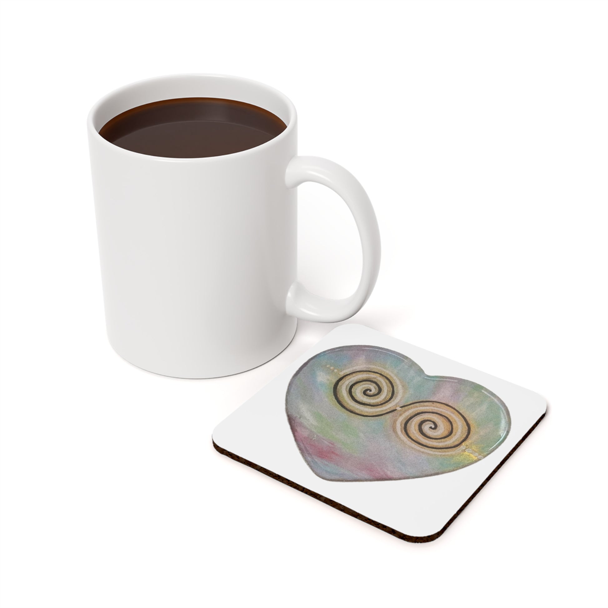 Twinflame Unity, activated alchemical art double spiral geometry corkback coaster, single item, energise your drink/food/jewellery/crystals
